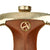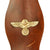 The grip is a fine product having a fine reddish colored mahogany tone in the surfaces and having medium center ridge construction. This grip is in very good condition with great grain, and fits the crossguards well. There is no chipping or cracking, just some scratches and dents from service. The SA symbol button is nicely set having fully intact enameling, and the plating intact with just a bit of verdigris and oxidation as shown. The details are still there to the inlaid nickel plated eagle, including the beak, breast feathering, wing feathering, talons, wreath and mobile swas (hook cross).