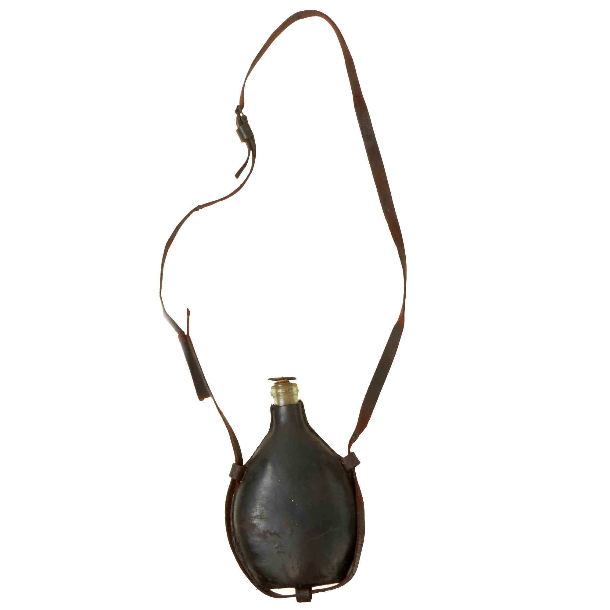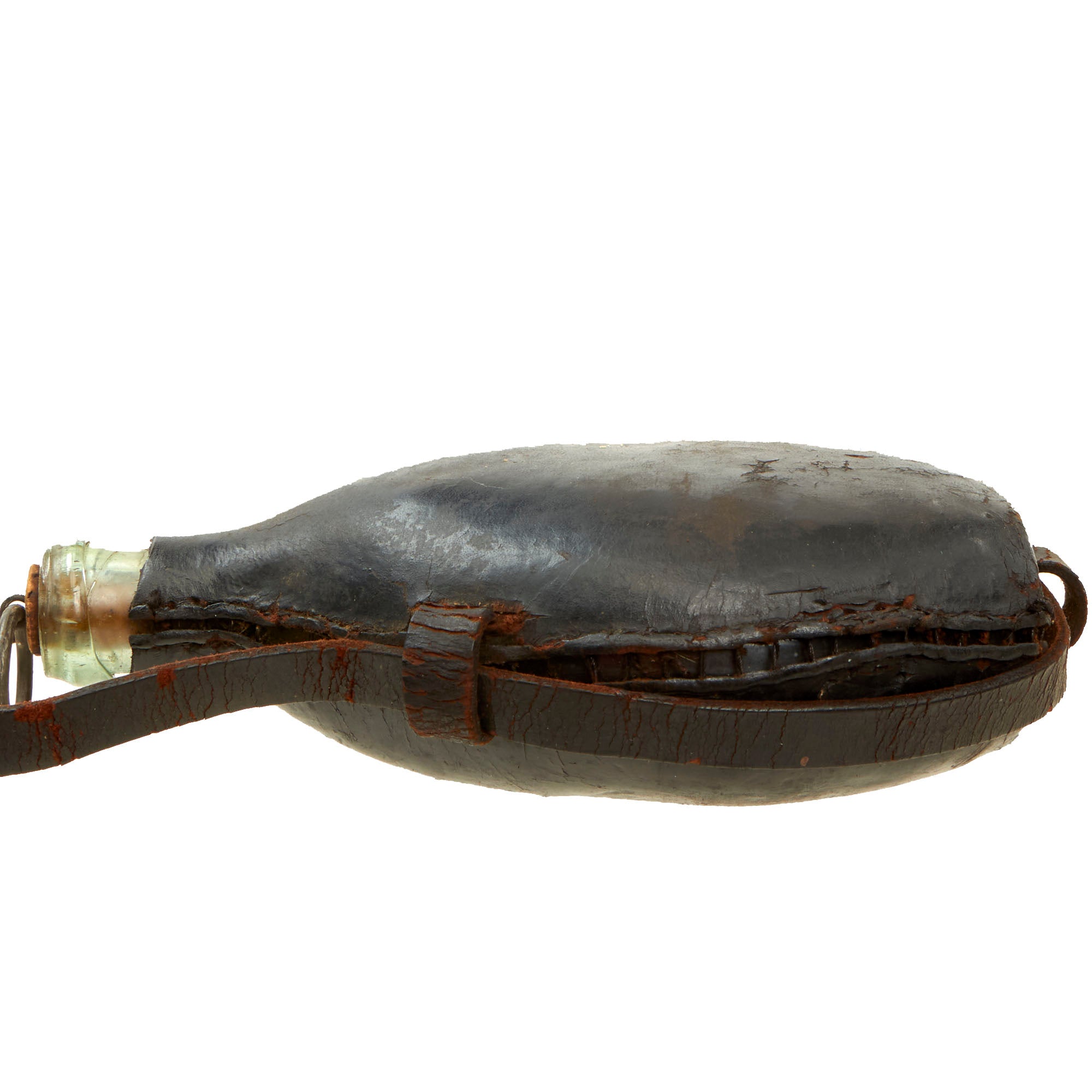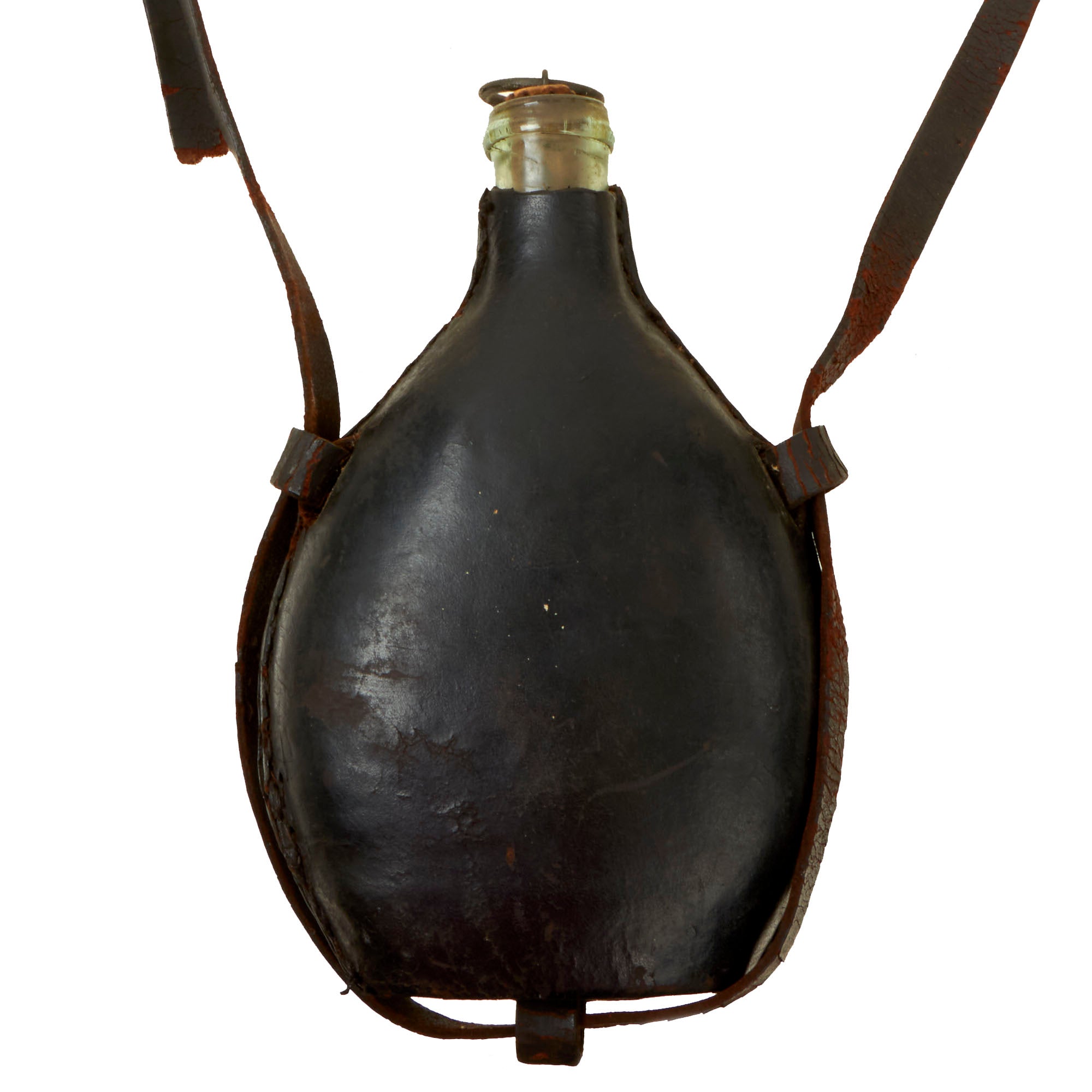 Original Item. Only One Available. This is an extremely scarce example of an M1867 Feldflasche, or Canteen, used extensively during the Franco-Prussian War which resulted in the reunification of Germany in 1871. The canteen is constructed of glass wrapped in leather with a leather carrying strap. The strap is unfortunately broken but is fully retained with the buckle still intact. The stitching of the leather cover is a bit weak but still mostly intact.
