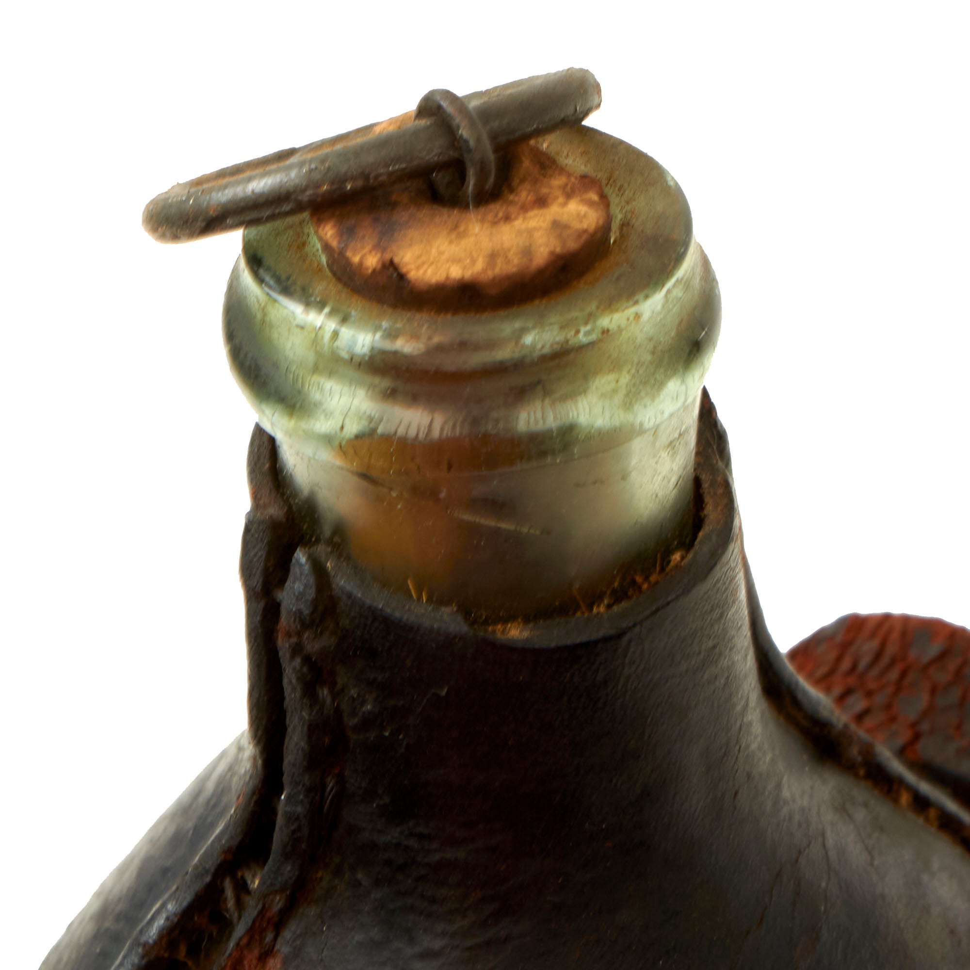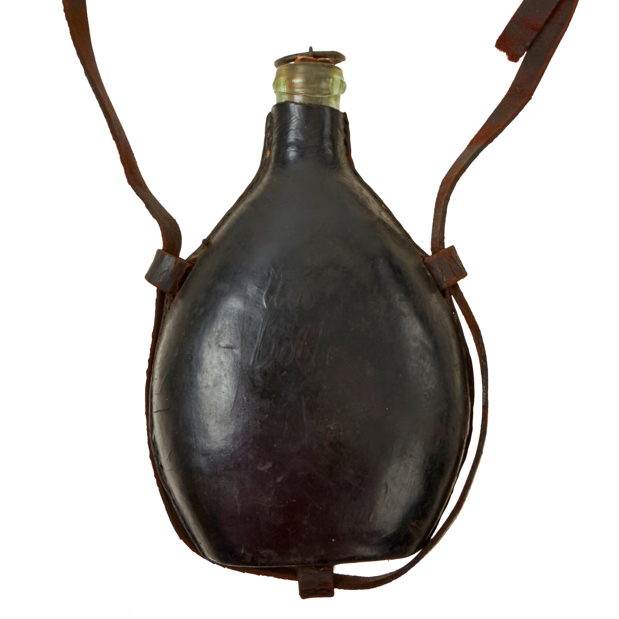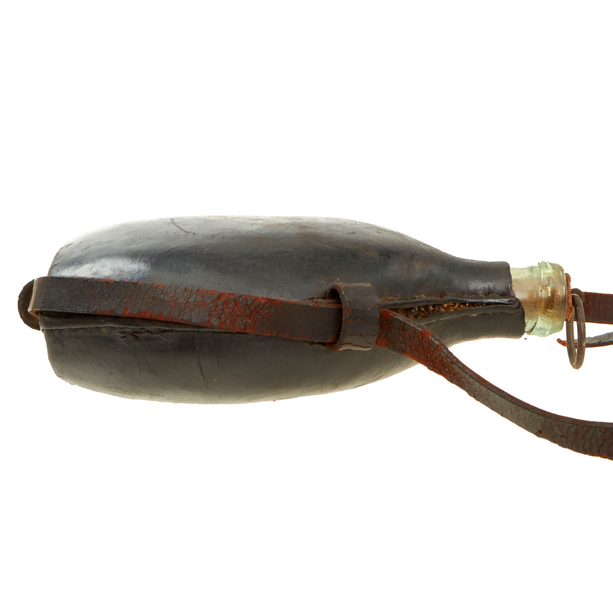 Original Item. Only One Available. This is an extremely scarce example of an M1867 Feldflasche, or Canteen, used extensively during the Franco-Prussian War which resulted in the reunification of Germany in 1871. The canteen is constructed of glass wrapped in leather with a leather carrying strap. The strap is unfortunately broken but is fully retained with the buckle still intact. The stitching of the leather cover is a bit weak but still mostly intact.