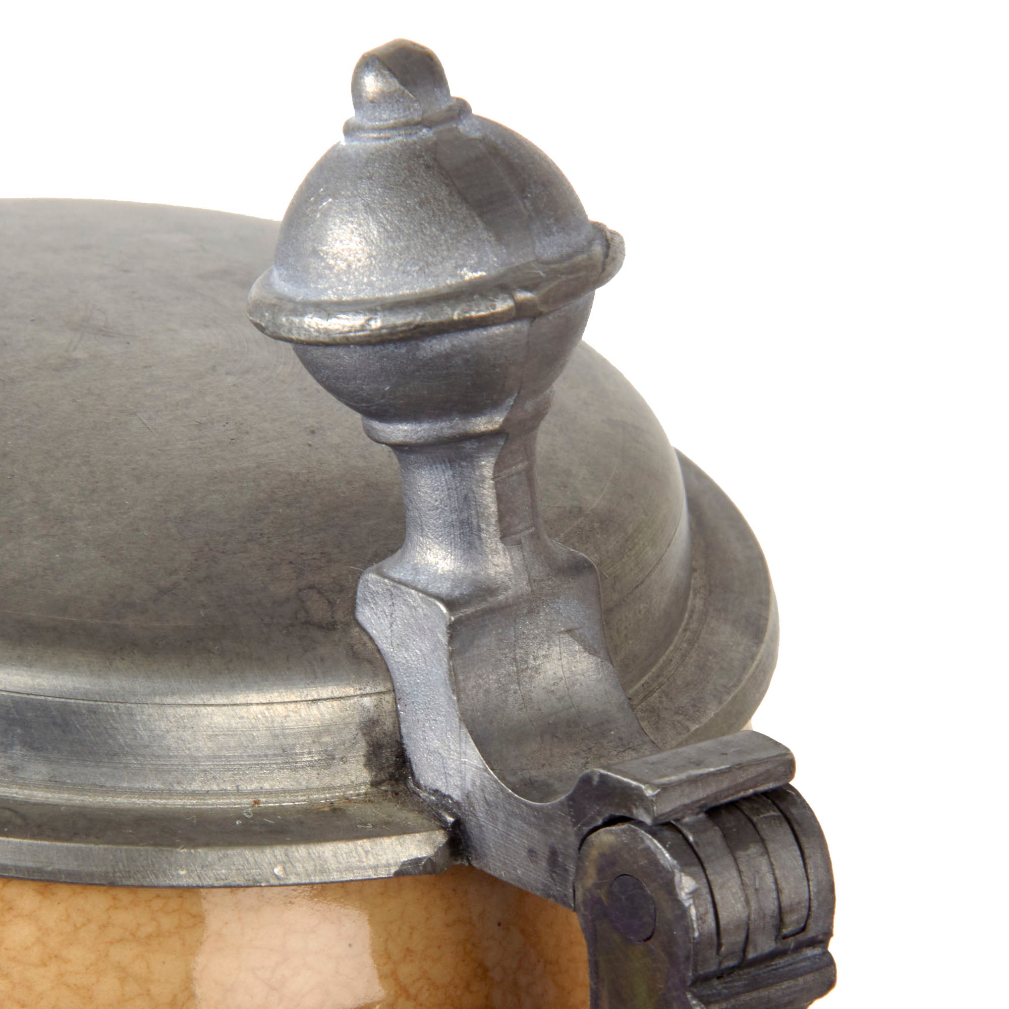 During the build up to WWII, Steins once again gained popularity, though they were generally much more utilitarian than the ornate steins made prior to WWI. They were shorter, with much less ornate glaze, and did not have the level of fit and finish seen earlier. However they were just as cherished by the owners who purchased them to commemorate their service.