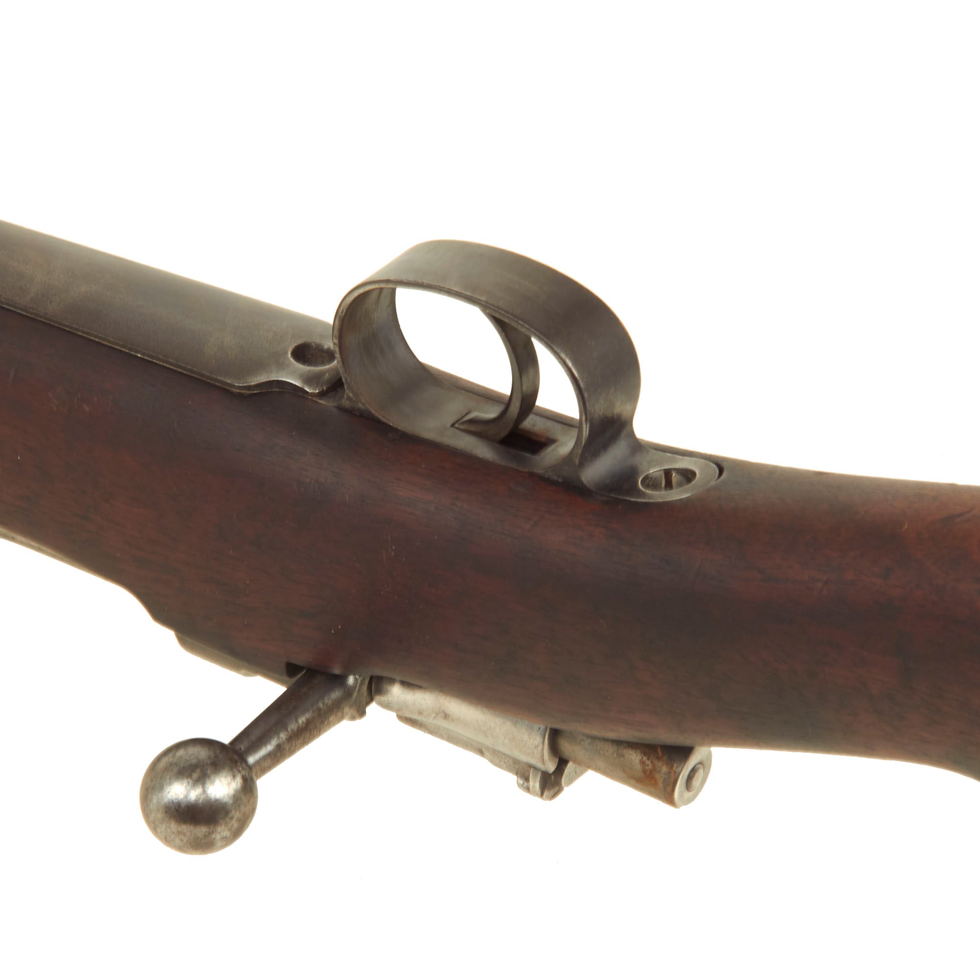 It is however missing the trigger guard, and the rear sight is missing the slider and has a broken spring. This looks to be in typical Spanish-American War lightly "Jungle Used" condition, which were captured by U.S. forces. These were later cleaned up and sold by Bannerman's.