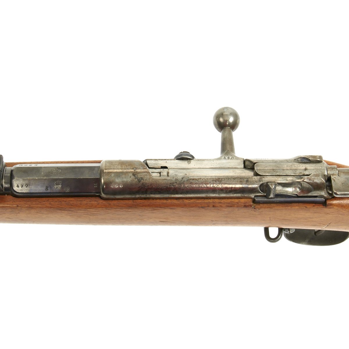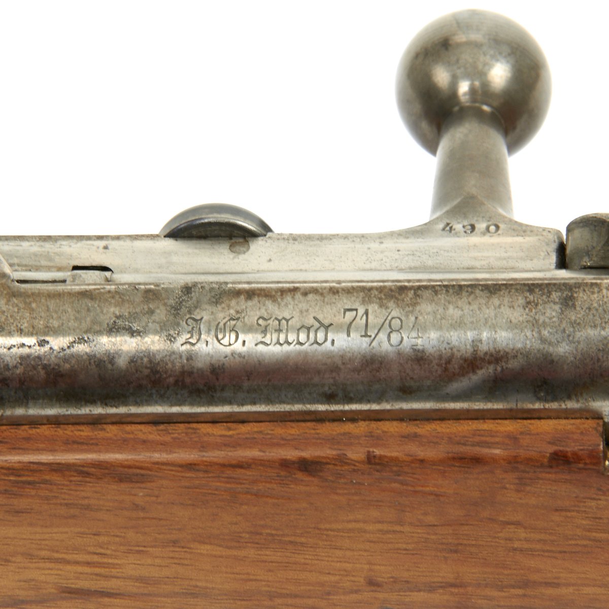 Original Item: Only One Available. This is a wonderful example of the Mauser Model 1871/84 rifle, which does not appear to have seen much service at all. It is covered with Imperial German inspection and acceptance markings on the metal work. The serial number 490 appears on the barrel, bolt, and receiver, while the rest of the components bear the shortened serial 90.