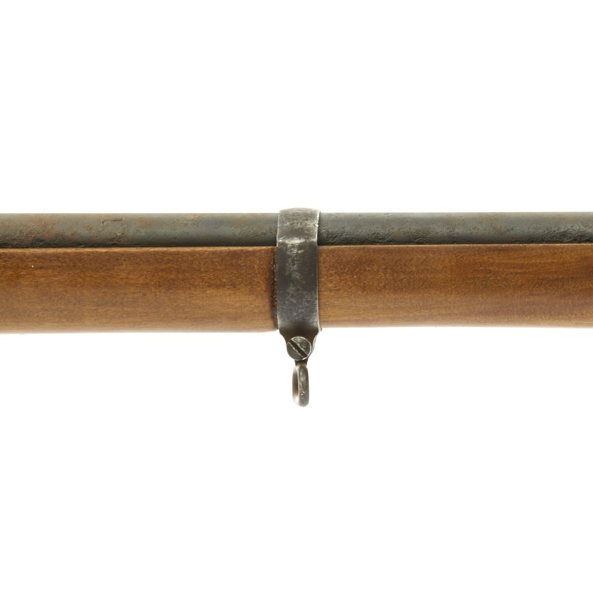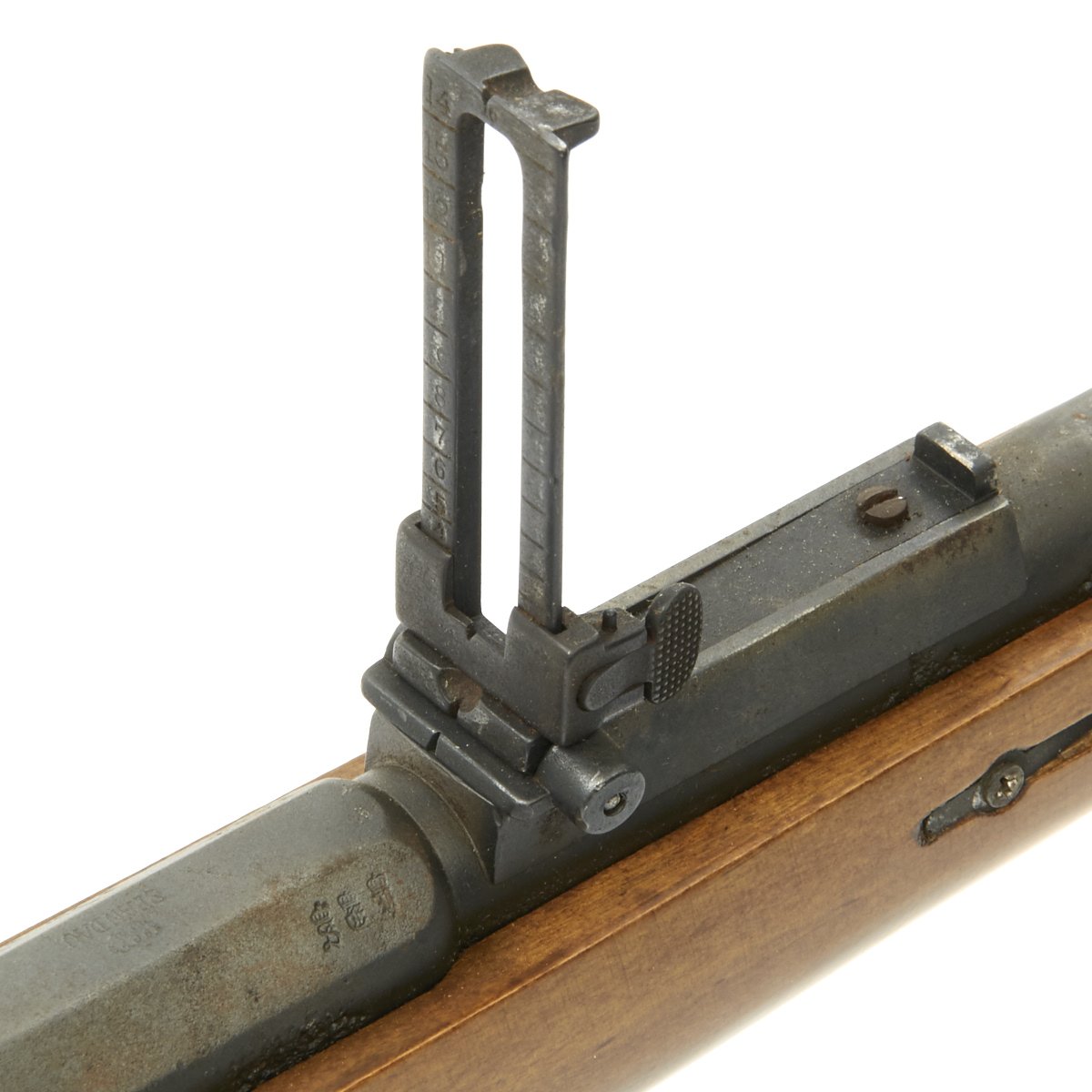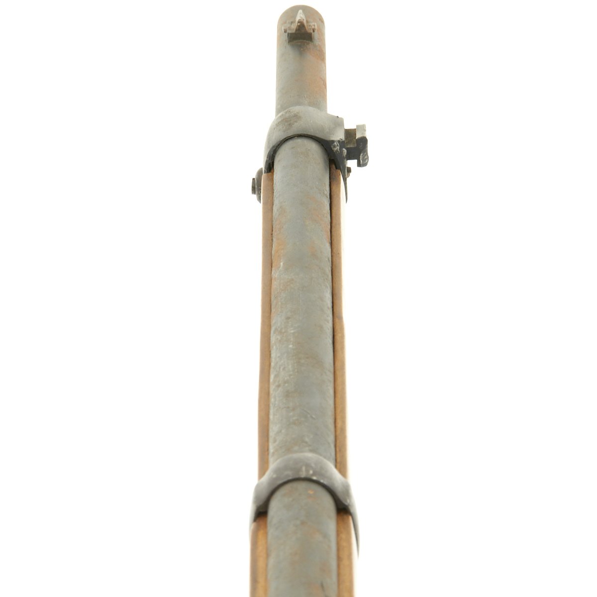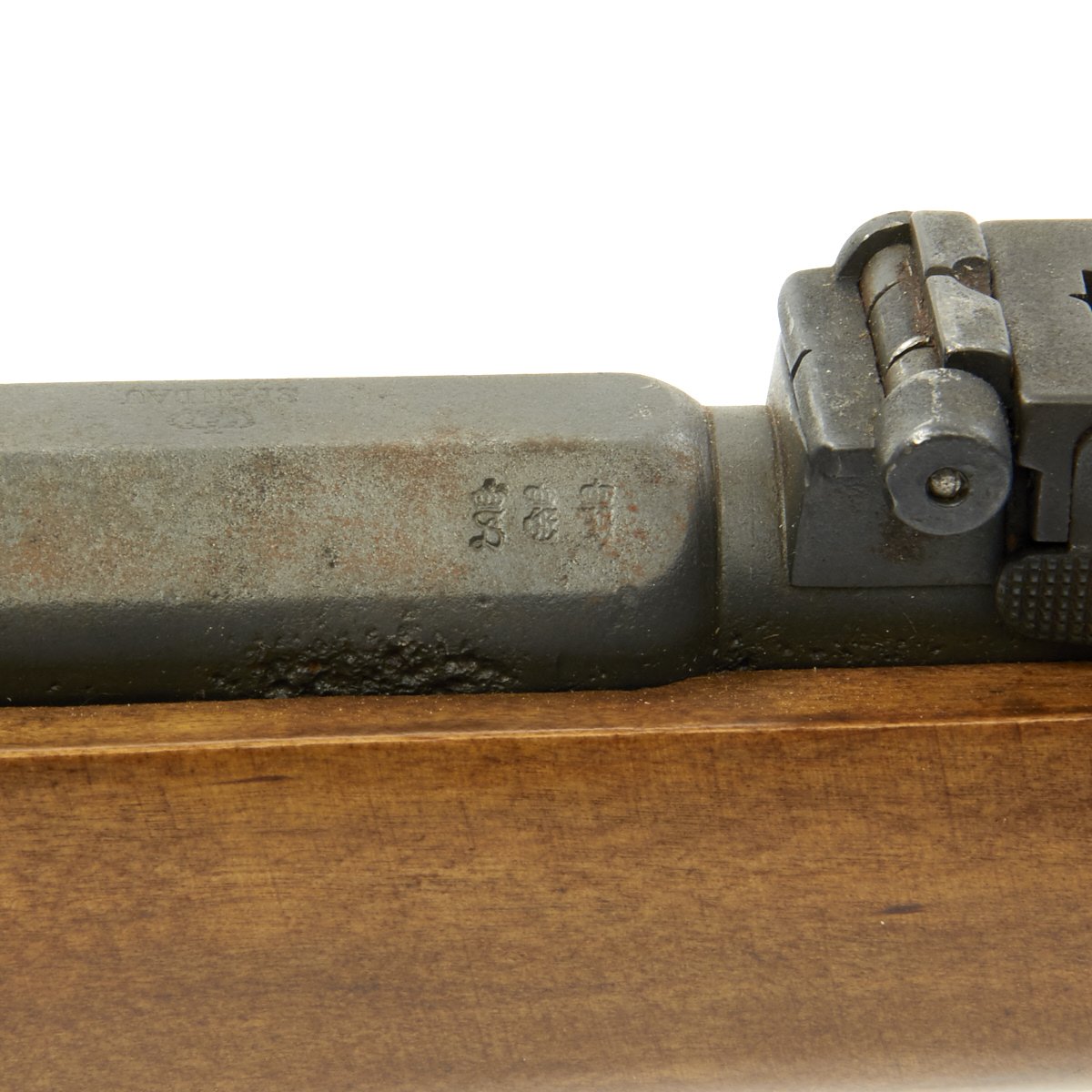 The bore is in good condition, with clear lands and grooves, with a partly bright finish. There are some areas of oxidation in places, probably from lack of cleaning. The top of the chamber is marked Crown over SPANDAU, for the Prussian (and later Imperial) Spandau arsenal in Berlin, a storied production plant that would produce weapons up until 1919, including the famous MG08 Maxim. Below this is the Crown over FW proof for Kaiser Wilhelm I, who used the F.W. monogram. The butt plate is faintly regimentally marked, with 9. R. / 4. 53., probably for the 9th Reserve infantry, 4th battalion, 53rd weapon. Most likely this is not the first regimental mark this rifle has borne.
