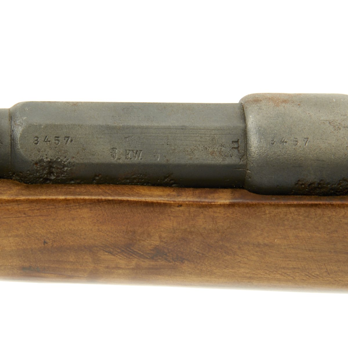 Original Item: Only One Available. This is a nice example of the Mauser Model 1871/84 rifle, which is covered with Imperial German inspection and acceptance markings on the metal work, though they are a bit worn in places. The serial number 8457 appears on the barrel and receiver, while the other components have different numbers. It was common in most countries for obsolete long arms to be refurbished are arsenal for use by reserve and home guards.