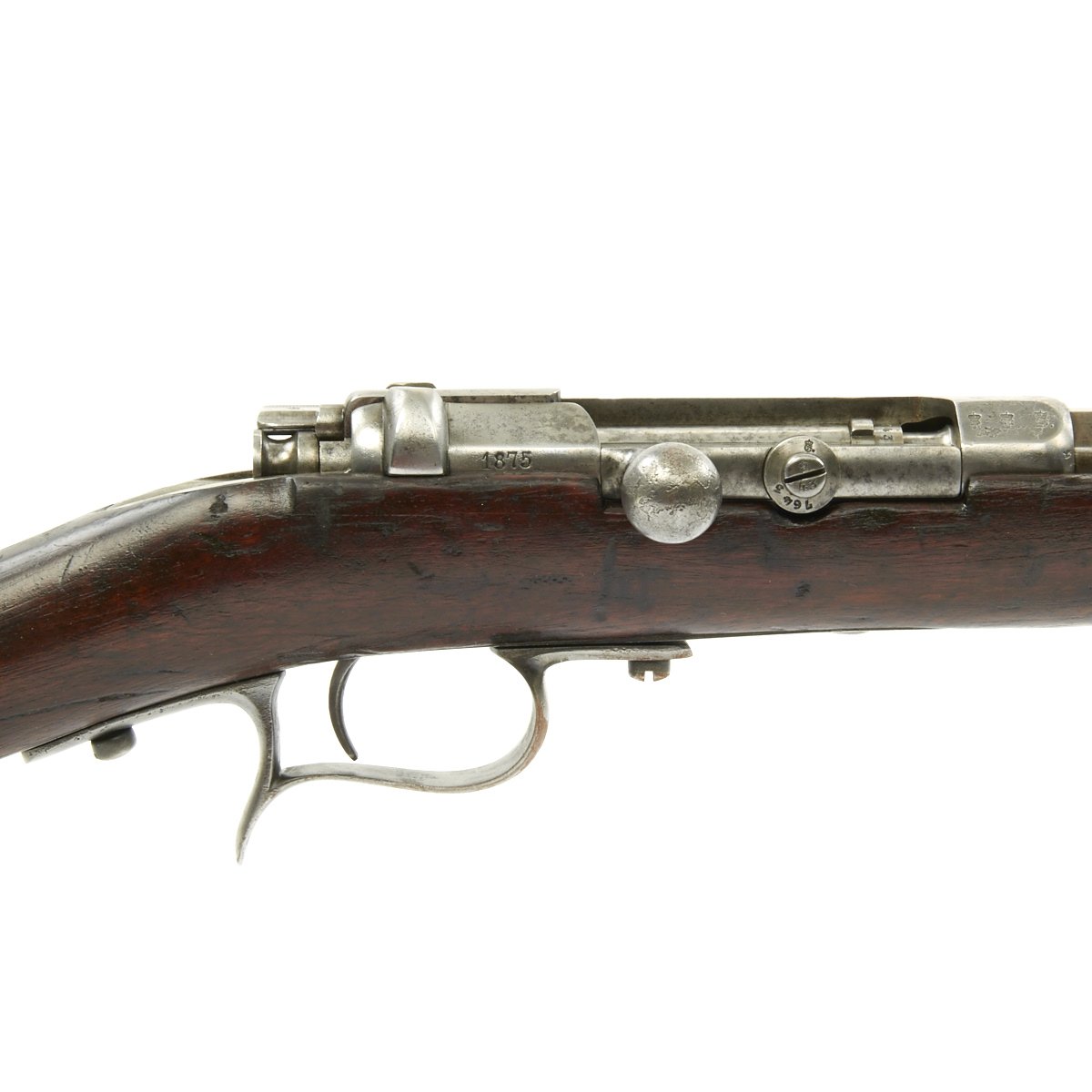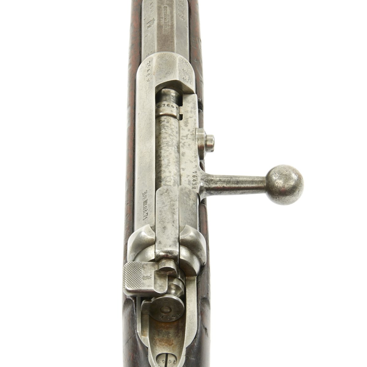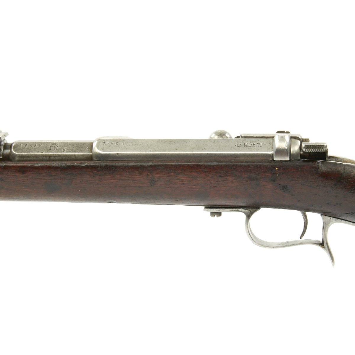 Original Item: Only One Available. This is a wonderful example of the Mauser Model 1871 Jäger Rifle, manufactured by ŒWG Steyr in Austria. It is covered with Imperial German inspection and acceptance markings, even on the wood stock. The serial number 7643H appears on all parts of the gun, even the barrel bands, nose cap, and many of the screws, making this an "ALL MATCHING" example, and it really is great. It even won 2nd prize in the "Overseas War Souvenirs" category at the 1984 Inter-State fair in York, PA.