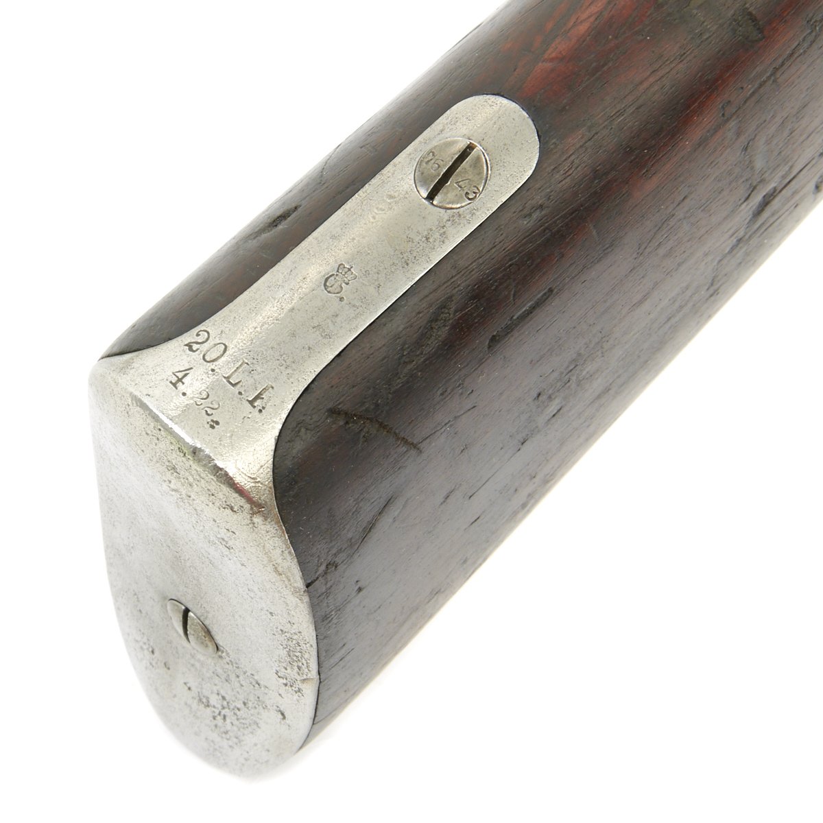 The Rifle also bears its original REGIMENTAL MARKINGS on the butt plate tang: 20. L.I. / 4. 22., for 20th Landwehr Infantry, 2nd Battalion, Company 4, Weapon 22.