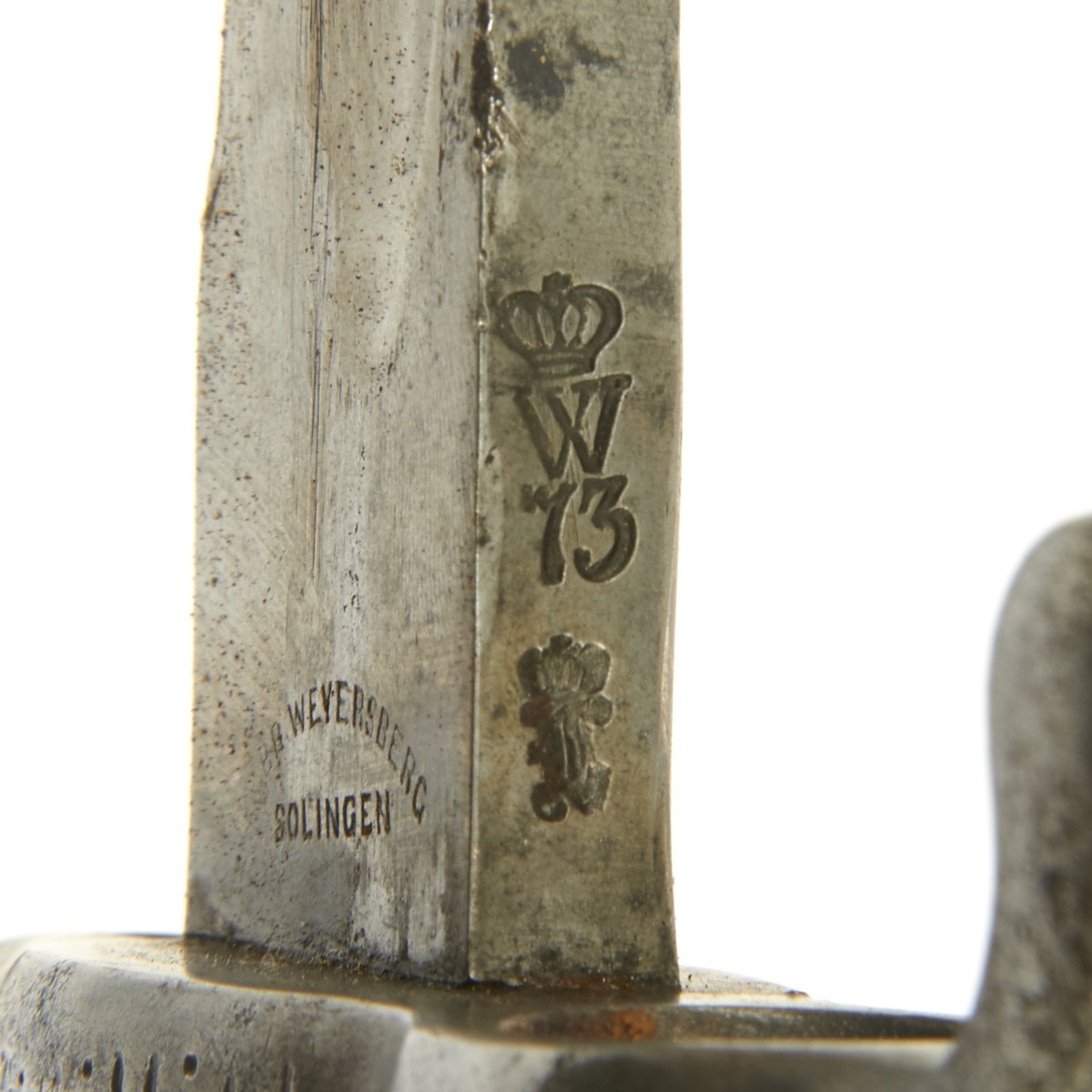 The steel blade is 18" long and bears the maker marking: Gebr. Weyersberg, Solingen.