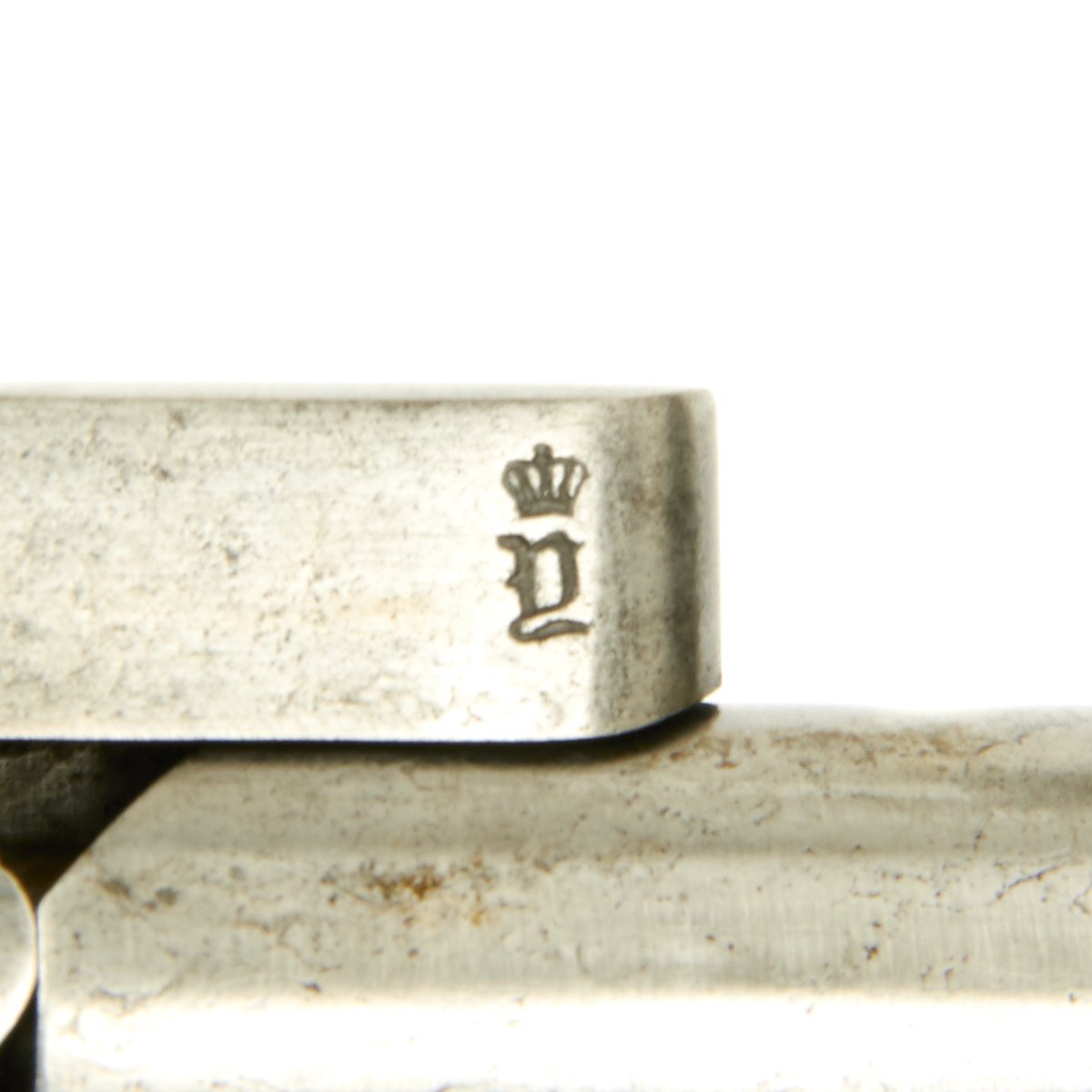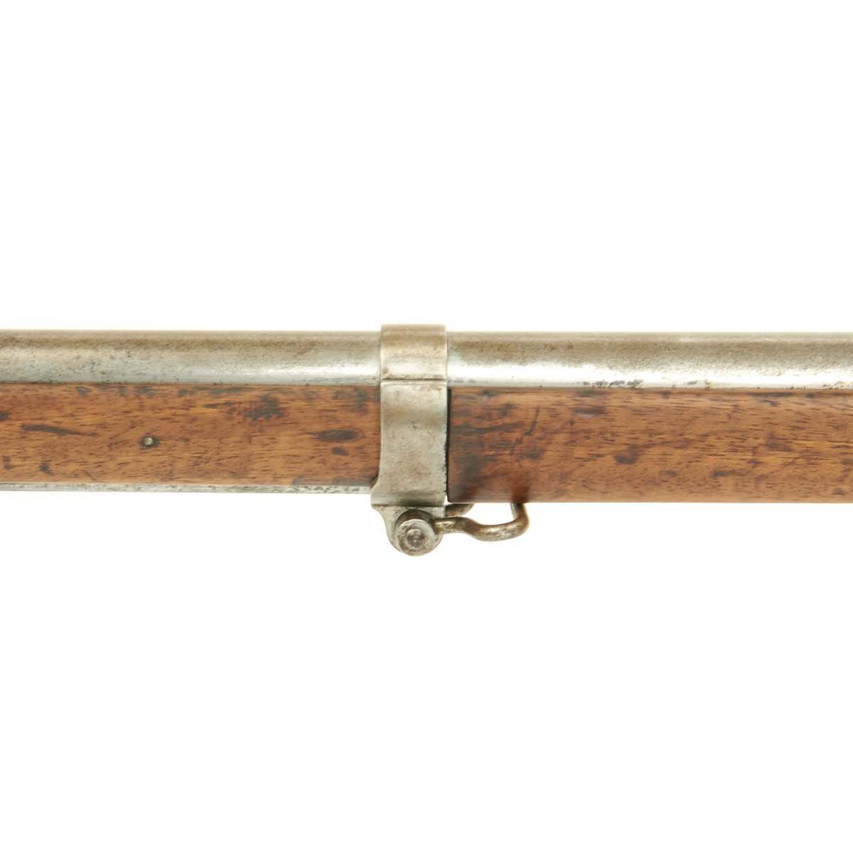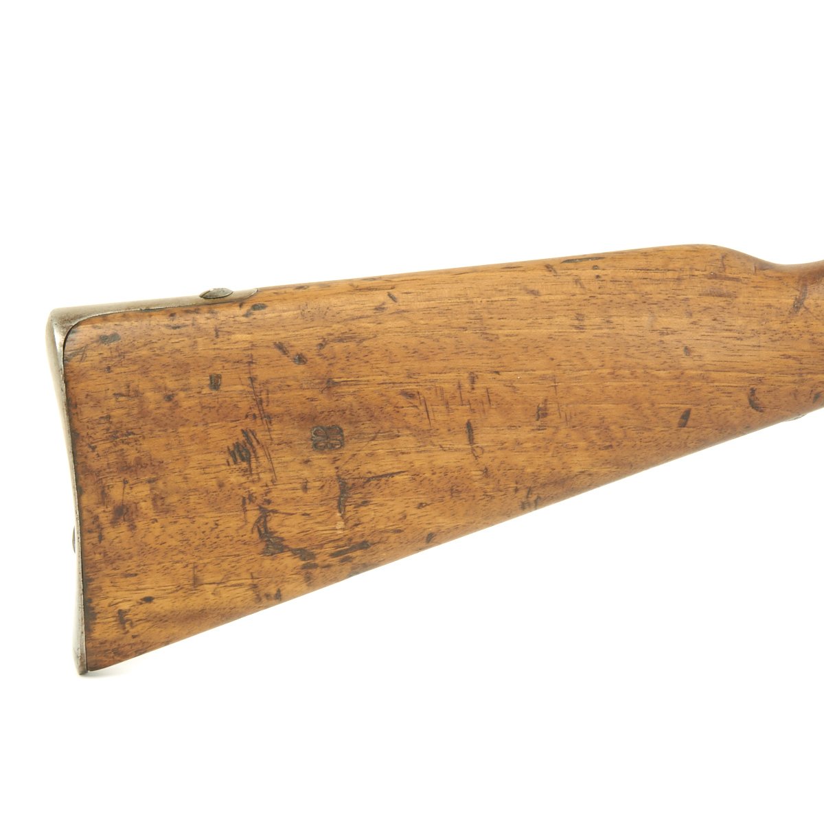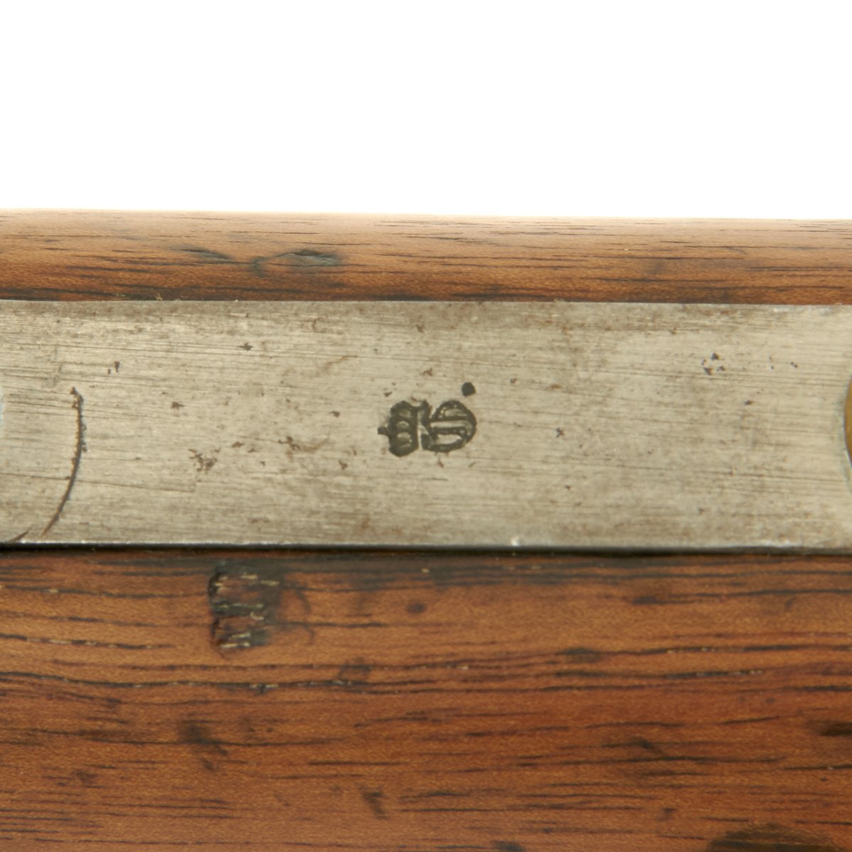 This rifle is dated 1874 on the receiver, and bears serial number 175P on the receiver and barrel breech. All the components of the bolt, barrel bands, nose cap, receiver tang screw, and other screws are marked with serial number 6431. The Barrel knoxform is marked ŒSTERR. WAFFFB. GES., an abbreviation of "Österreichische Waffenfabriksgesellschaft", or the Austrian Arms-Manufacturing Company. It is possible that the barrel and receiver were made under contract, and then sent to Mauser or Spandau for completion, which explains the two different serial numbers. Part of ŒWG was Steyr-Mannlicher, who still make firearms today.