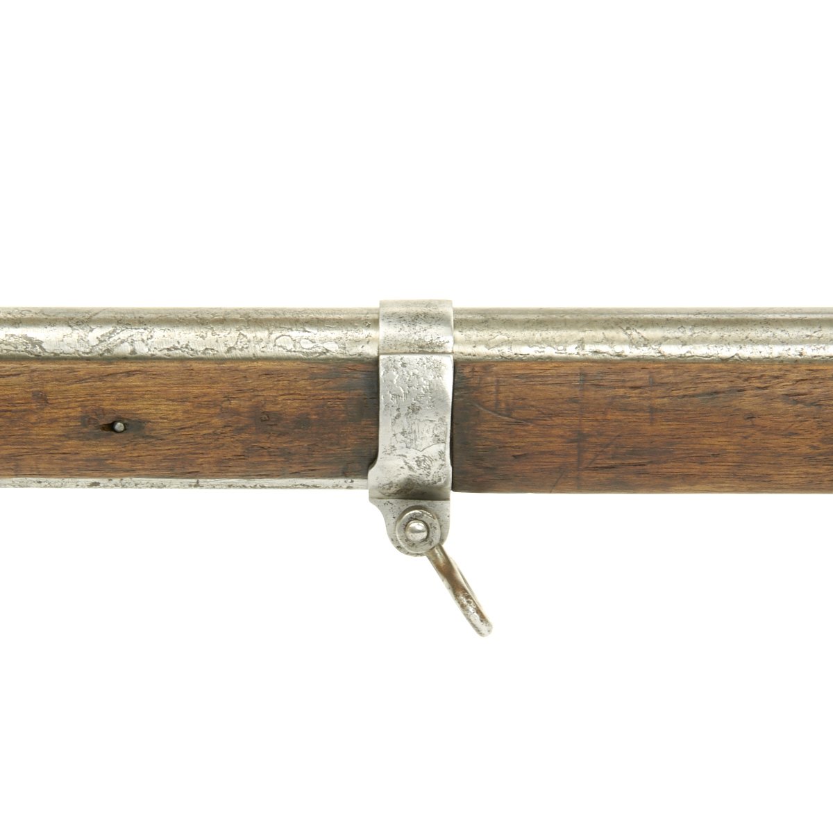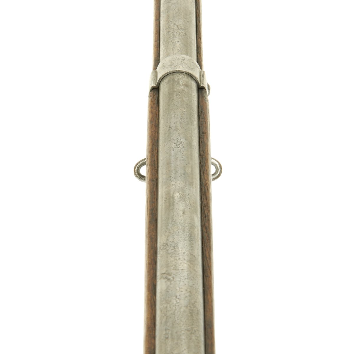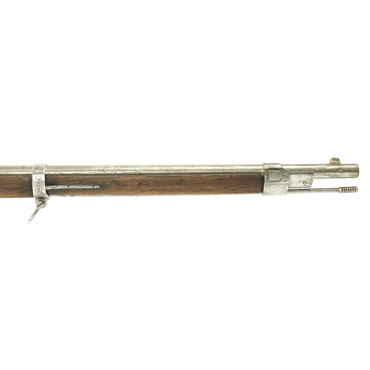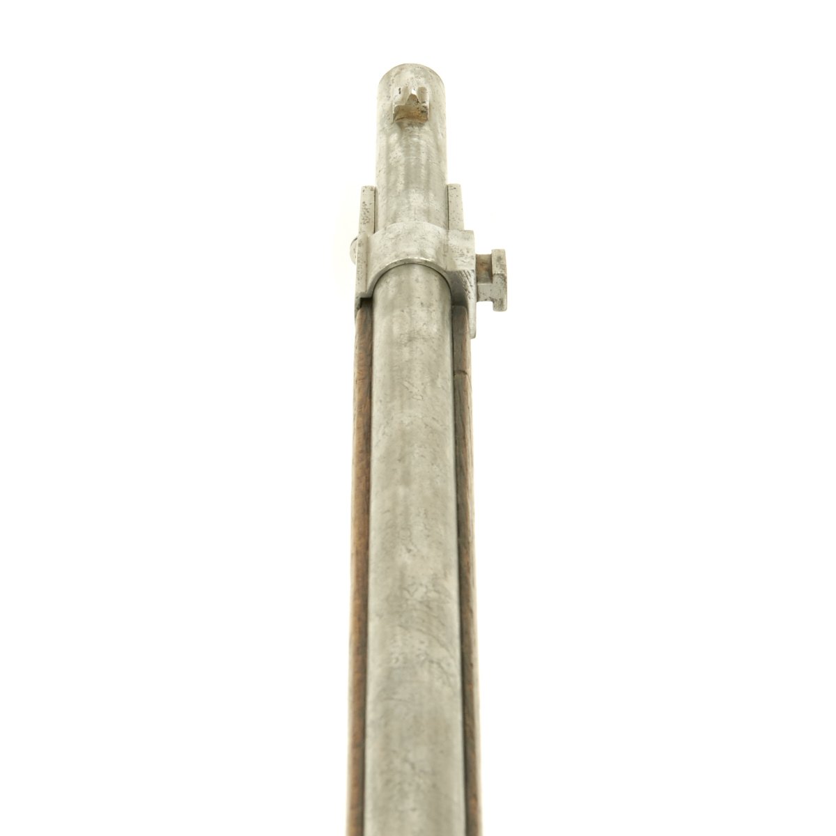 Complete with cleaning rod the rifle is in good condition overall. The exterior metal finish does show evidence of past pitting, and wood stock does have noticeable wear on it. The bore however is in excellent condition, bright with clear land and grooves. No corrosion is evident in the bore. The Rifle bears its original REGIMENTAL MARKINGS on the butt plate tang:- " B.17.R.E3.192 "