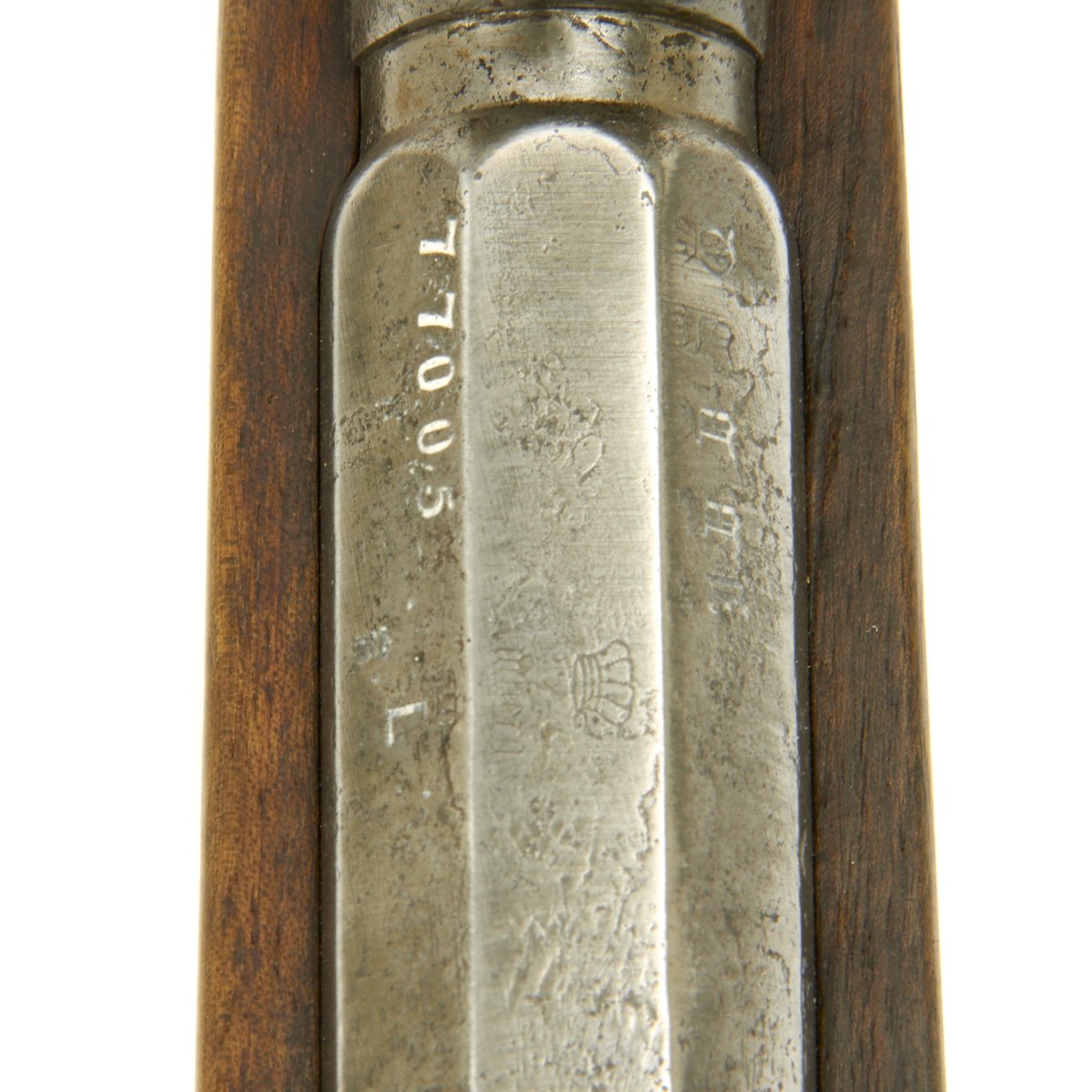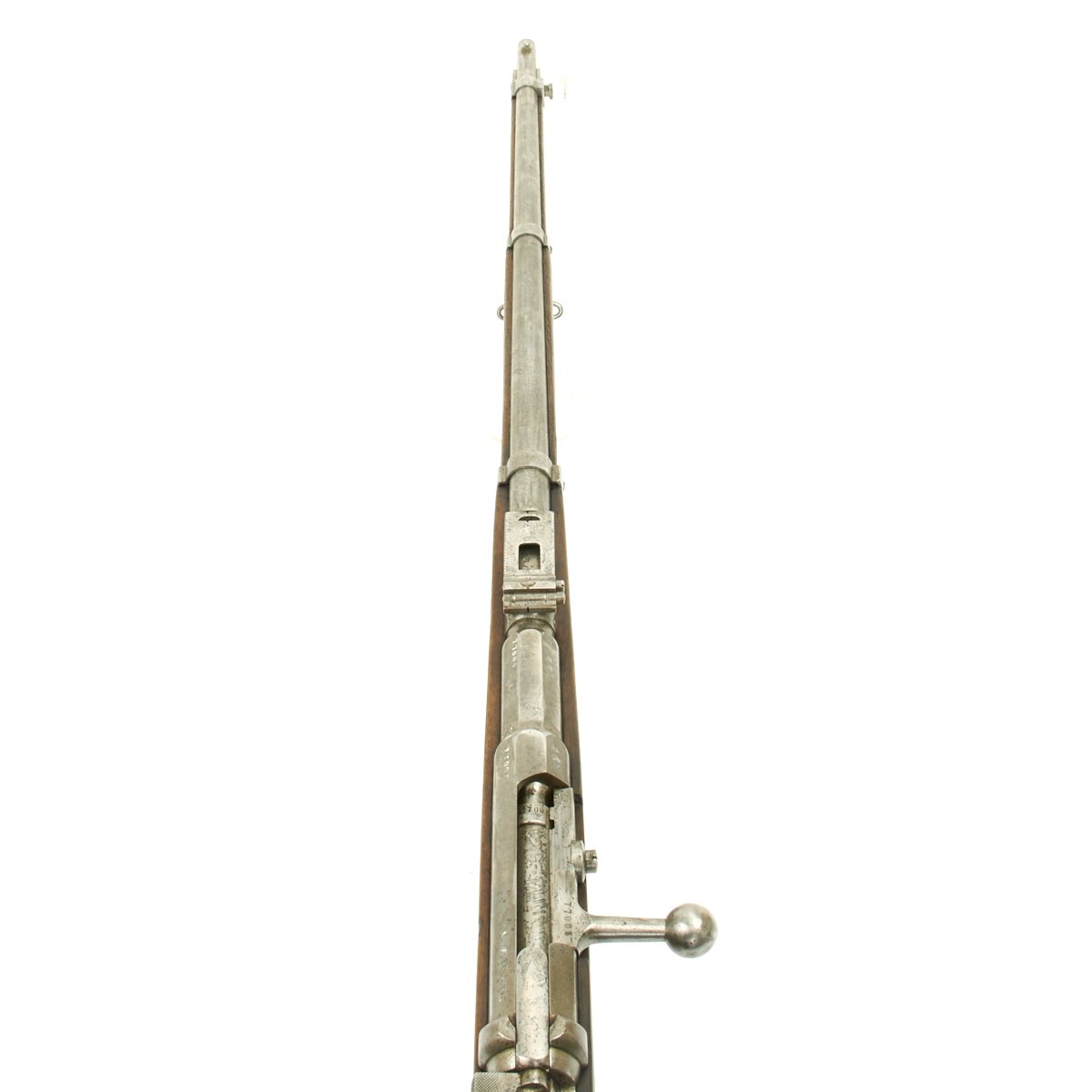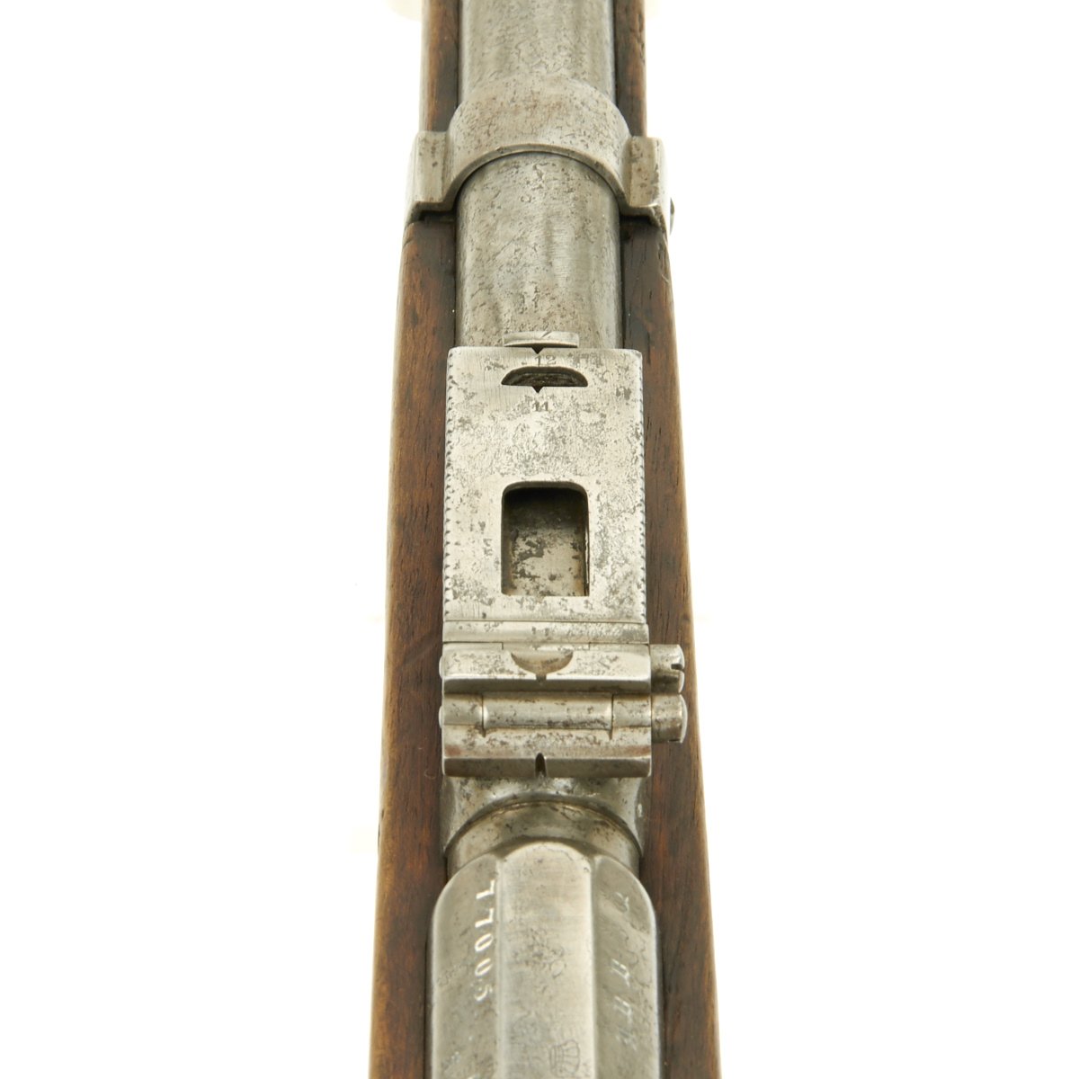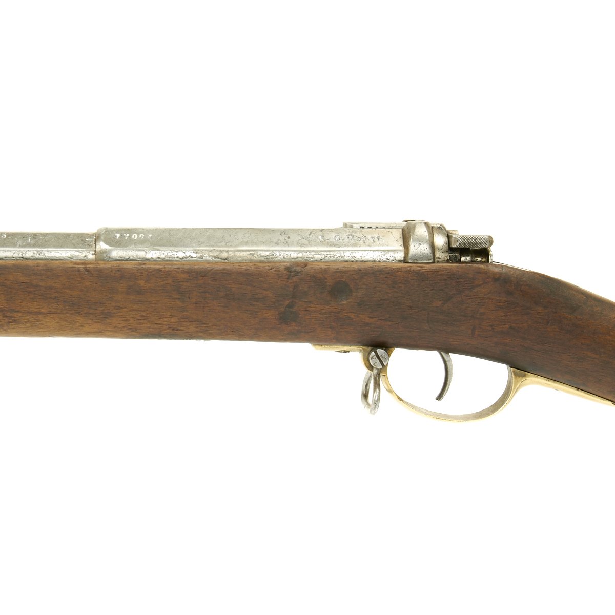 Original Item: Only One Available. This is a wonderful all matching serial number example of the Mauser Model 1871 rifle. It is covered with Imperial German inspection and acceptance markings, even on the wood stock. The serial number 77005 appears on almost all parts of the gun, even the barrel bands, nose cap, and many of the screws. The receiver is dated 1879 and marked I. G. Mod. 71 on the opposite side