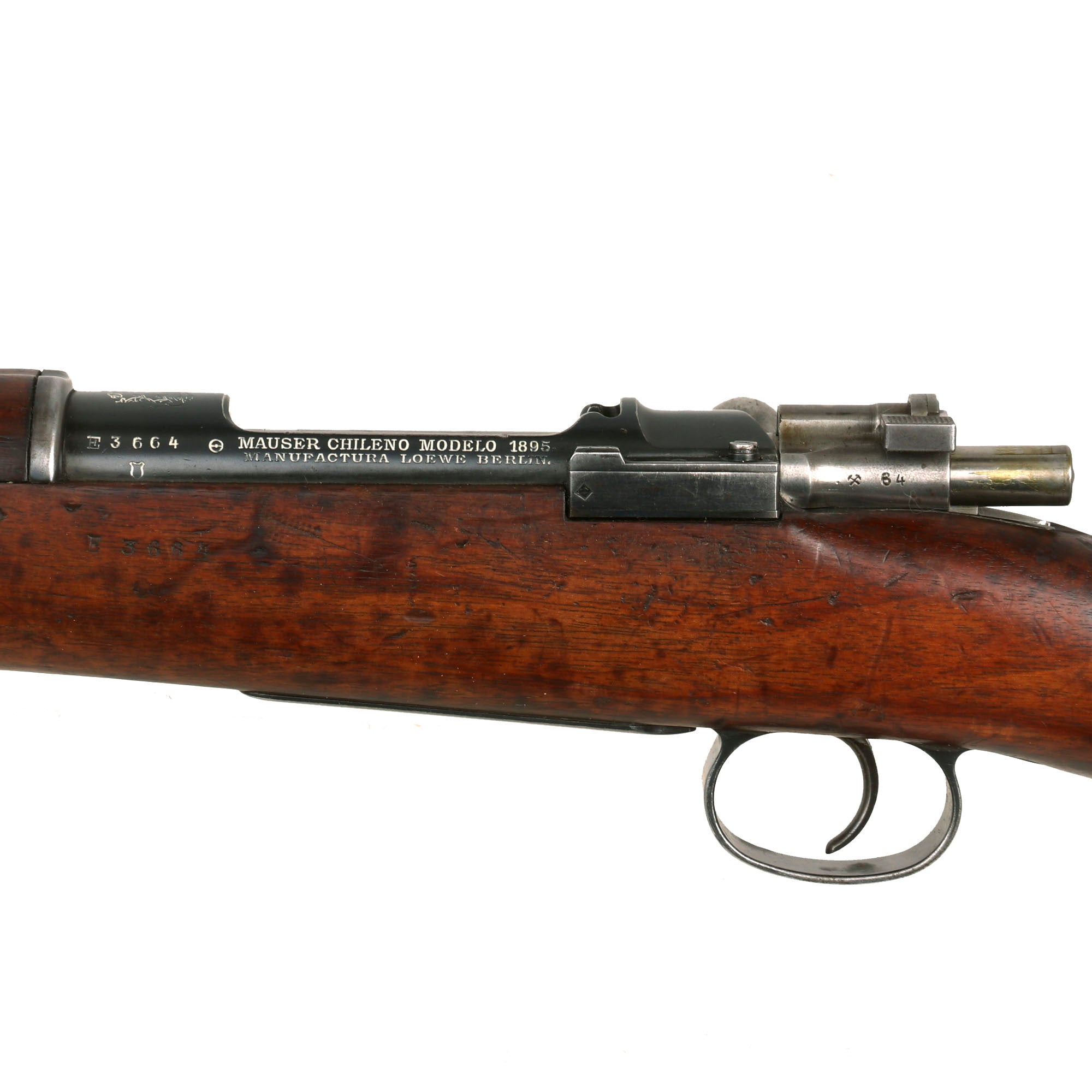 Original Item: Only One Available. This is an excellent condition example of the Model 1895 Chilean Mauser Rifle, made by the renowned LUDWIG LOEWE ARMS COMPANY of BERLIN. It shows signs of light service, but still retains much of the original finish, and was definitely well cared for during its service life. The bolt only has a bit of of a primer burn ring, indicating it was not actually used very much. It has a great lightly worn look and a great color!