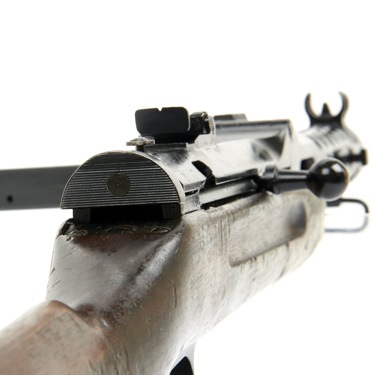 Wonderfully constructed with prewar quality at Steyr in Austria, ventilated barrel jacket with built in magazine loader in the magazine housing complete with wood butt stock assembly.