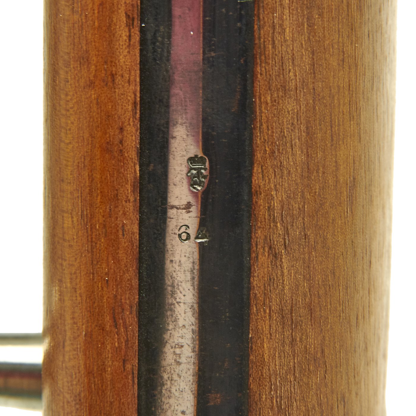 The rifle shows only light wear, though there is some light pitting on the top of the barrel in one spot bout 3 inches above the middle barrel band. We suspect it was leaning on something for a long time, which caused this. We do not expect that this weapon was ever out in the field for more than a few days, if that. The serial number 664 or shortened number 64 appears on every component of the rifle. This is a completely matched, totally unmessed with rifle.