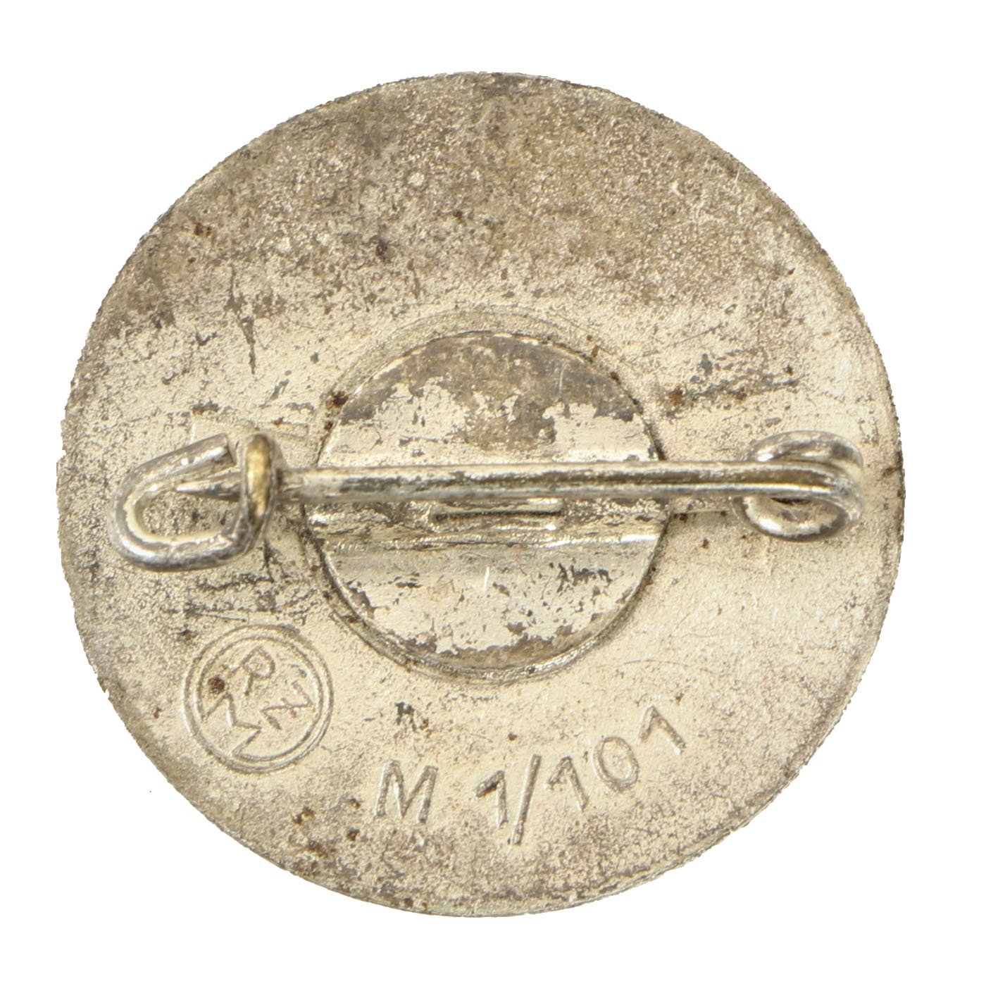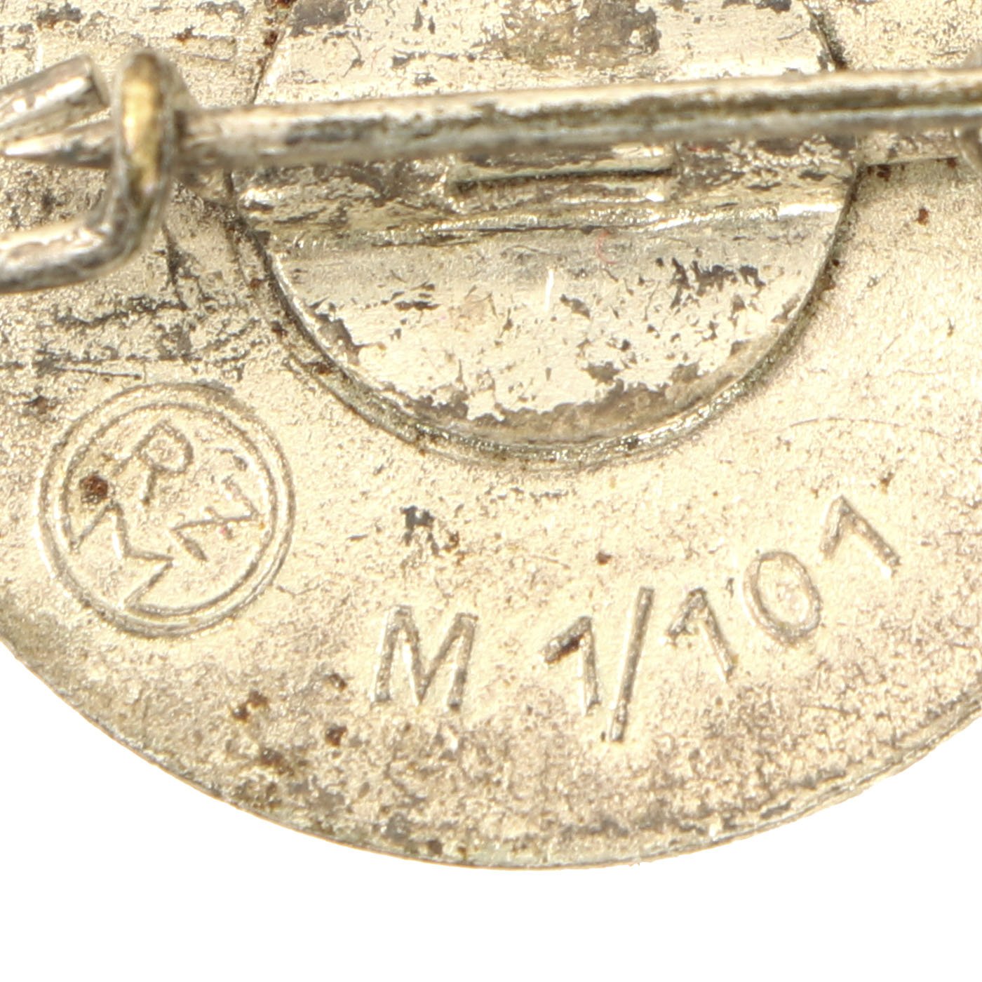 Of Note: In late 1934 items manufactured for the NSDAP and other organizaions, including membership pins, came under the quality control of the RZM, Reichzeugmeisterei, (National Equipment Quartermaster) and as a result were marked with the RZM logo when appropriate. The registry was was based at the Brown house in Munich and NSDAP party headquarters in Berlin. The RZM ensured that the manufacturers of military items were consistent in design, quality of materials and other characteristics of the items. It also defined standards of design, manufacturing and quality and published an authoritative color chart for textiles. The M1 in the code stands for Metal Badges, with Gustav Brehmer, Markneukirchen, being contractor number 101.
