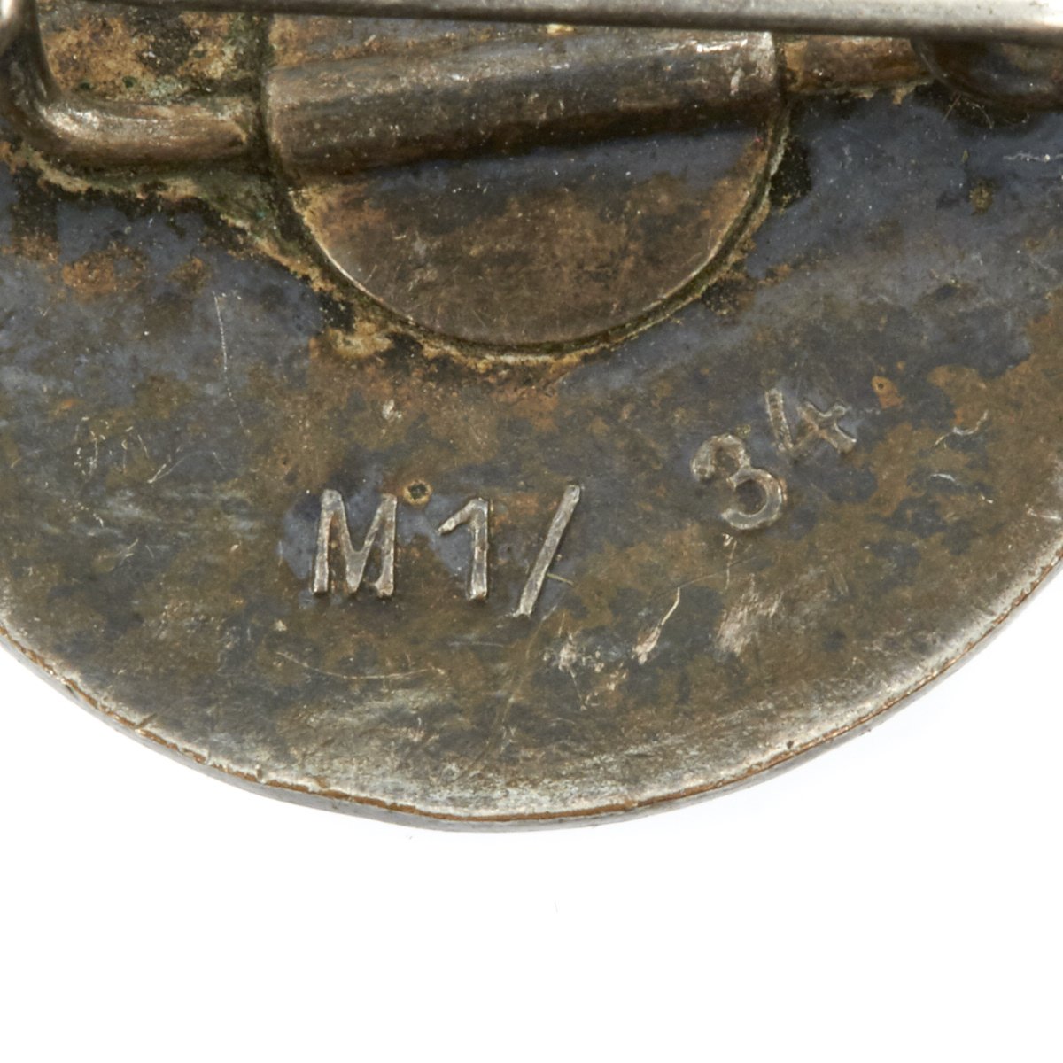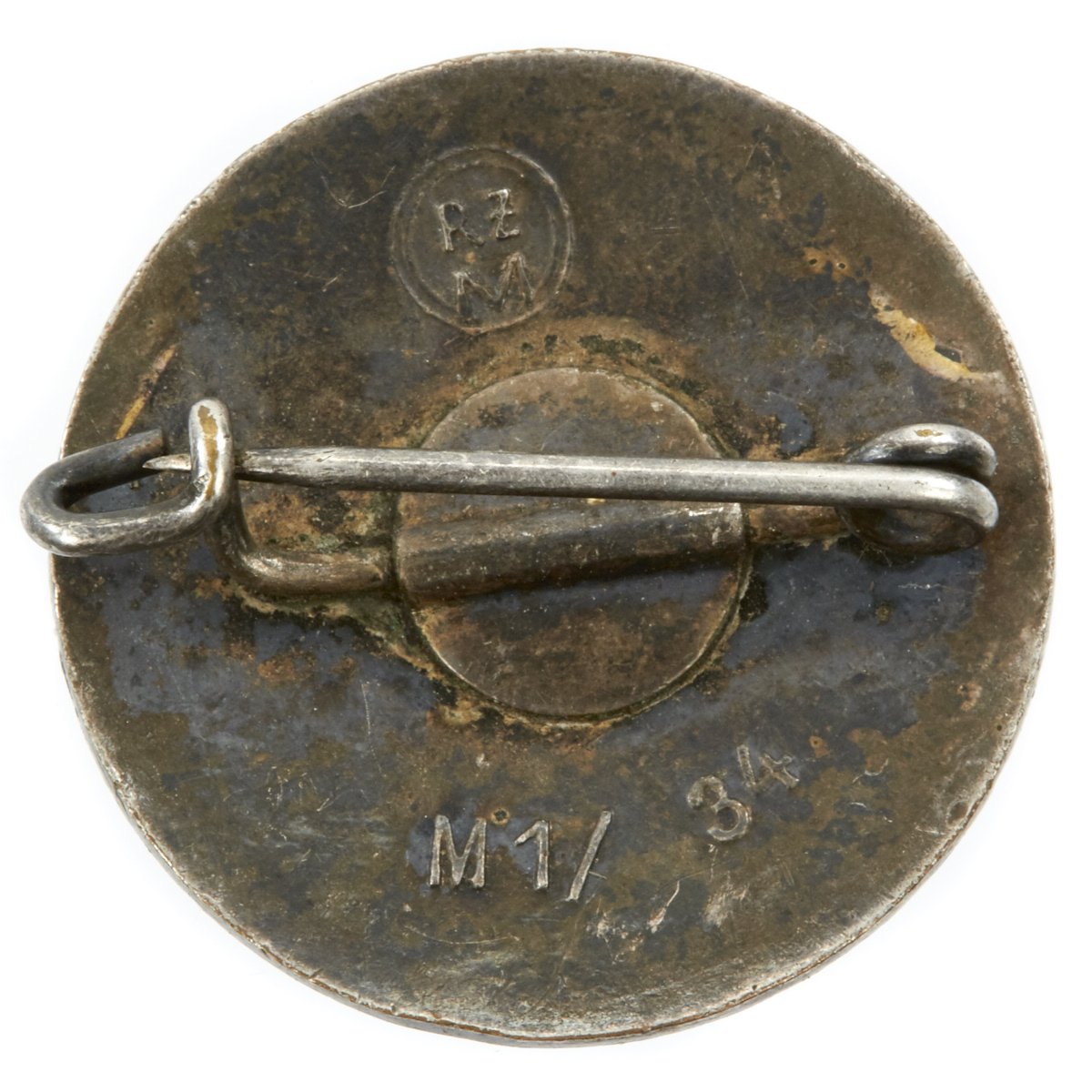 Of Note: In late 1934 items manufactured for the NSDAP and other organizaions, including membership pins, came under the quality control of the RZM, Reichzeugmeisterei, (National Equipment Quartermaster) and as a result were marked with the RZM logo when appropriate. The registry was was based at the Brown house in Munich and NSDAP party headquarters in Berlin. The RZM ensured that the manufacturers of military items were consistent in design, quality of materials and other characteristics of the items. It also defined standards of design, manufacturing and quality and published an authoritative color chart for textiles. The M1 in the code stands for Metal Badges, with Karl Wurster of Markneukirchen being contractor number 34.