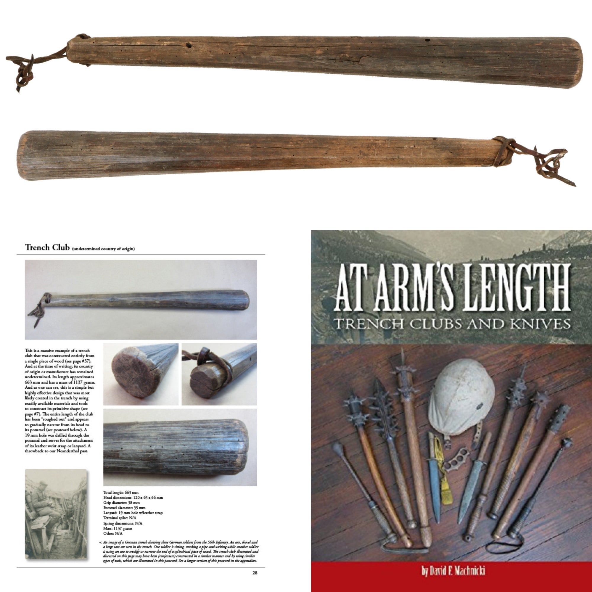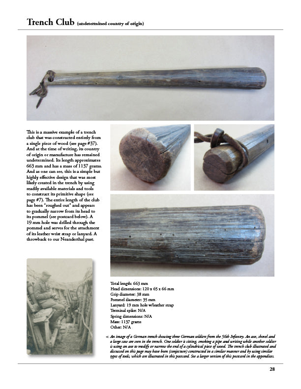Original Item. One-of-a-Kind. Purchased directly from David F. Machnicki, the author of At Arm's Length Trench Clubs and Knives (Vol. 1), where this very club is featured on page 28. Please note that the attached page image from the book is copyrighted material and the use of the page is done by permission of the author. A printed copy of the page will accompany the purchase of this club.