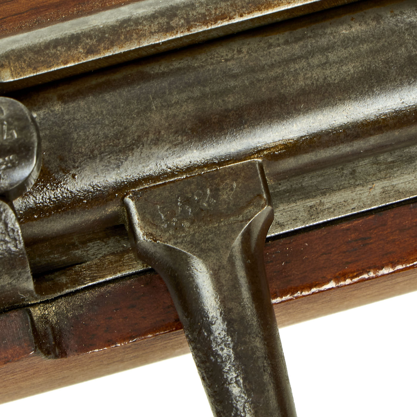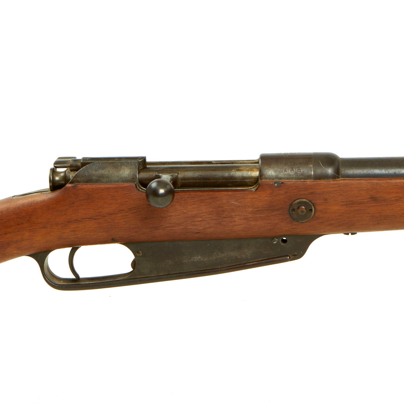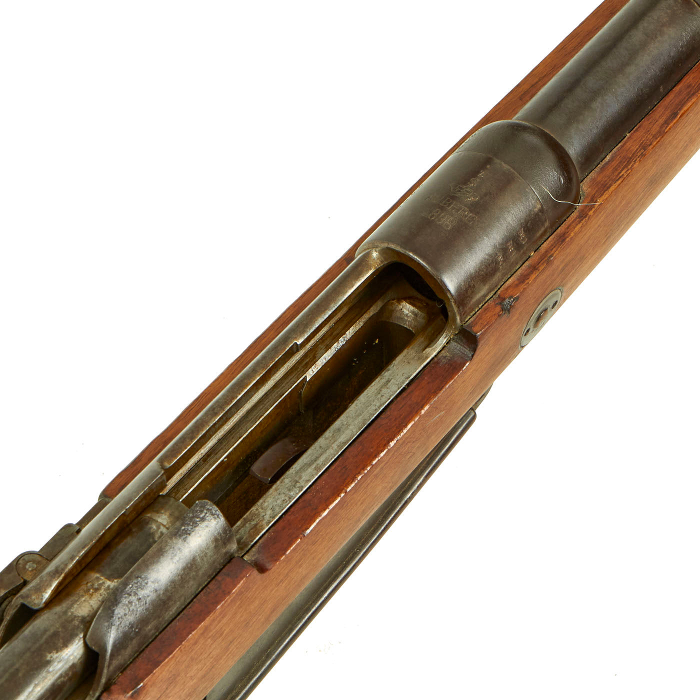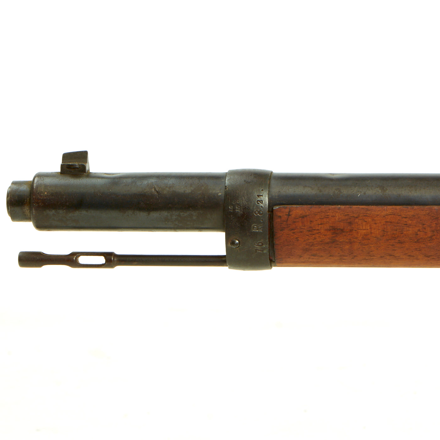 Original Item: Only one Available. This is a very nice example of the iconic German Gewehr 1888 "Commission Rifle", also known as the Gewehr 88, or GEW 88. It was manufactured at the Amberg Imperial Arsenal, located in Amberg, Bavaria, and then and then saw long service, as indicated by the large number of different markings on the gun. It definitely looks to have been reconditioned at arsenal, where parts were often replaced with those from other rifles. It also does not have any export markings from Turkey or other countries, so this was never shipped off as WWI aid. We very rarely see these rifles in this configuration!