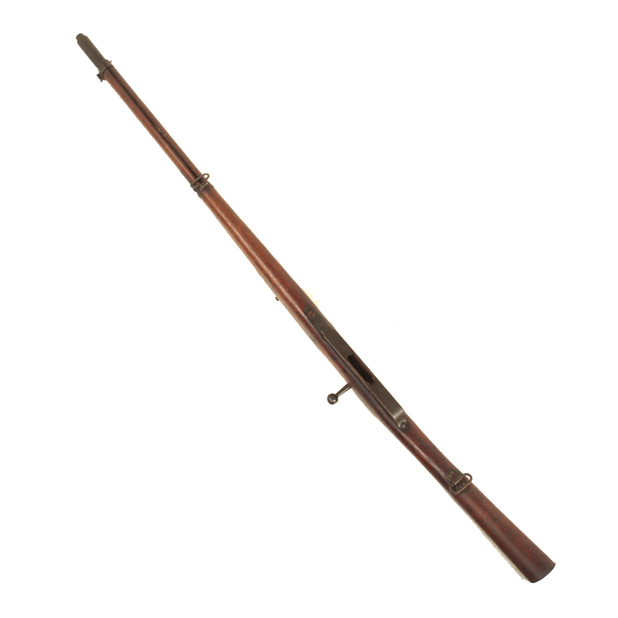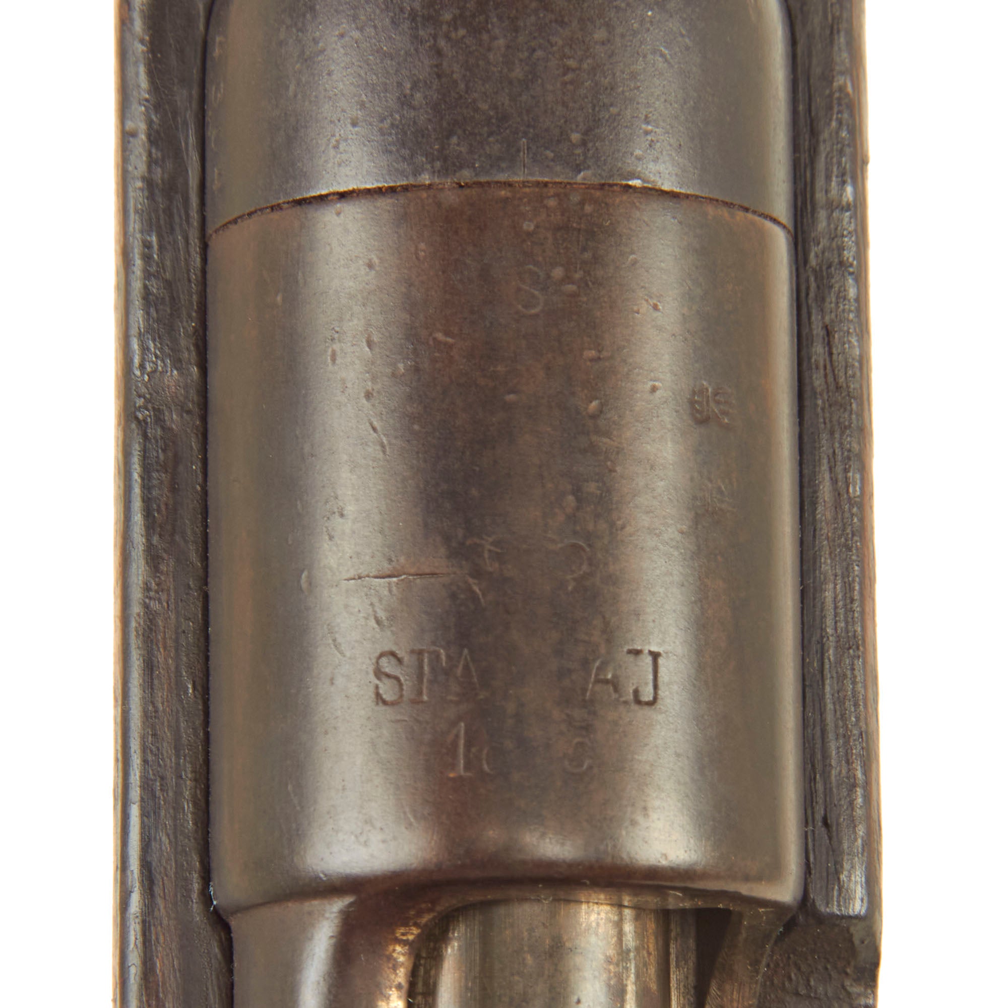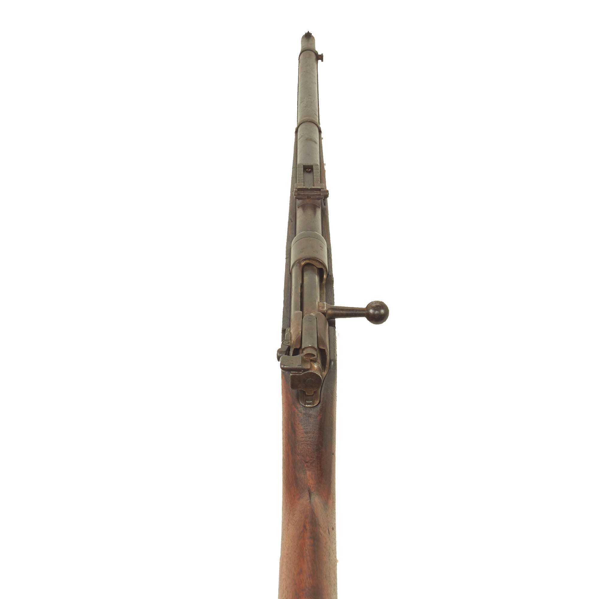 The rifle still bears one original German regimental designation, stamped on the upper barrel band / nose cap: 4. G. R. 10. 217.. This indicates issue to the Königin Augusta Garde-Grenadier-Regiment Nr. 4., 10th Company, 217th Weapon. Also known as the 4th (Queen Augusta) Guards Grenadiers, this unit was first raised 5 May 1860 and was garrisoned in Berlin. Given the condition of the rifle, we assume it was put back into service during WWI and we would imagine that this rifle also saw training use with the Guard Corps, and was never in line to send overseas. That also explains the wear on the rifle, which definitely saw long active service.
