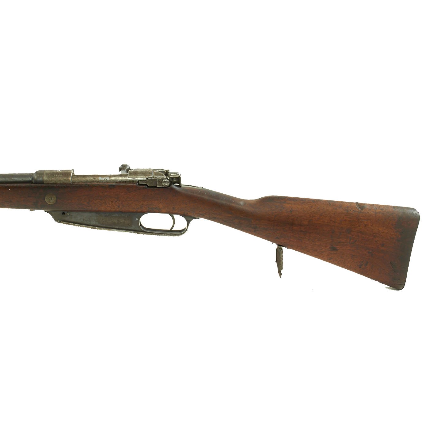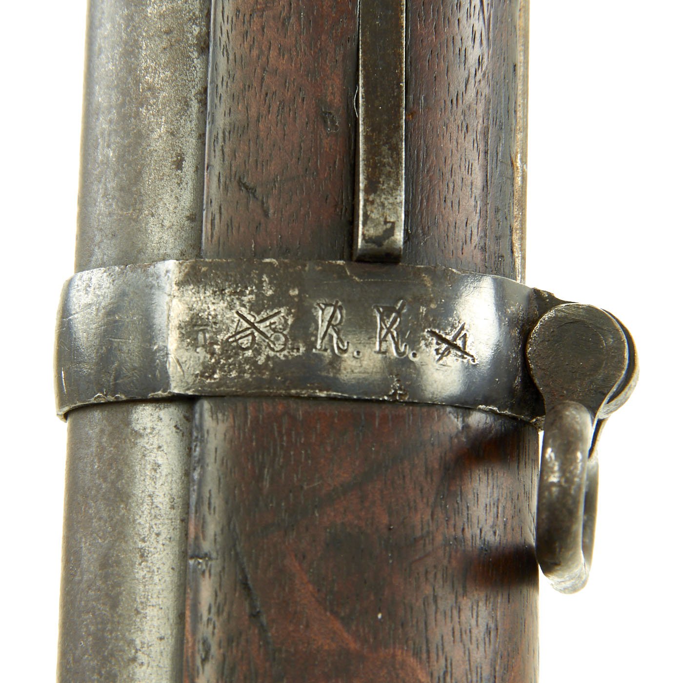An absolutely genuine GERMAN contract M-1888 Service Rifle issued to a German Infantry Regiment in 1896 and subsequently shipped as Military Aid to Turkey during or before World War One. This possibly saw service on TWO fronts of the Great War. Fully cleaned and ready to display!
