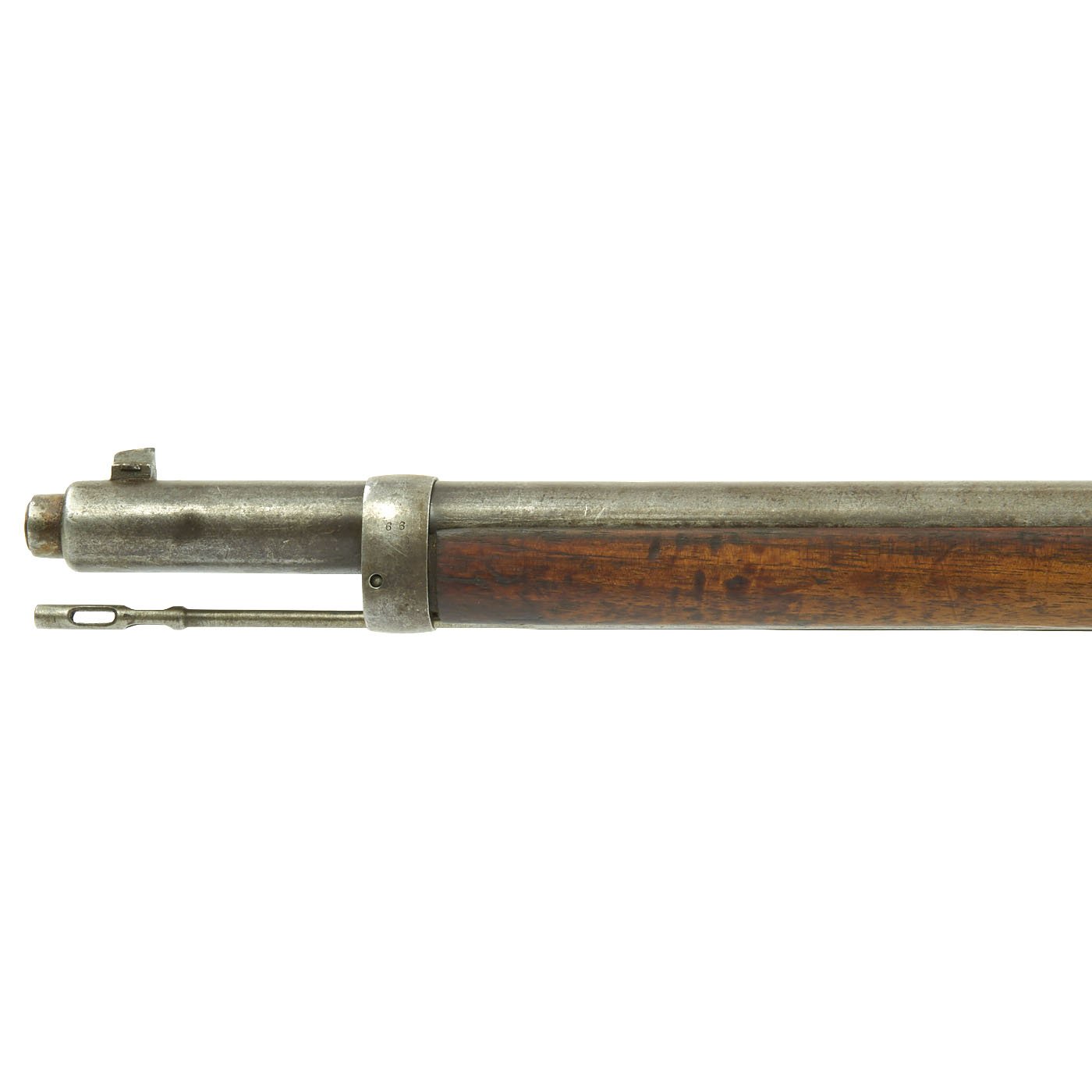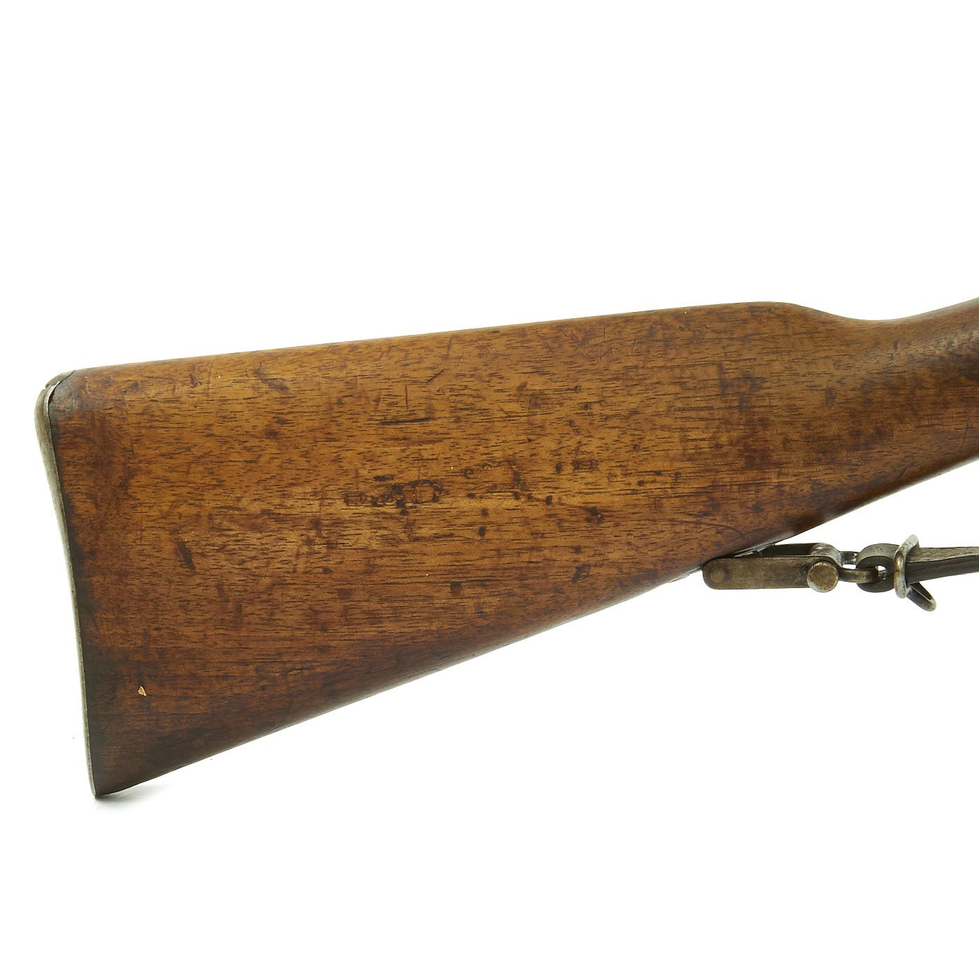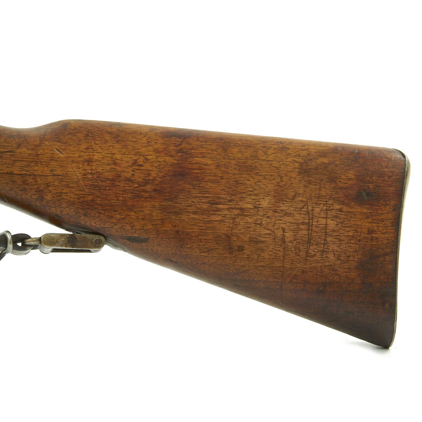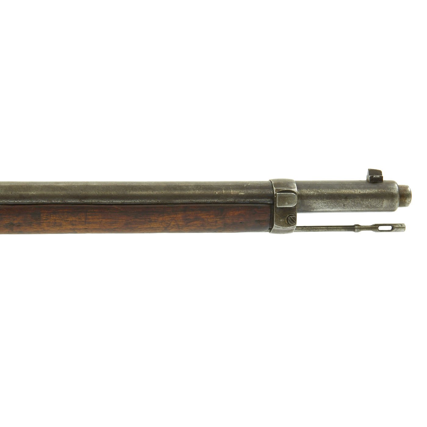 Rifle is in good used condition, with a solid refinished stock and metalwork with a nice gray patina. As the stock has has been sanded a bit, the proofs are partly worn away. It does have wear on the bolt bearing surfaces, however the bore is actually very nice. It has clear lands and grooves, with a bright finish. It has a little rounding of the lands, but nothing major. The rare double-slot cleaning rod is still present, as is the bolt extractor, which is easily lost during cleaning. The firing pin is still present, and the action cycles nicely.