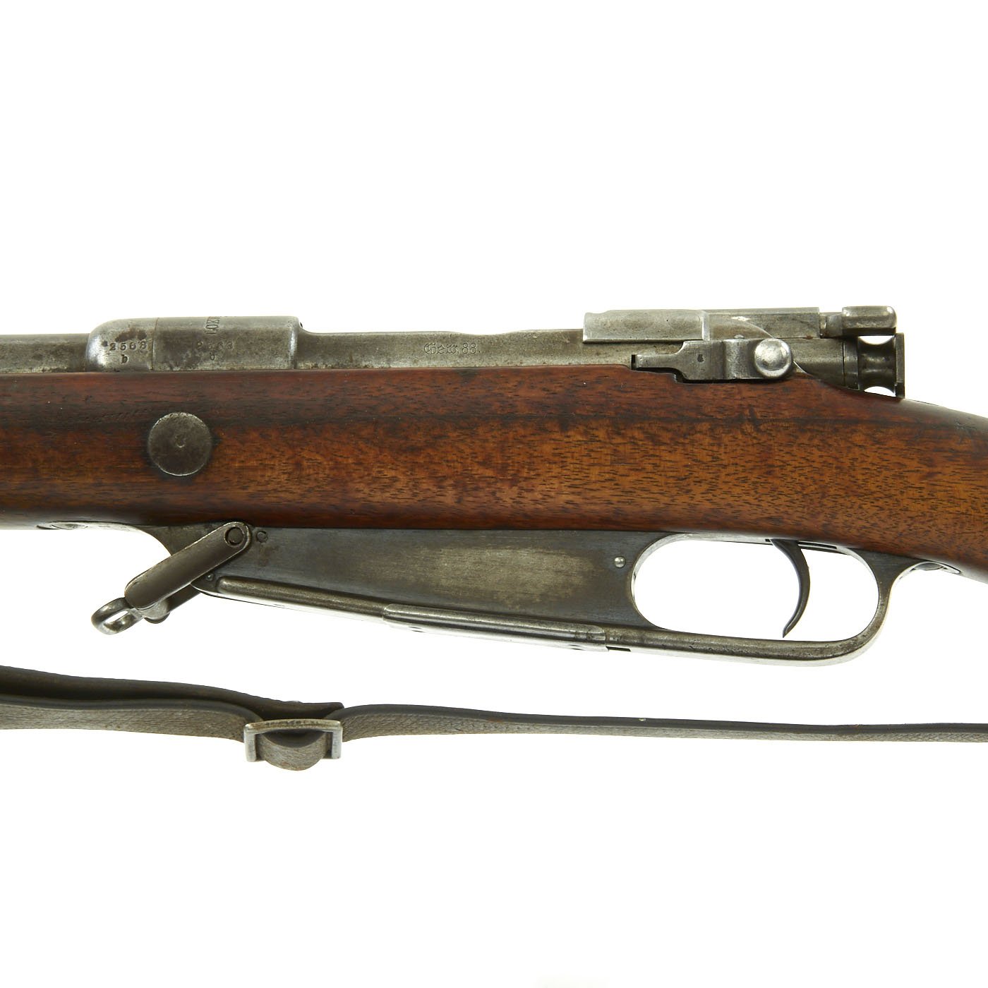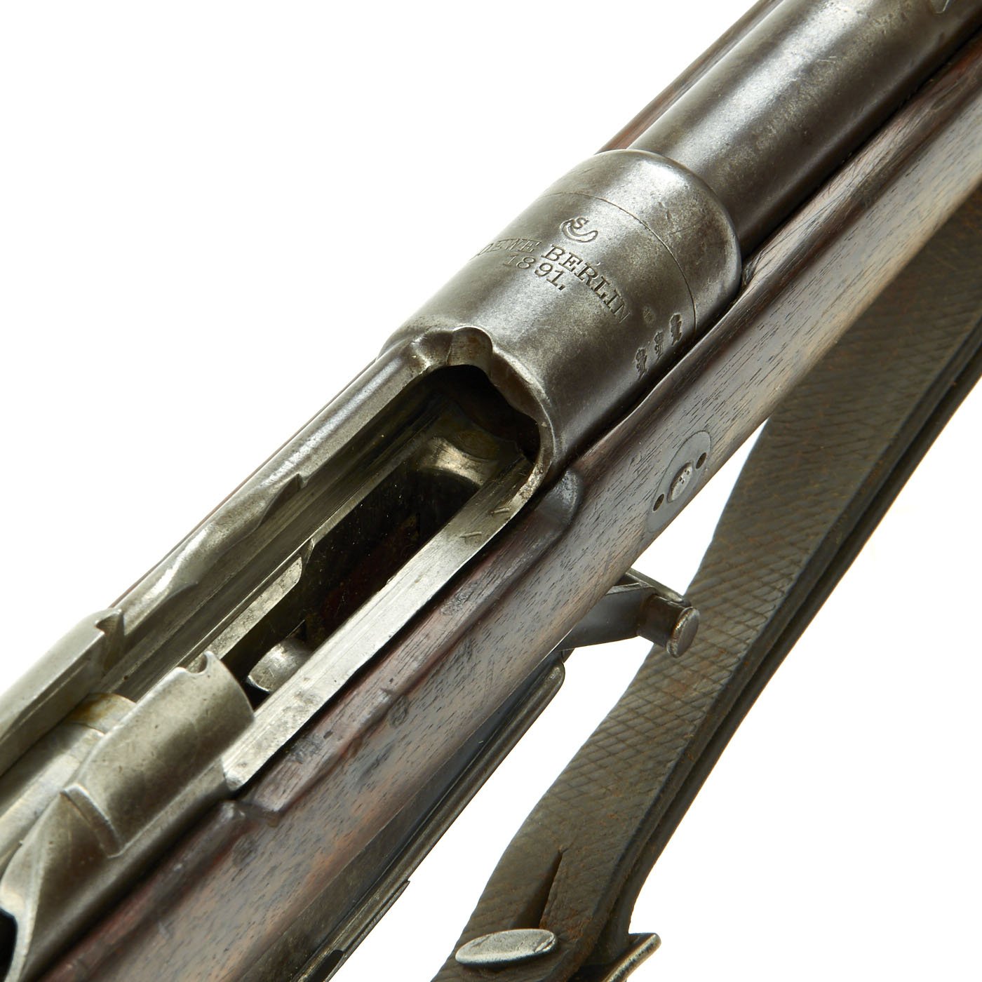 An absolutely genuine GERMAN contract M-1888 Service Rifle with sling issued to the German Army in 1895 and subsequently shipped as Military Aid to Turkey during or before World War One. This possibly saw service on TWO fronts of the Great War. Fully cleaned and ready to display!
