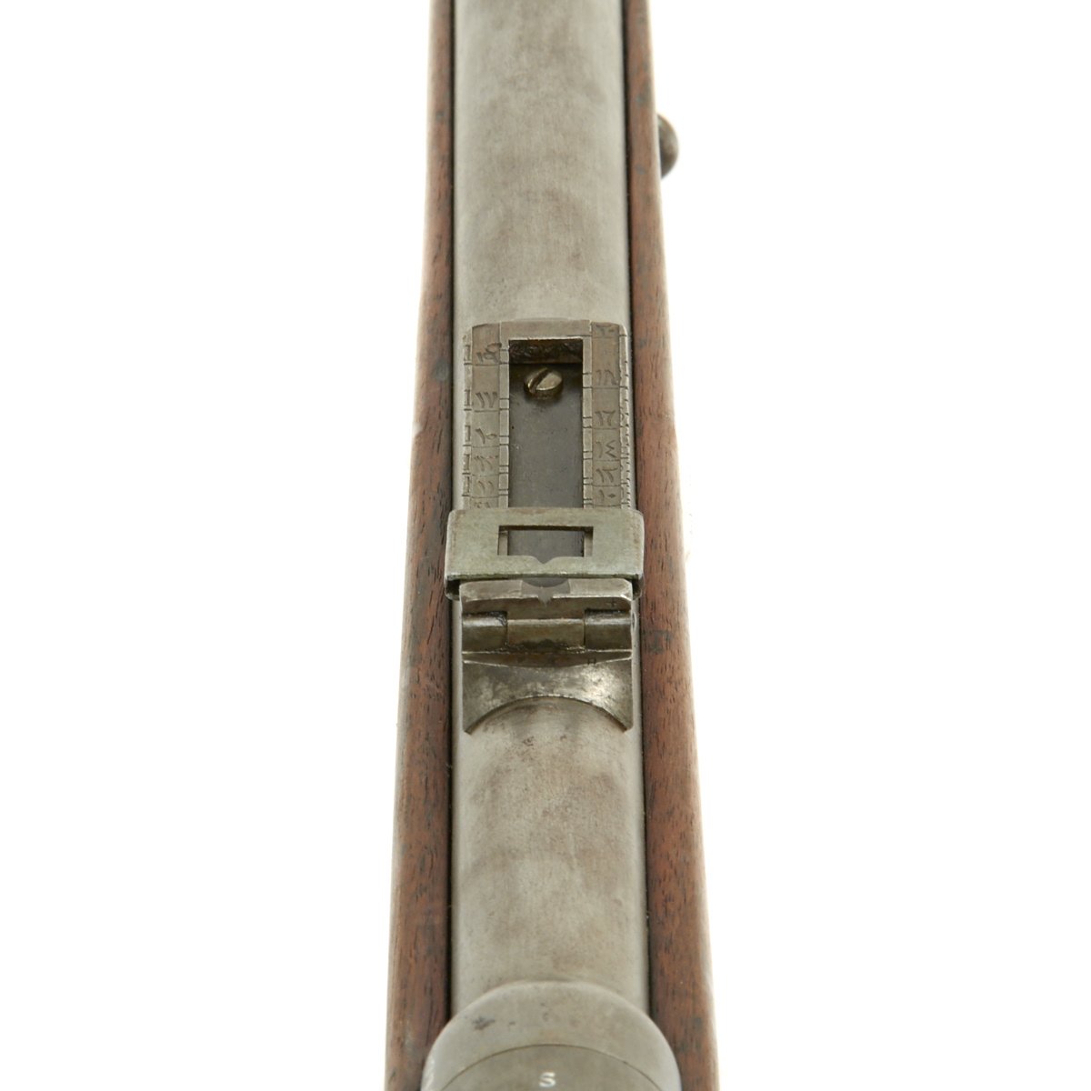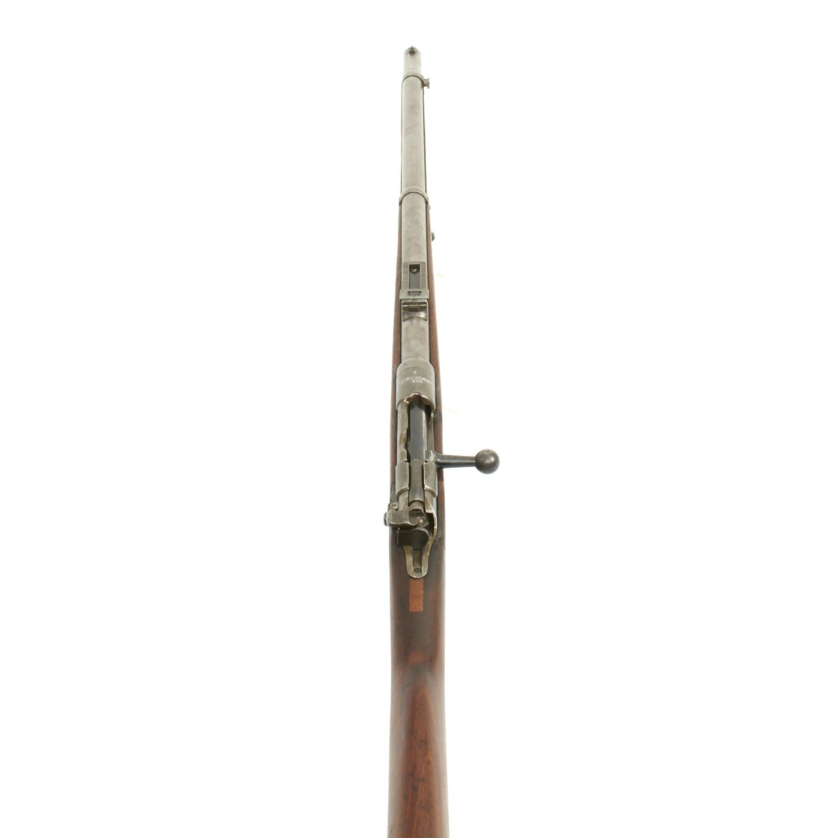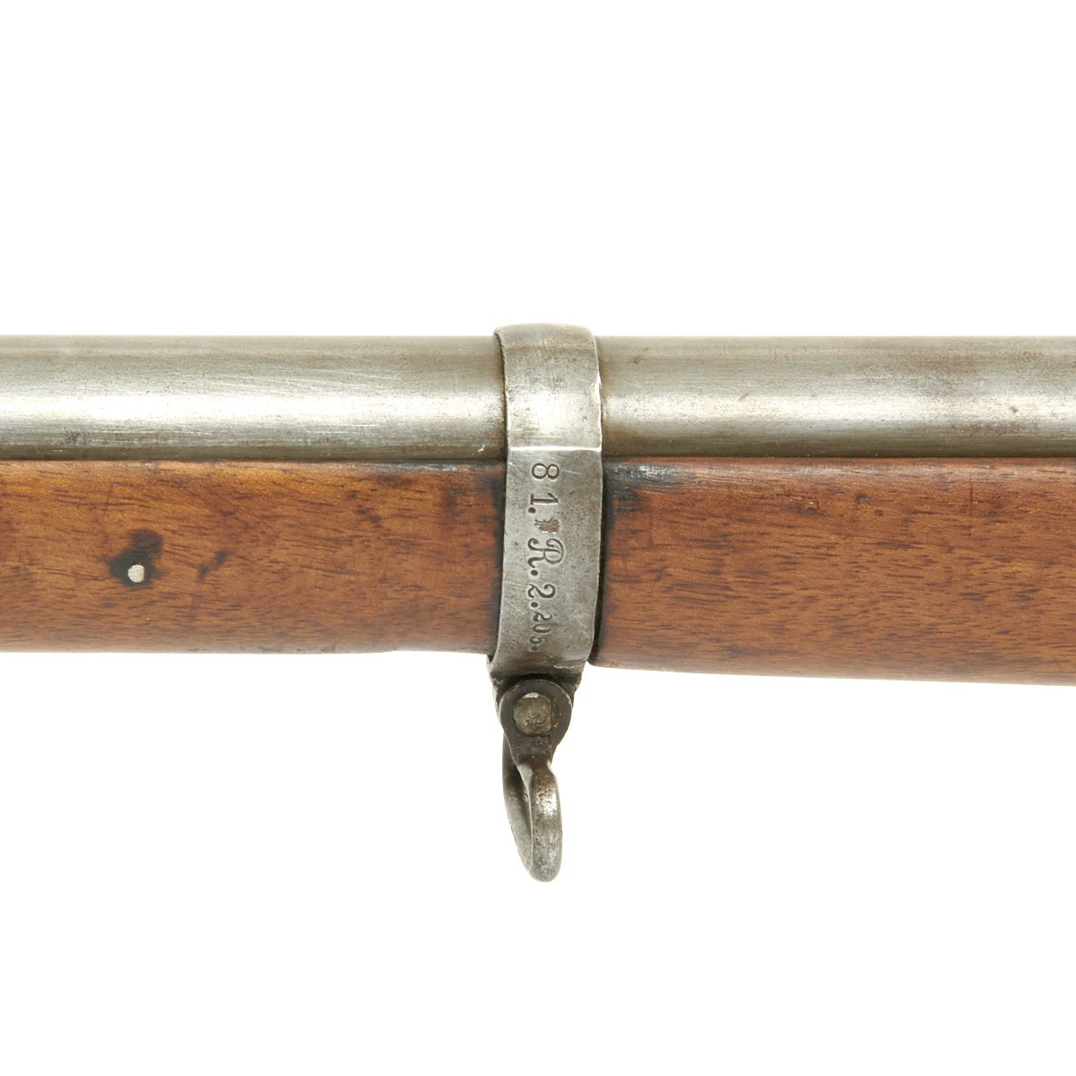 The rifle then saw long service, as indicated by the large number of different markings on the gun. It still retains the original German Regimental Markings on the middle barrel band: