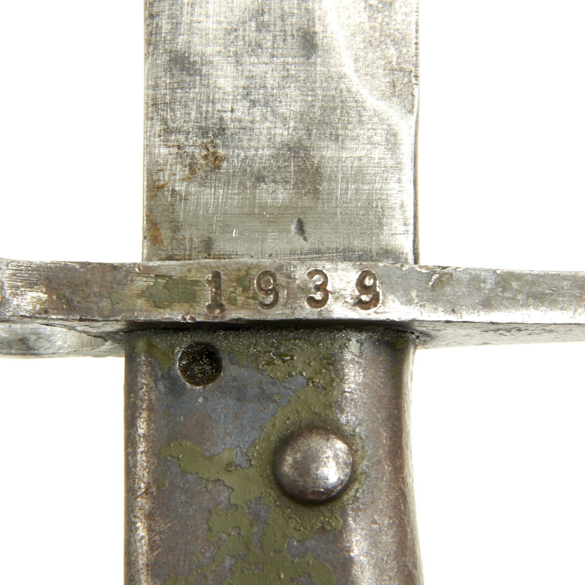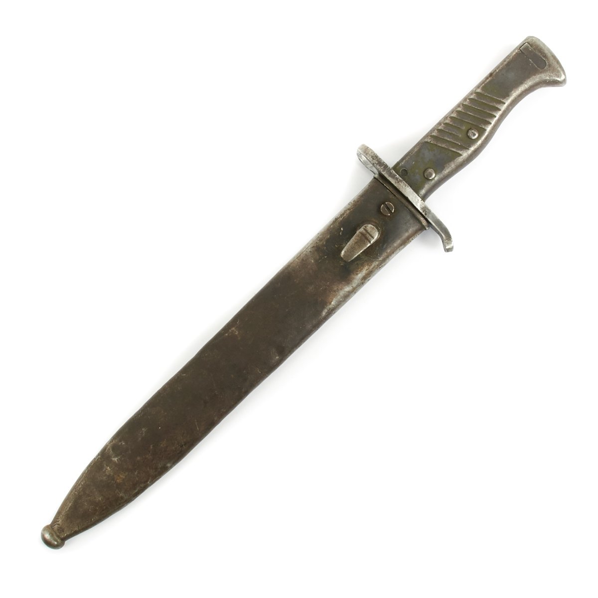 Included is a very nice "Ersatz" (replacement) bayonet with matching scabbard, which were somewhat crudely produced "emergency issue" bayonets often issued to back line troops. These were made at the beginning of the war as production of the 98/05 was ramped up to meet the requirements of the rapidly expanding army. Many of these were made from broken or used earlier bayonets. This example was shortened for use in Turkey, and appears to have began life as a Butcher bladed bayonet.