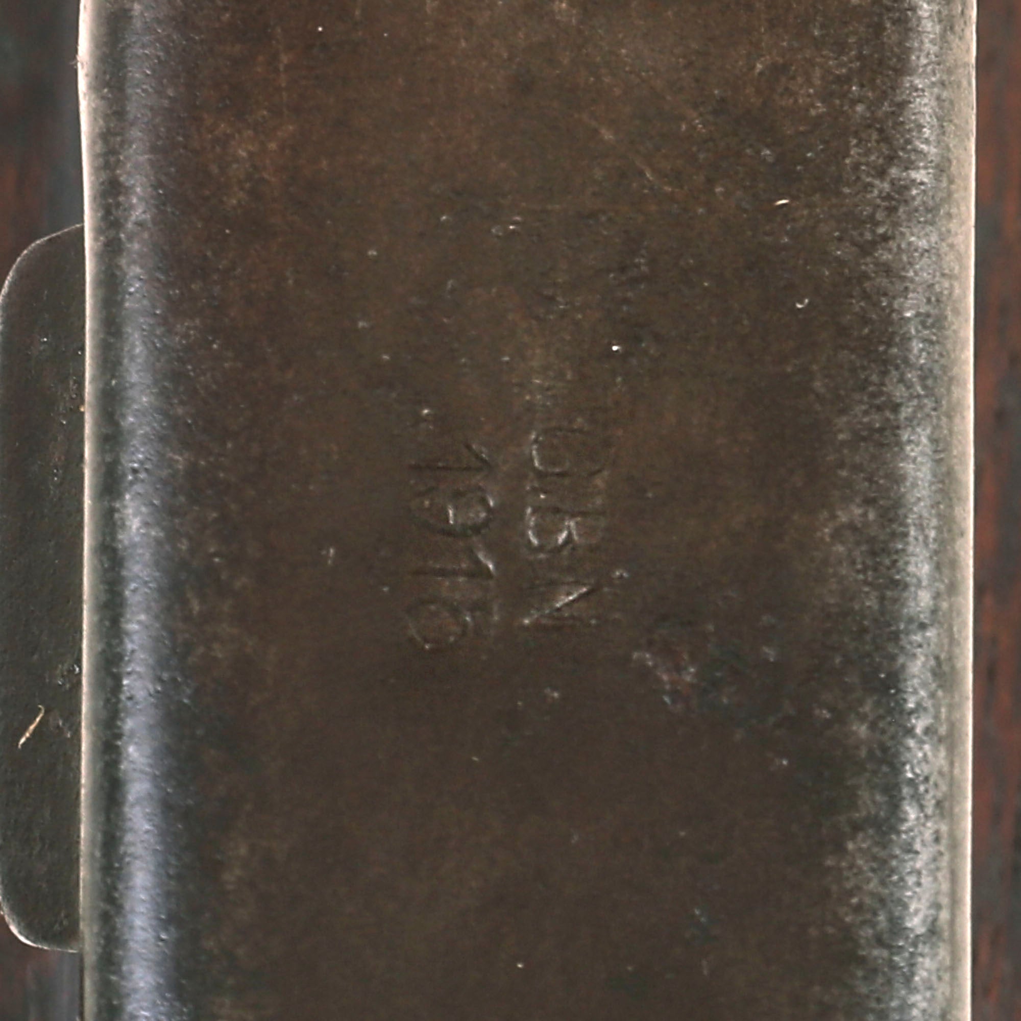 These rifles were originally chambered for 7.92mm Patrone 88 ammunition and had a fixed magazine. As with virtually all Gewehr 88 rifles in service, this example was converted to take the 7.92×57mm Mauser S Patrone, and has an S stamped above the chamber, indicating the conversion. The Spitzer-shaped S Cartridge was ballistically superior to the M/88, however the chamber required modification to accept the thicker walled shell casing. This particular rifle has notched plates welded to the rear of the receiver on either side to accept the 1905 pattern stripper clips, making this a Gewehr 88/05 S. It also has the tell tale "notch" cut into the rear of the receiver, as the loaded clip would run into this area. The magazine floor plate is marked and dated G.B.N. / 1915, most likely the year of the last conversion.