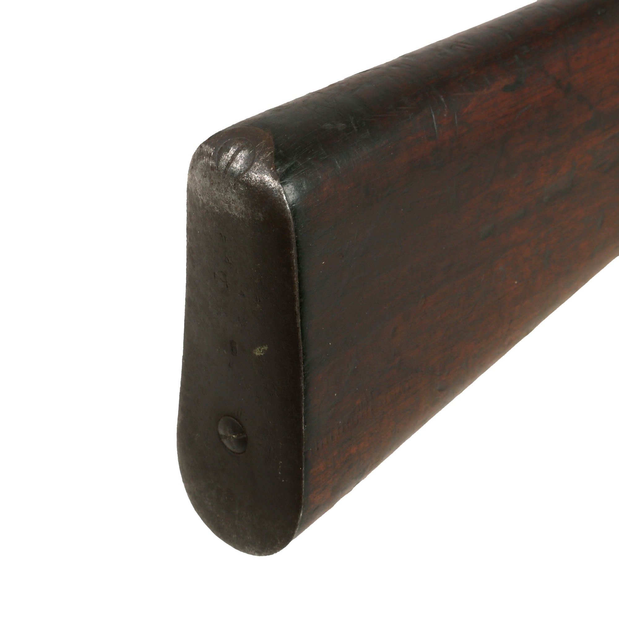Rifle is in very good used condition, with a lovely plum patina over all of the metalwork, and a lovely service used look to the stock. The stock still shows plenty of original stamped cartouches, indicating that it has not been sanded down or refurbished excessively. It has a great service worn look, with no major damage, just the usual dents and dings from service.