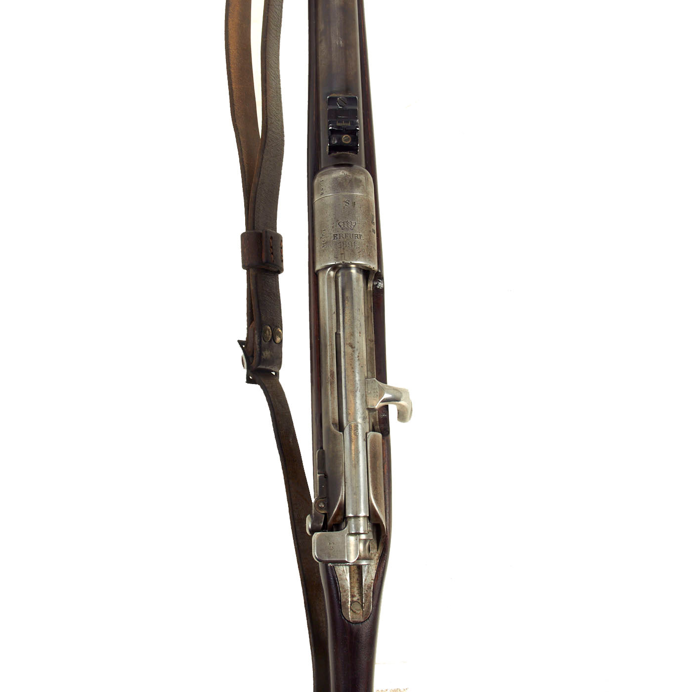 Original Item: Only One Available. Adopted in 1888 the new German Infantry round in 7.92 X 57mm replaced the old 10.4mm large bore cartridge adopted in 1871. The M-1888 Rifle was referred to as the "Commission Rifle" and was manufactured as a full Infantry Rifle (Gewehr 88) and a Cavalry Carbine (Karabiner 88) starting in 1888. In 1891 Artillery Carbine was adopted called the Gewehr 91, and it was identical to the Cavalry carbine, except it had a stacking hook below the nose cap.