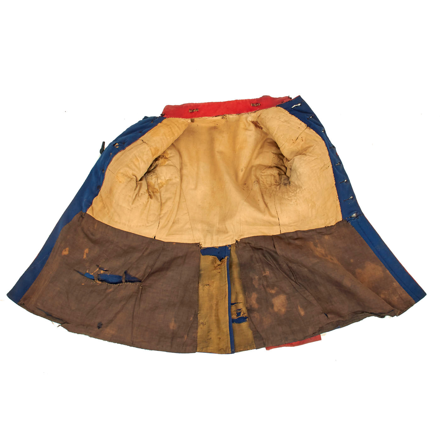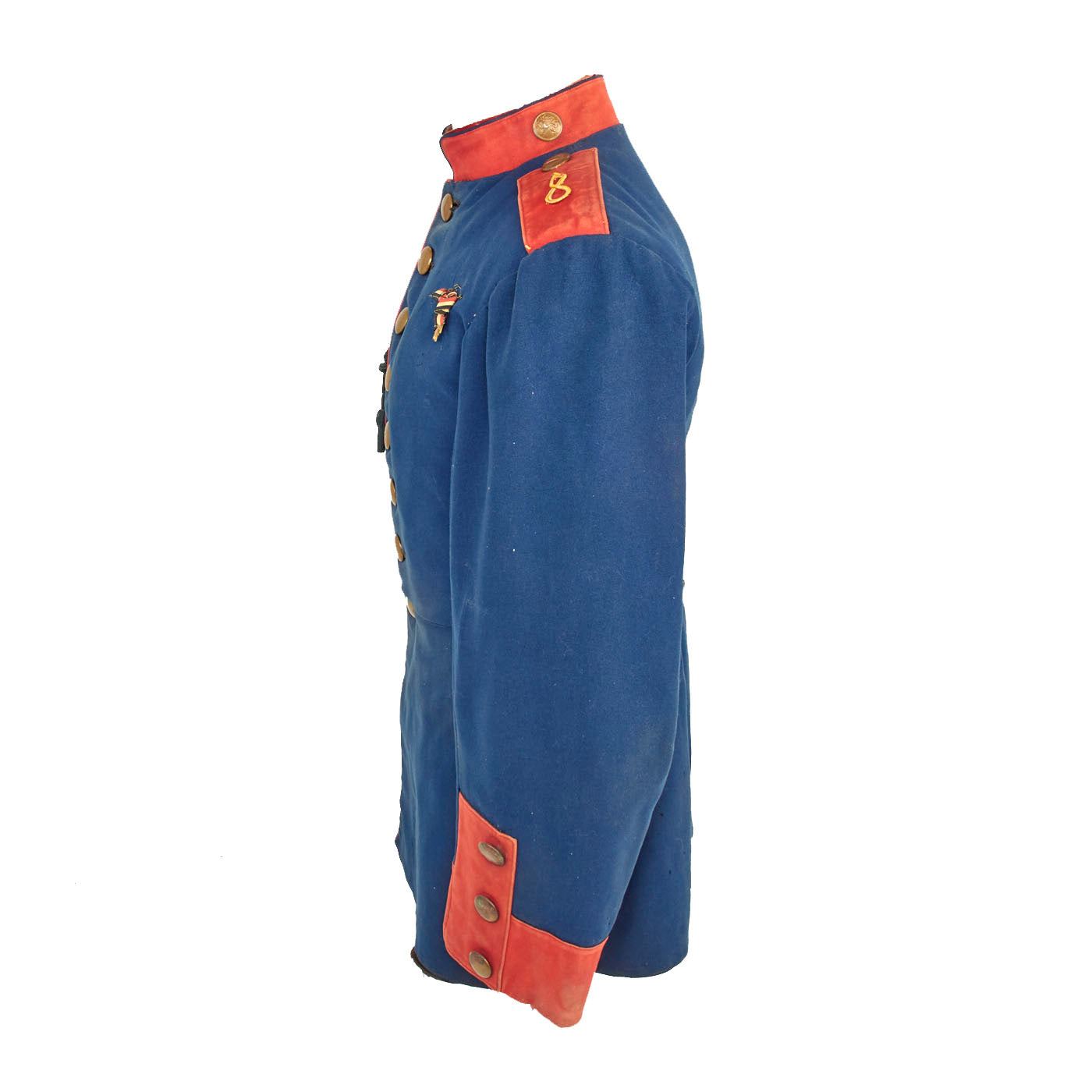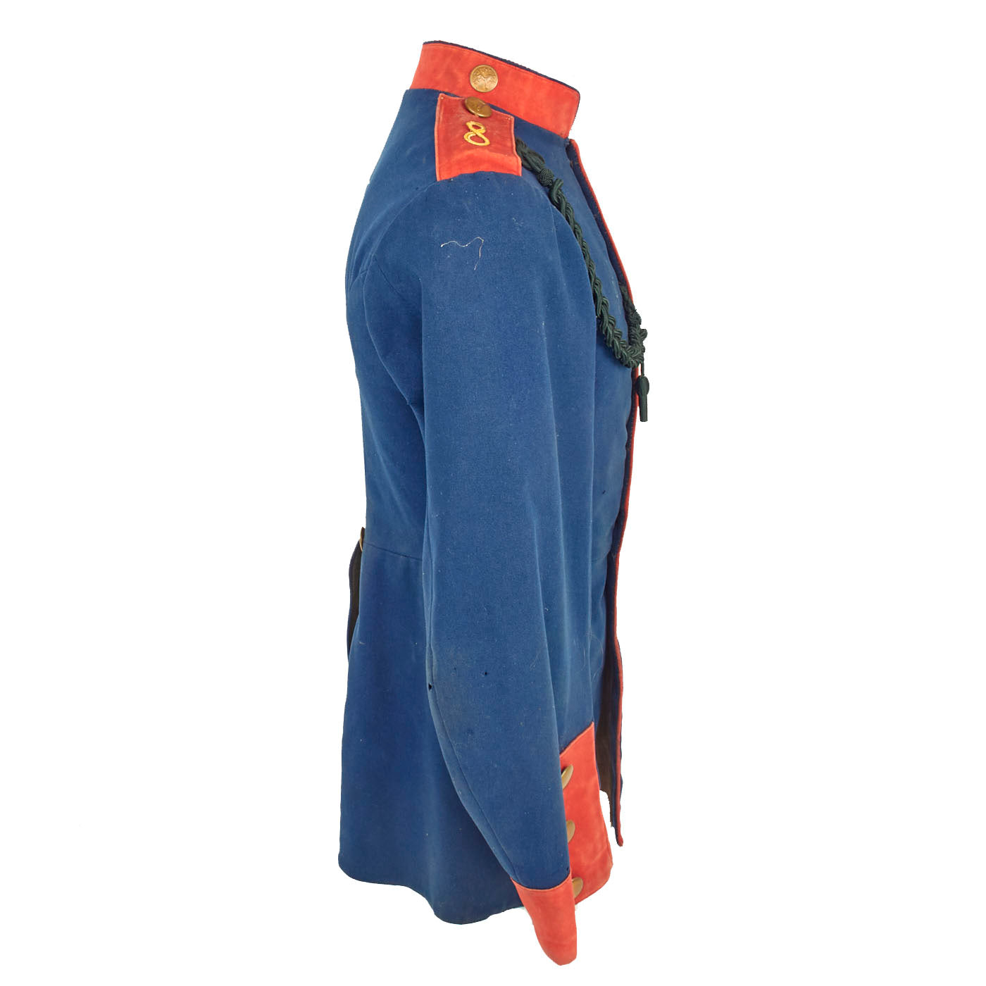 Original Item: Only One Available. This is a lovely M-1867 Bavarian Waffenrock, featuring the beautiful Brandenburg Cuffs! In 1842, Preußen (Prussia) introduced a new pattern of uniform for all foot-troops consisting of a uniform called a Waffenrock to be worn with a tall leather spiked helmet called a Pickelhaube. This form of dress was considerably different from the short Kollet (a waist-length jacket with tails) worn with the high leather Tschako during the Napoleonic wars.