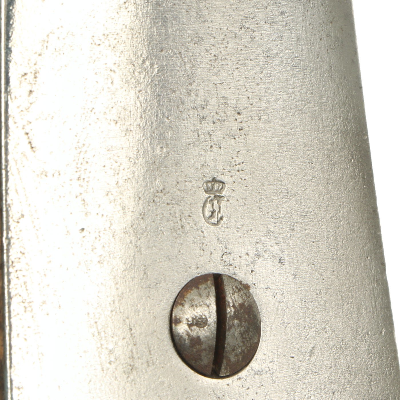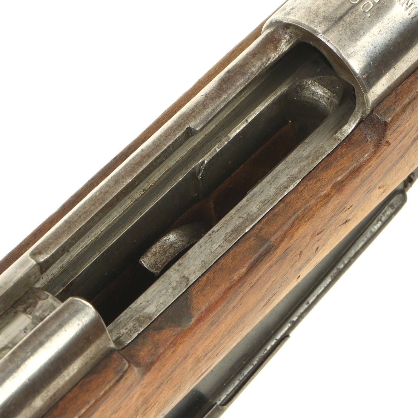 The carbine has an 18" barrel, which has a very nice bore, with clear lands and grooves and a bright finish. There is slight rounding to the lands, as well as areas of light staining. There is no 'S' marked over the chamber to indicate modification for the S-PATRONE cartridge introduced in 1903 (we do not recommend firing the S-cartridge in this carbine). However, it seems unlikely that this carbine would have escaped conversion, as it definitely was worked on in arsenal. This short carbine was intended for use by cavalry units.