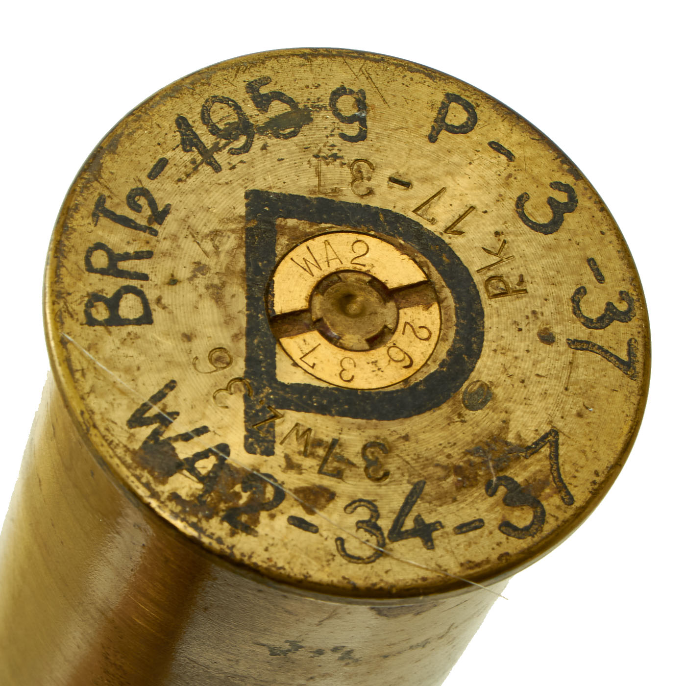 Original Item: Only One Available. This is a very good condition, totally inert -BATF compliant, PAK 36 37mm Armor Piercing round in its original shell casing. Offered in very good condition with German wartime markings on the base of the shell, which read: