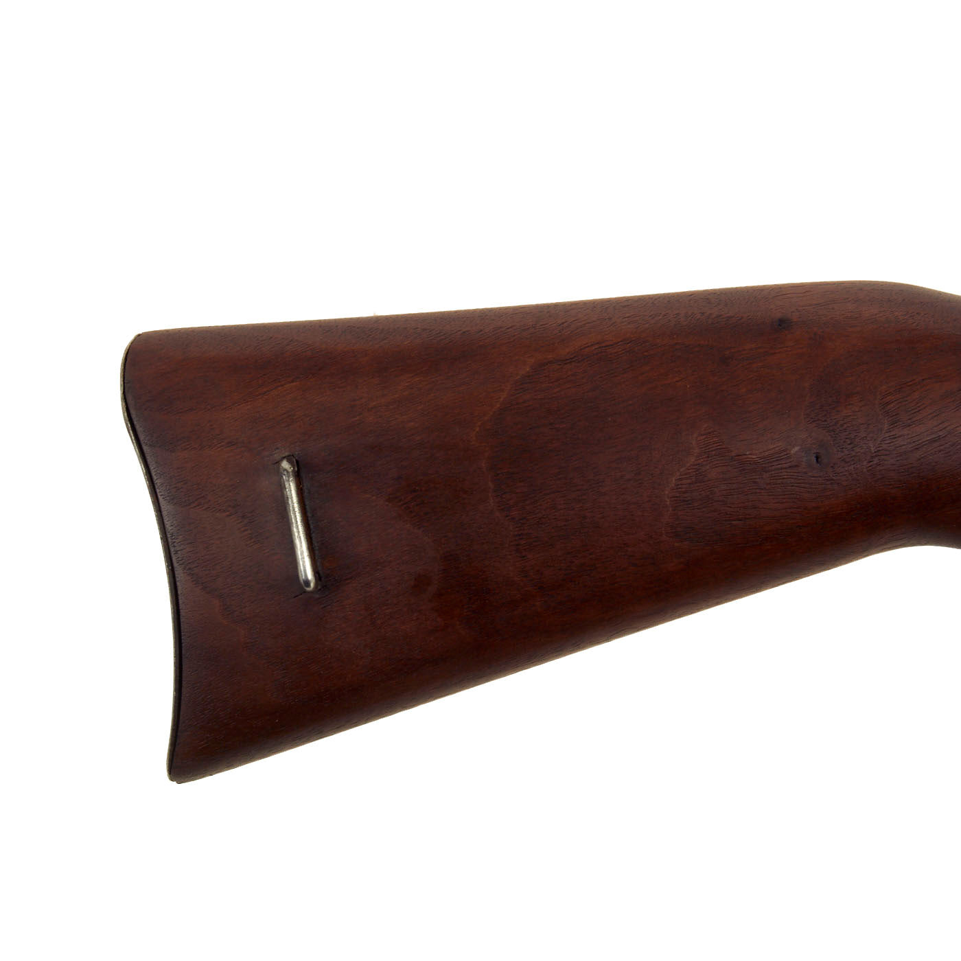 Condition is very good, with a moving trigger and release for the receiver, though the receiver can no longer be unlocked with it. The selector switch on the right side is still present and moves back and forth. The stock is lovely, with a lot of curl in the grain of the butt stock area. An original magazine is included, which will be deactivated where required.