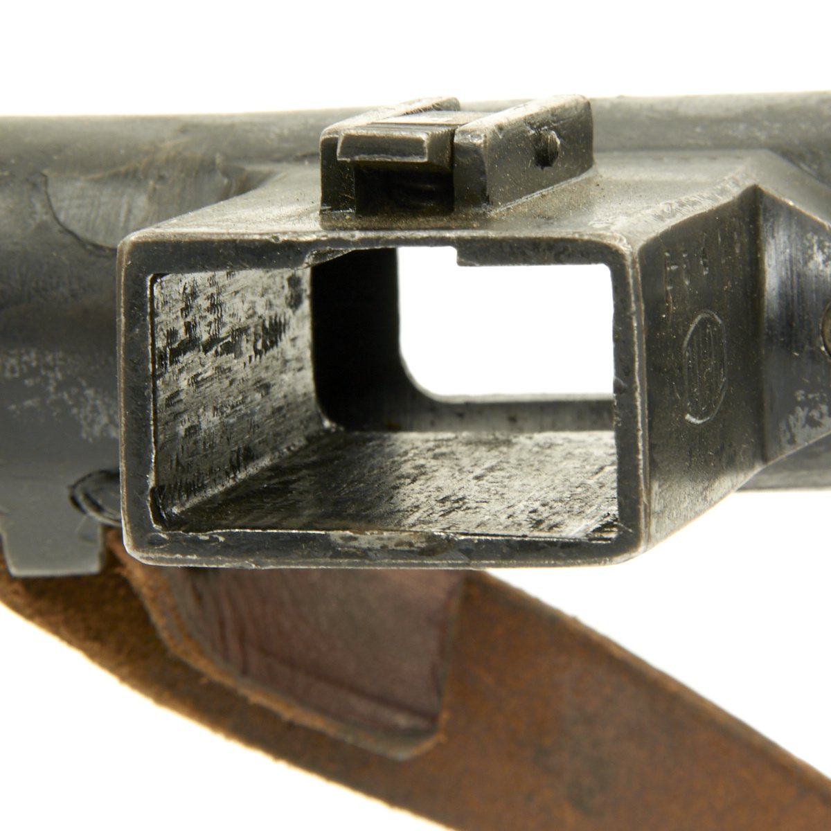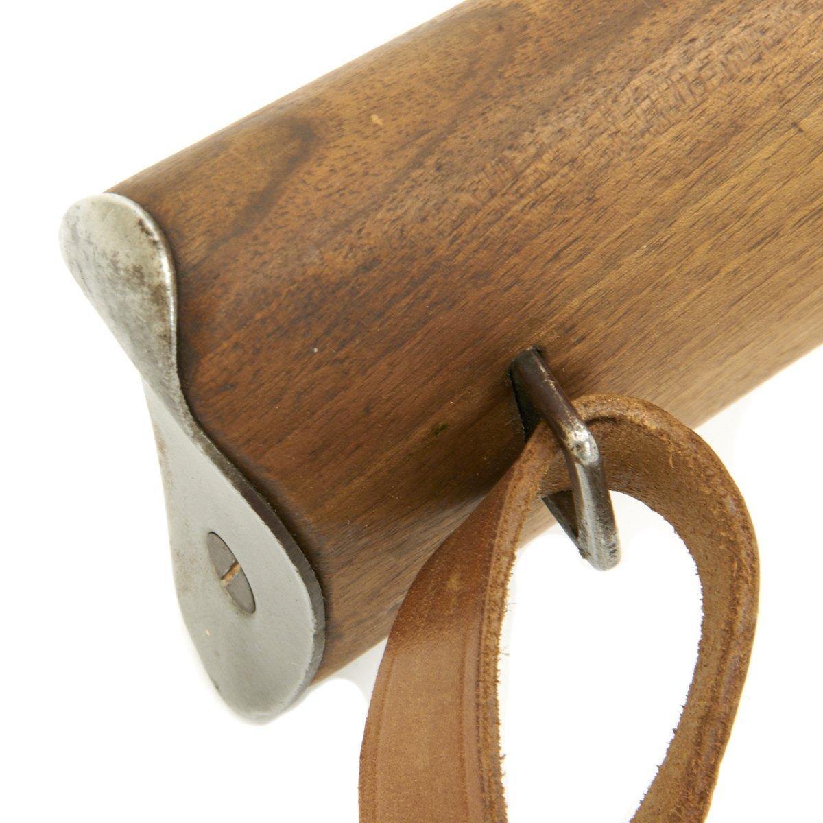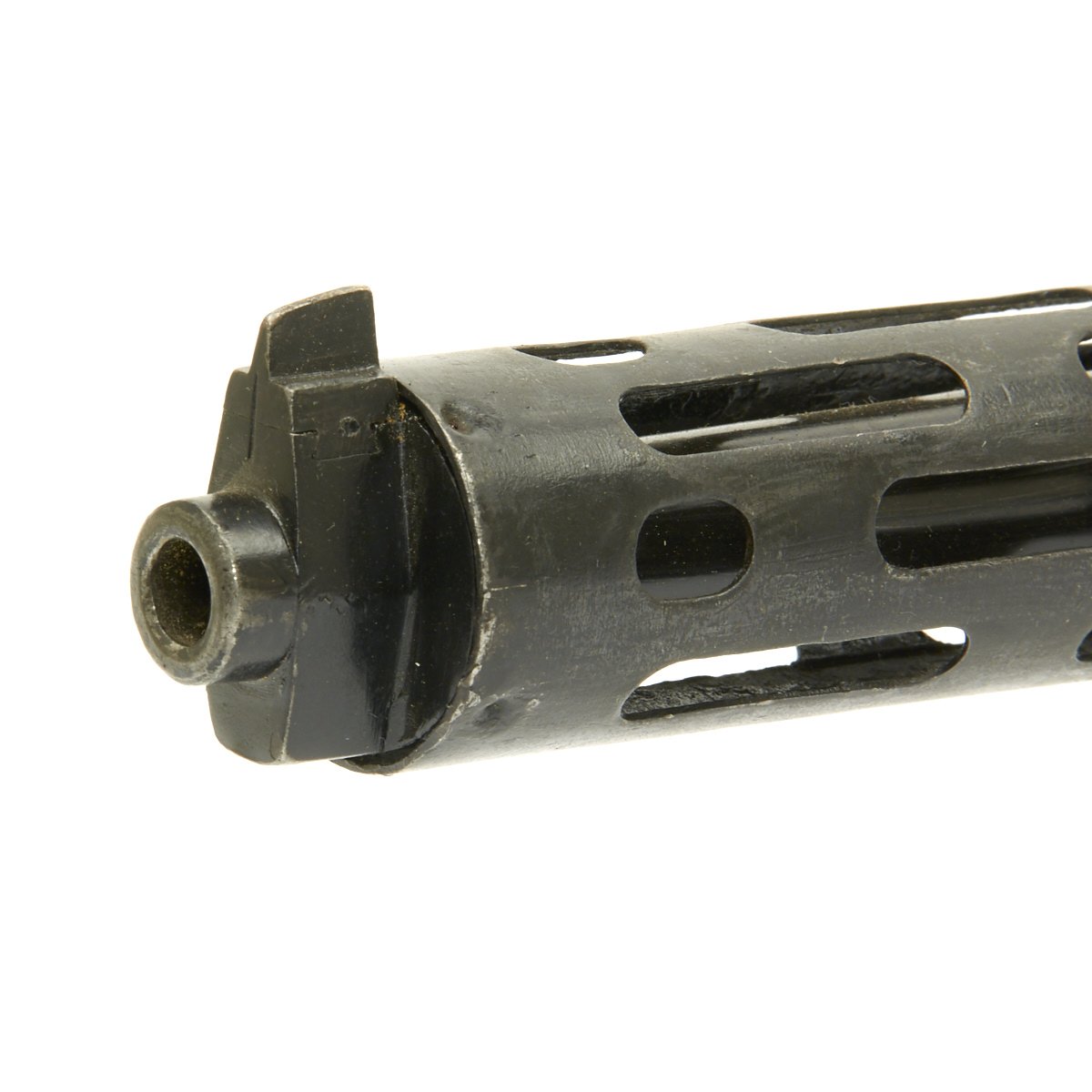This example is constructed of an original demilled barrel, magazine well, barrel jacket, stock, and trigger group mounted on a dummy receiver. There are no internals, and the side of the dummy receiver has a replica cocking handle mounted. There is also an original sling attached to the right side of the stock. Stock is in very good condition, though there is a repaired crack at the frong of the trigger group. Magazine is included where permitted, and will be deactivated if sent where prohibited.