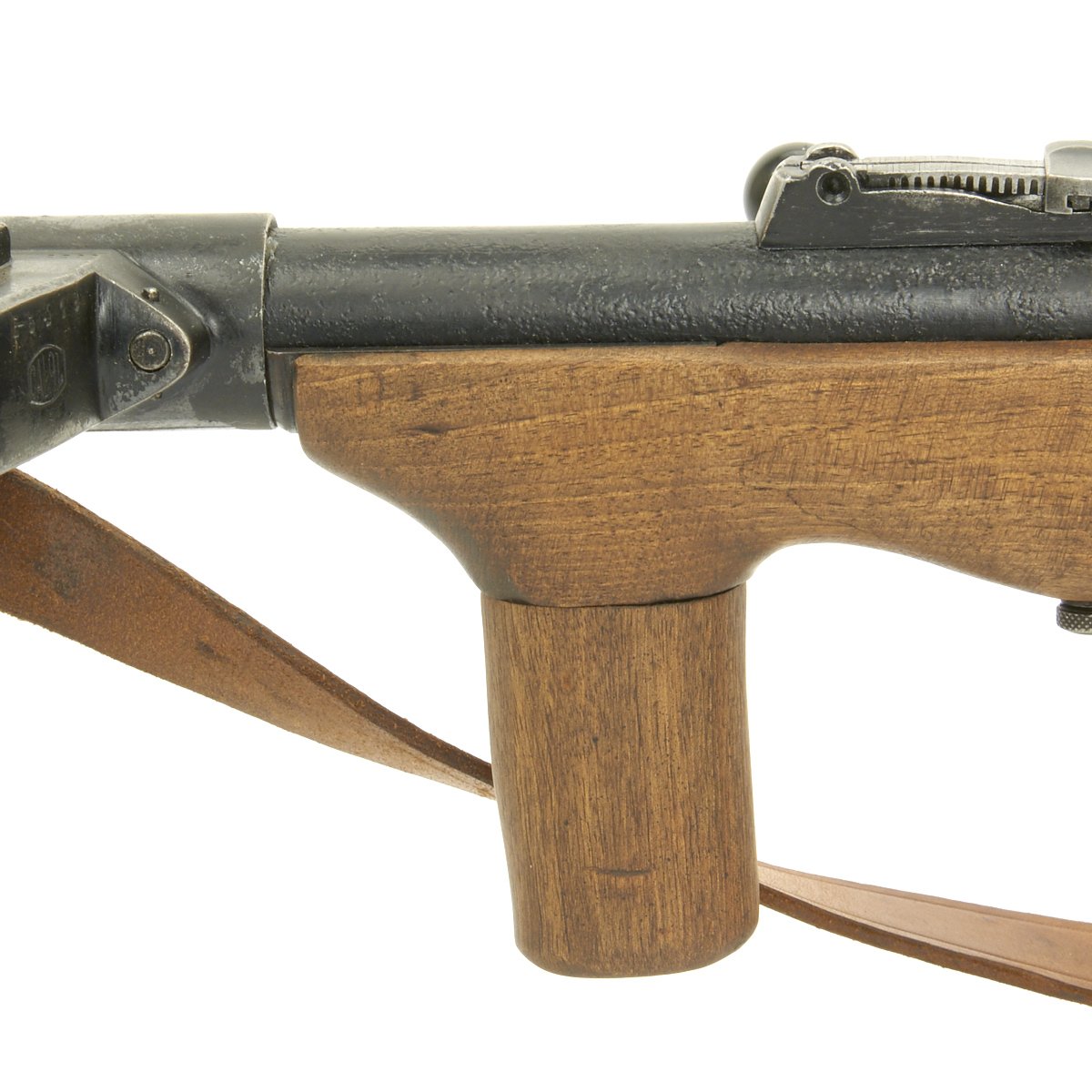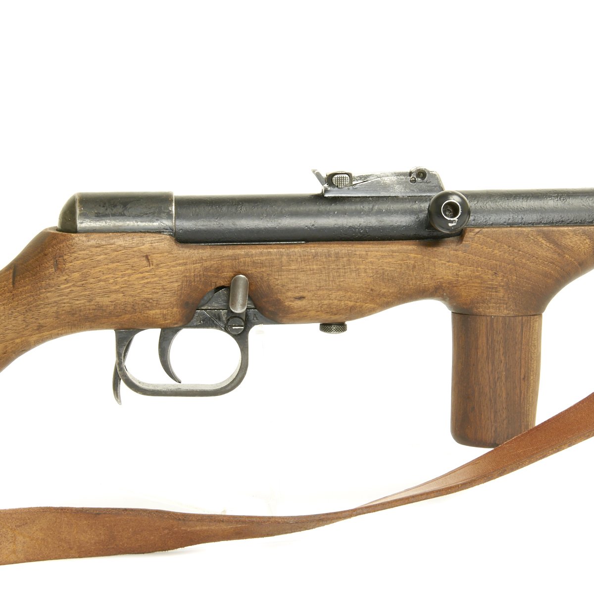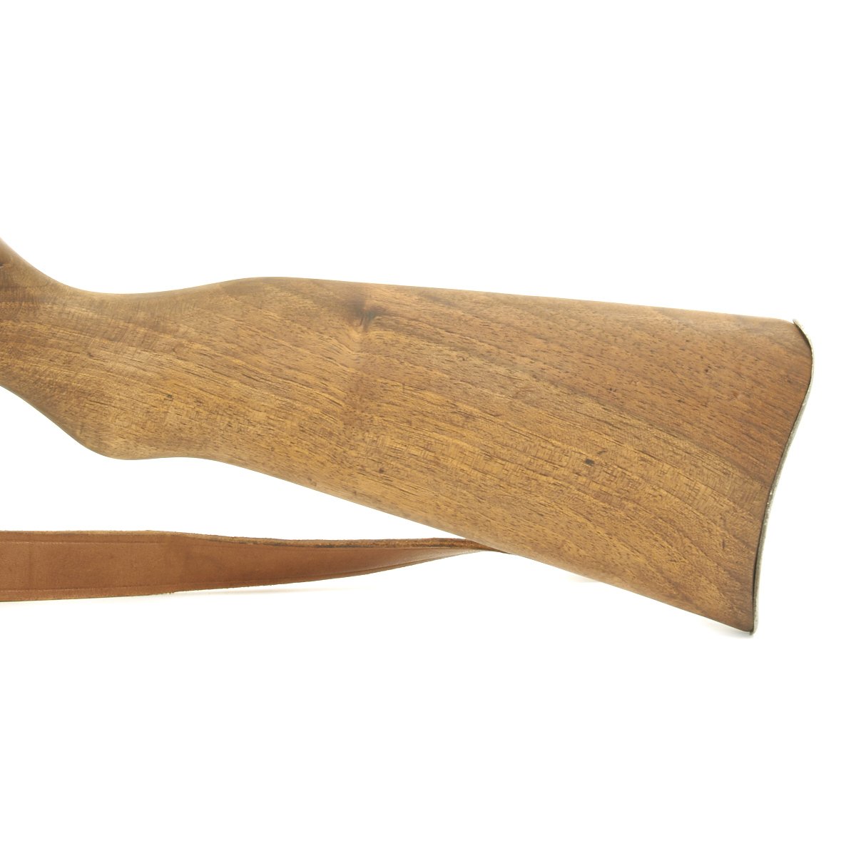 This example is constructed of an original demilled barrel, magazine well, barrel jacket, stock, and trigger group mounted on a dummy receiver. There are no internals, and the side of the dummy receiver has a replica cocking handle mounted. There is also an original sling attached to the right side of the stock. Stock is in very good condition, though there is a repaired crack at the frong of the trigger group. Magazine is included where permitted, and will be deactivated if sent where prohibited.