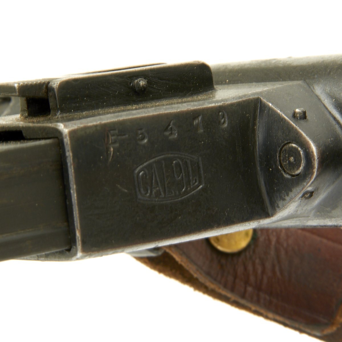 Original Item: Only One Available. This was just received from a private collection. This excellent example is in 9mm Bergmann-Bayard, also known as 9×23mm Largo, indicated by the CAL.9.L marking on the rear of the magazine well. It is also marked with serial number E - 5479. The EMP includes a special safety in front of the trigger guard. When this is pushed in with the bolt closed, the gun cannot fire if dropped on the butt.