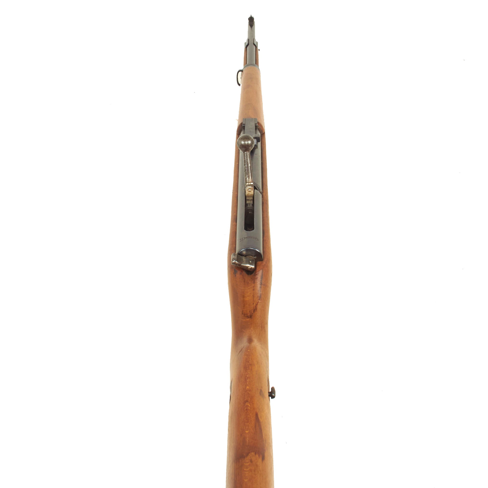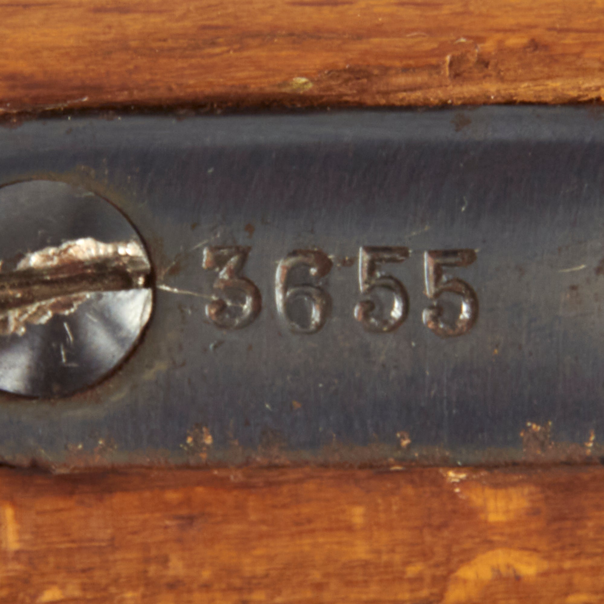 This example has a serial number of 3655 stamped on the front of the trigger guard, with shortened number 655 on the barrel band and on some internal components visible when the bolt is cocked. The top of the receiver still has clear makers markings in front of the bolt channel: