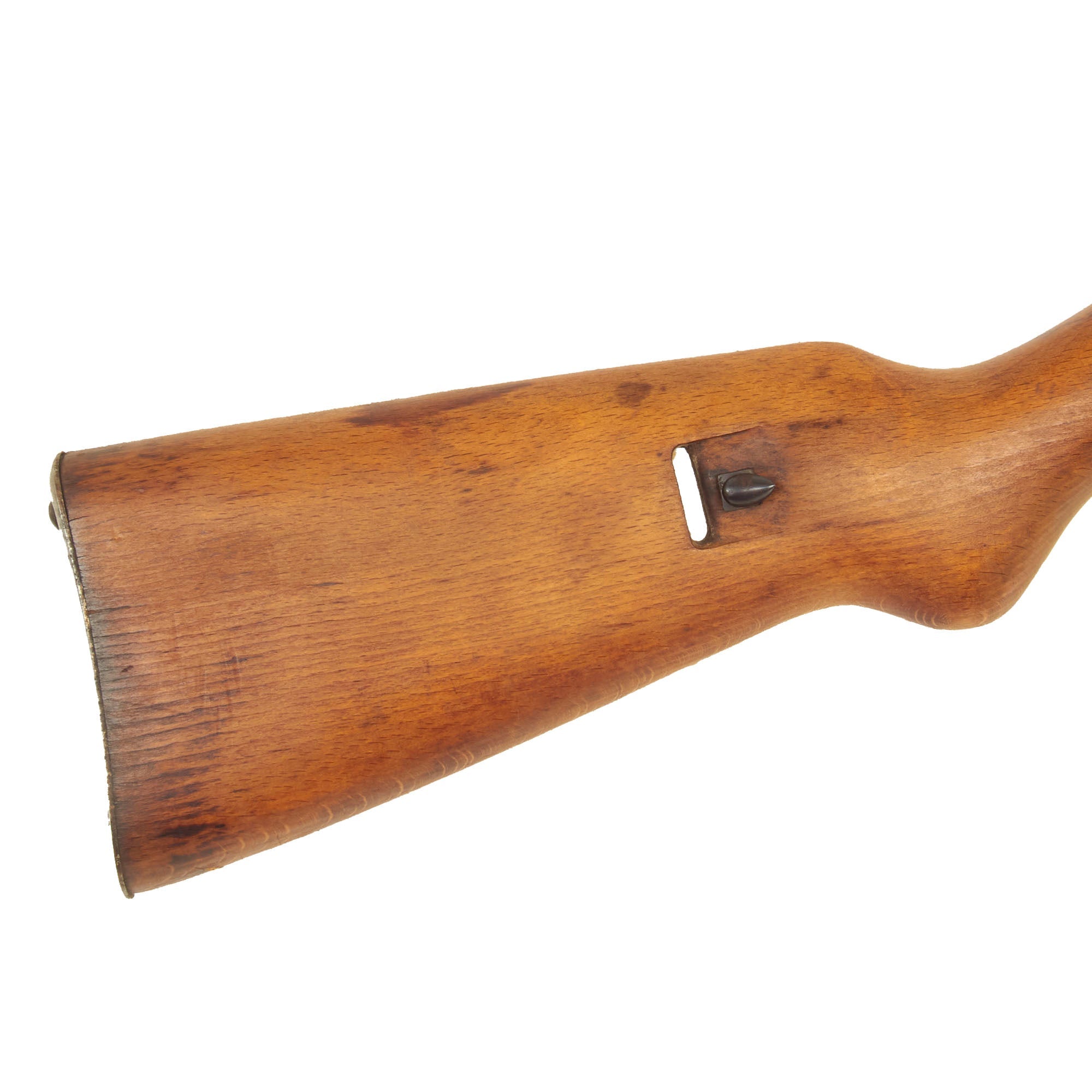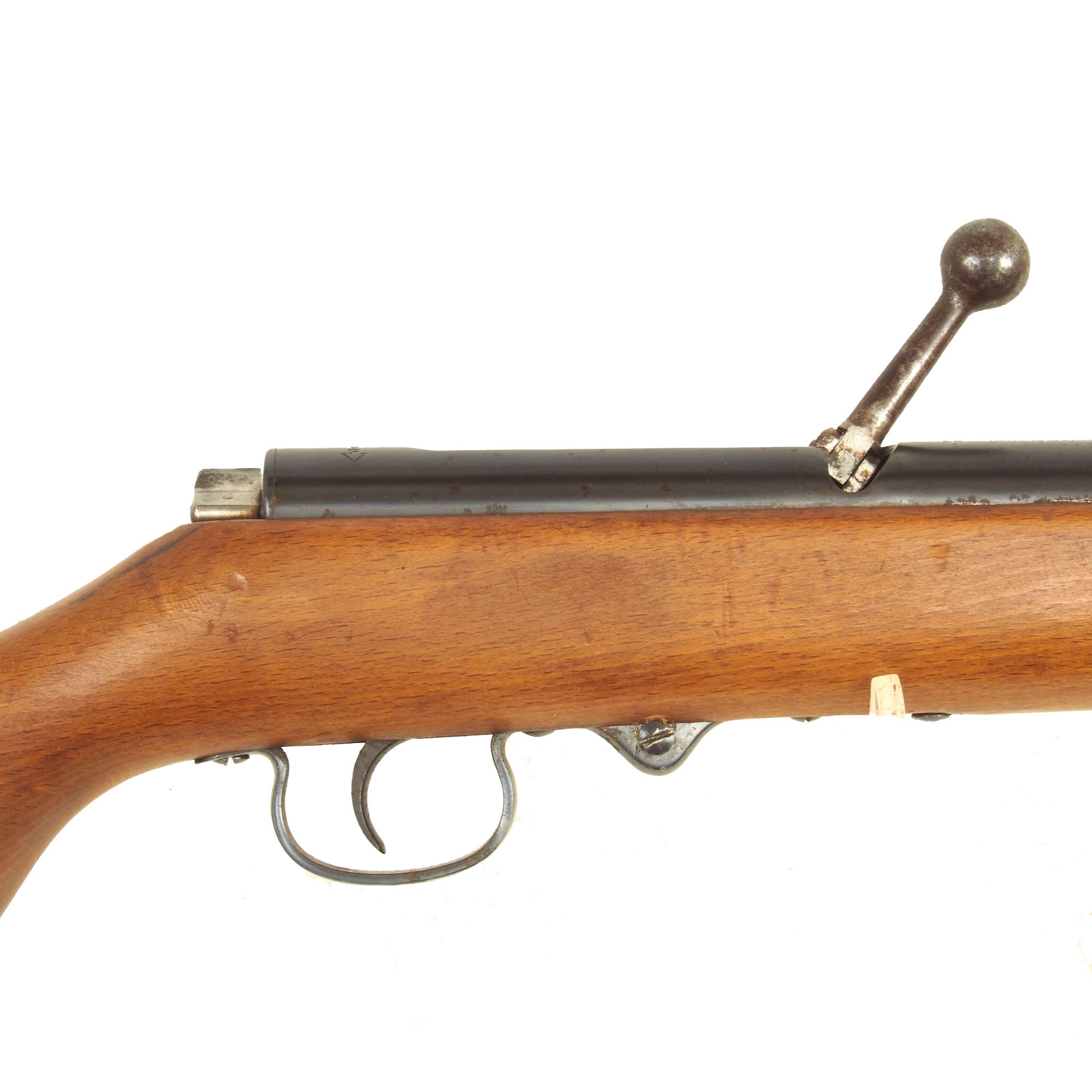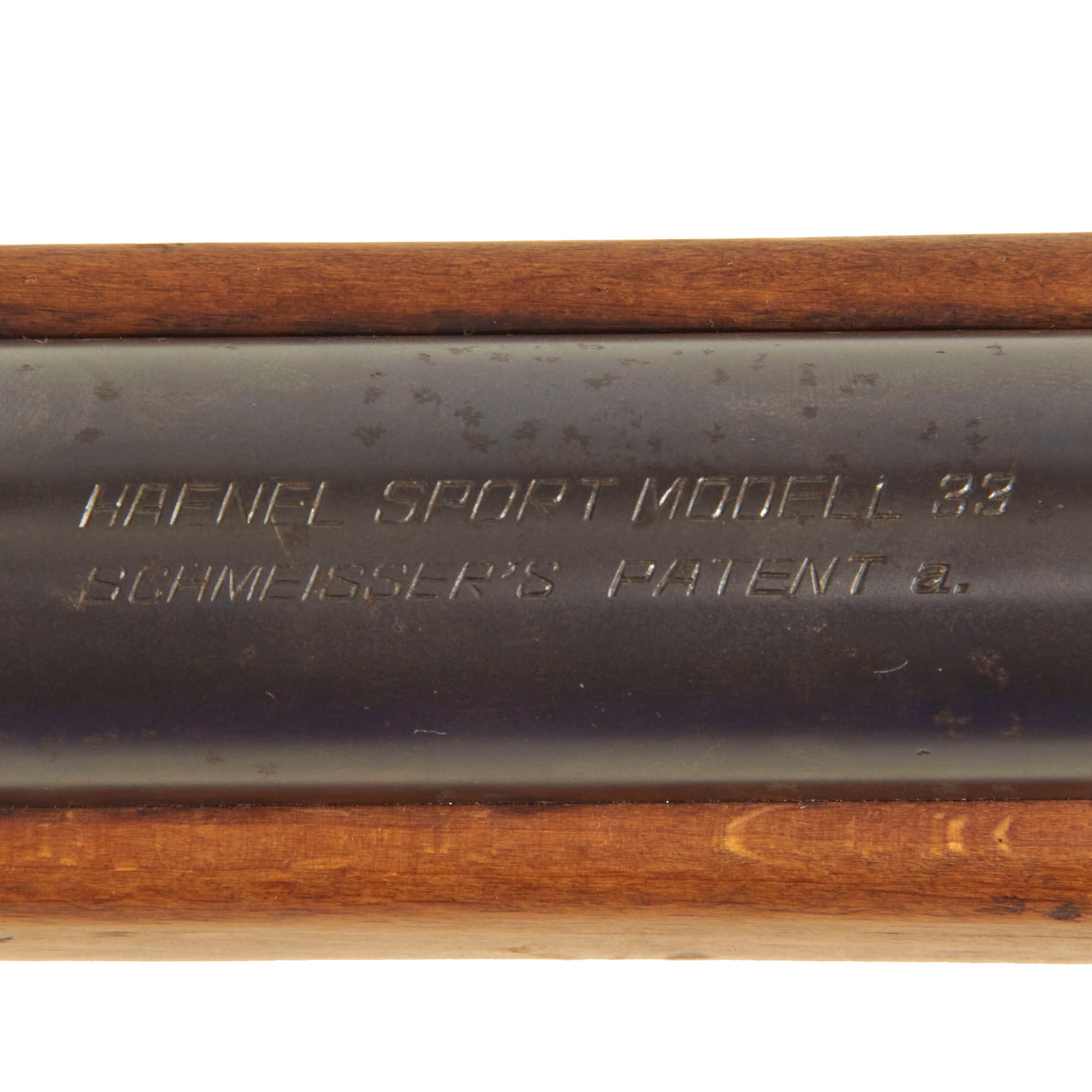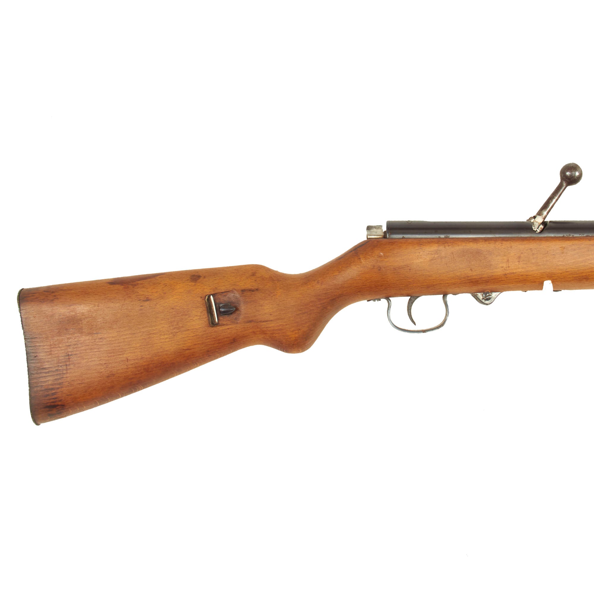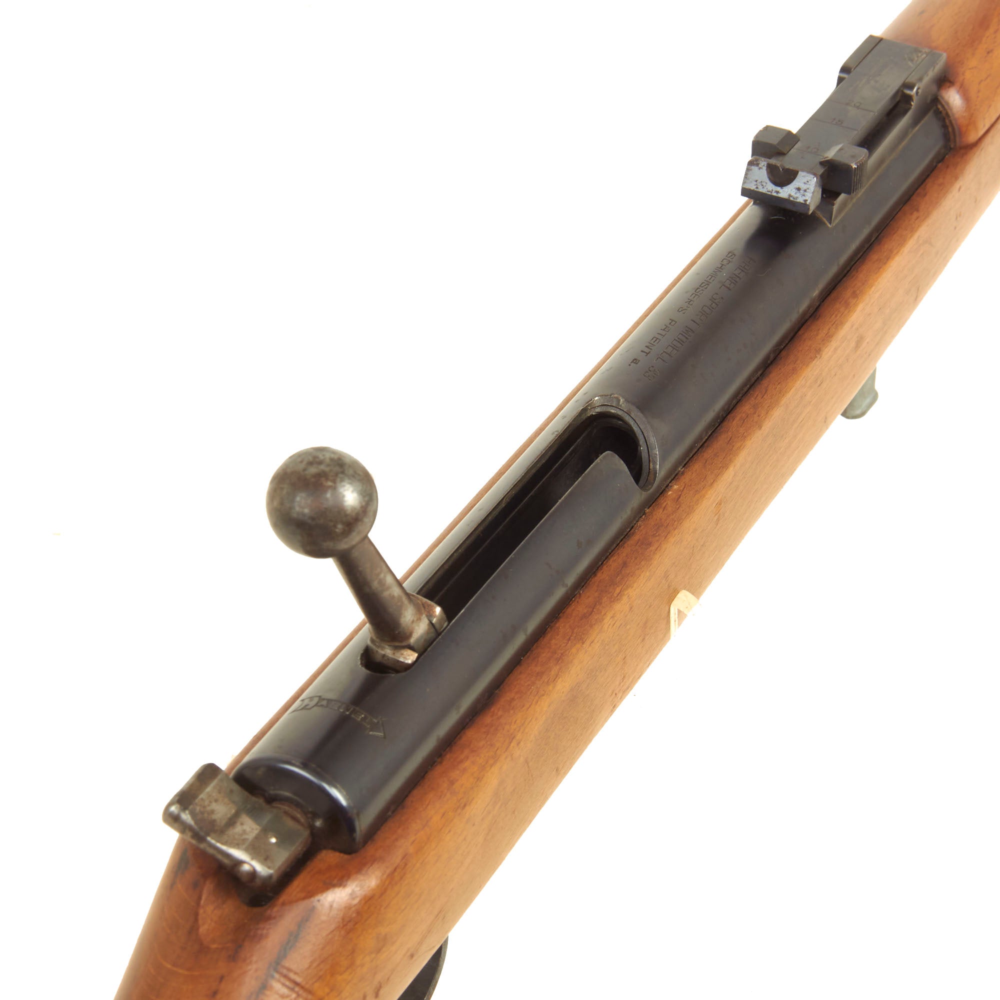 Original Item: Only One Available. Manufactured by the legendary C.G. Haenel of Suhl Germany, this is an extremely well made "Sport Modell 33" Luftgewehr air training rifle, modeled after the Mauser Model 1924 and 1933 Rifles. These were the predecessors of the Karabiner 98 Kurz adopted in 1935, and were quite similar, so these 4.45mm air pellet rifles were very useful as tools to familiarize prospective soldiers with handling a service rifle. It features the same type of safety as the Mauser, and the sling is roughly in the same configuration. They were produced during the 1930s under a number of patents held by Hugo Schmeisser.