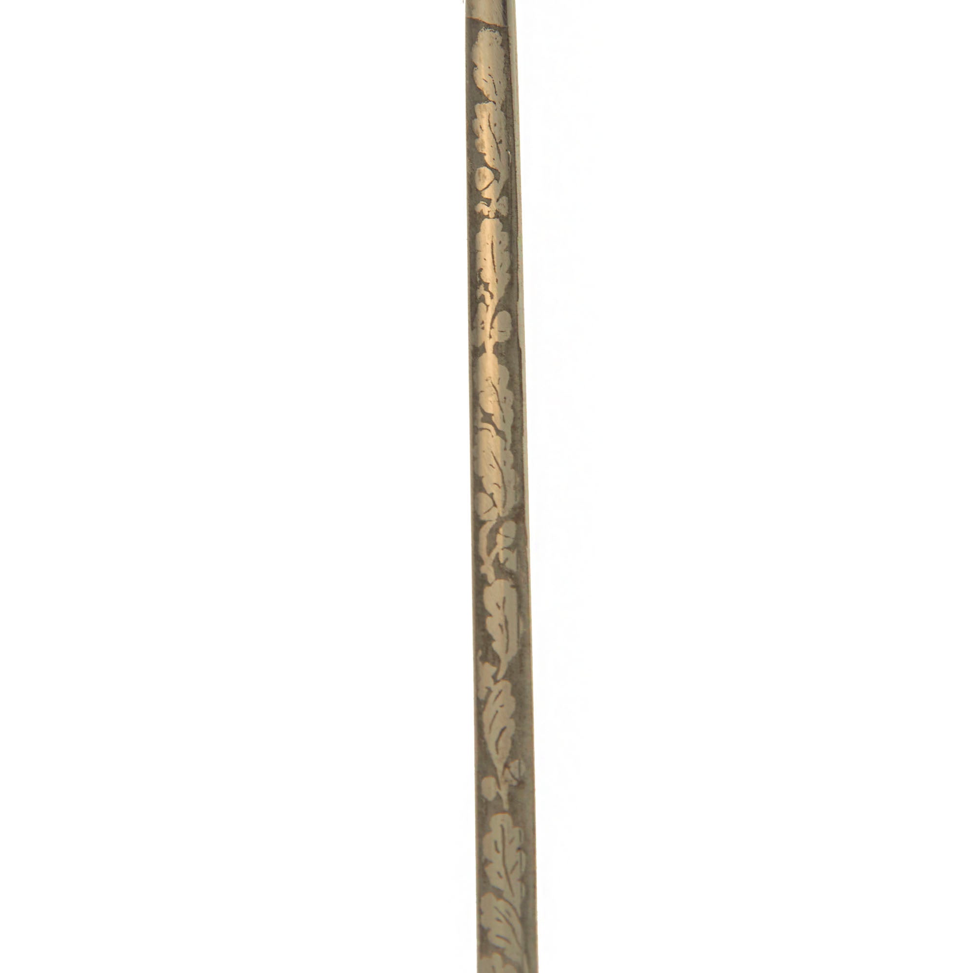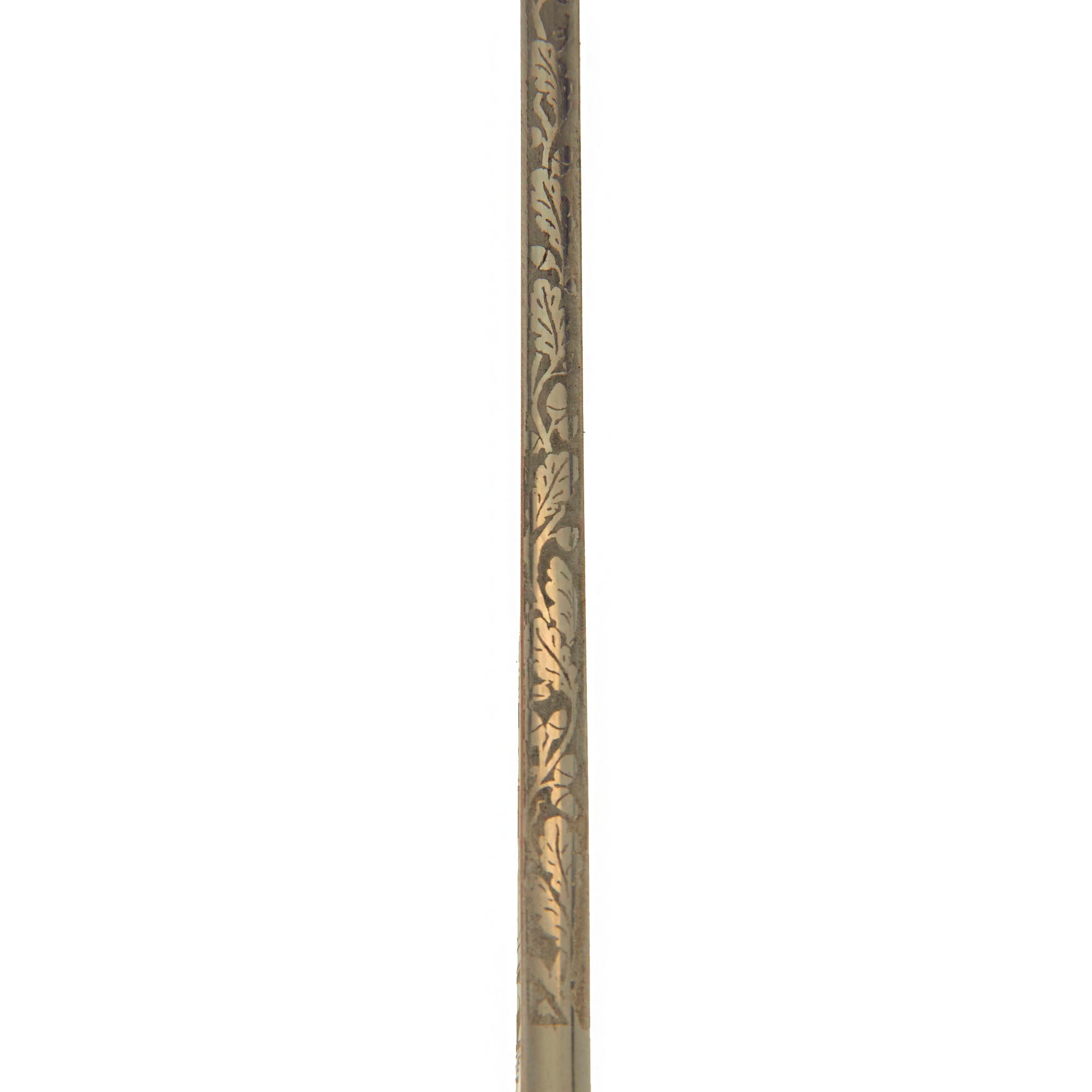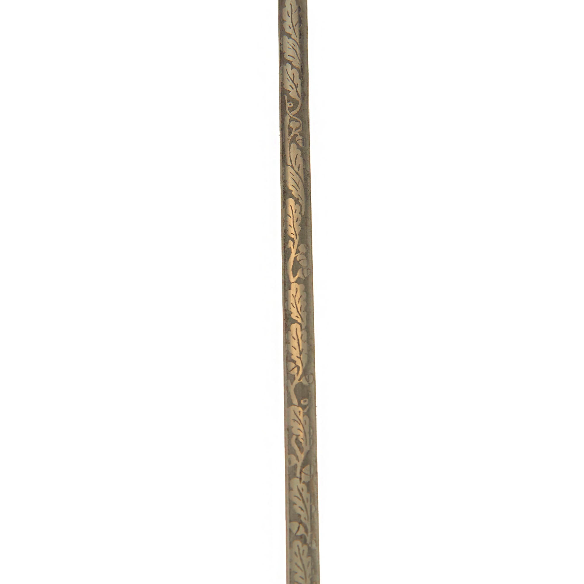 The leather scabbard is fitted with gilt brass, with an acorn frog button, as often seen. The leather is in good shape, though it does show some bending and scrapes in the finish. The gilding is very well retained, and it just looks great!