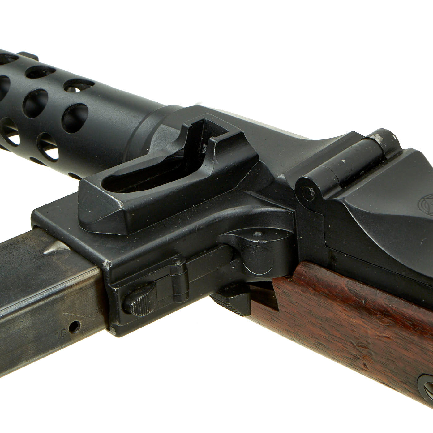 Original Item: Only One available. Just purchased from a private collection, this is a very nice Inert Display Sub Machine Gun, built using original parts on an original BATF approved aluminum dummy receiver. The lower receiver rear of the top cover hinge has been entirely replaced with the non-functional portion, which has a groove on the bottom that a solid aluminum dummy bolt travels along. The trigger still pulls, the selector still works, and the dummy bolt can even be moved. Also, the original barrel is still completely intact, with a really nice bore!
