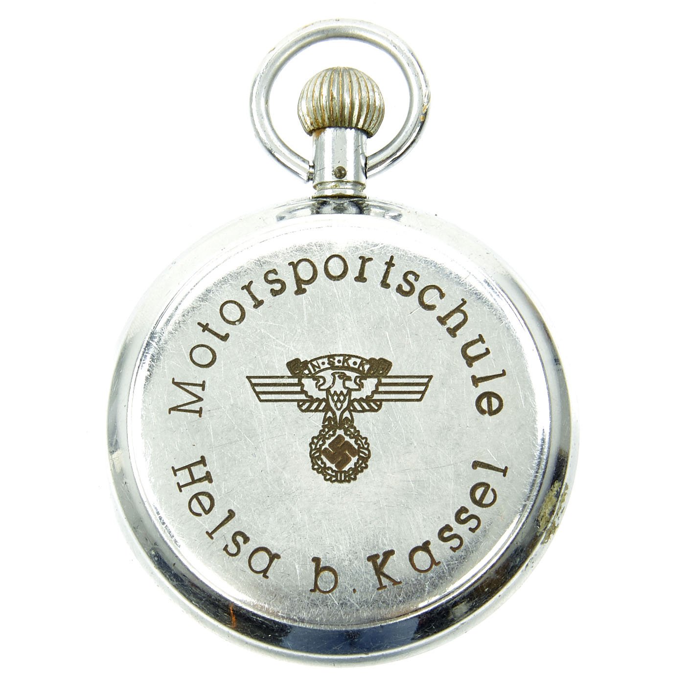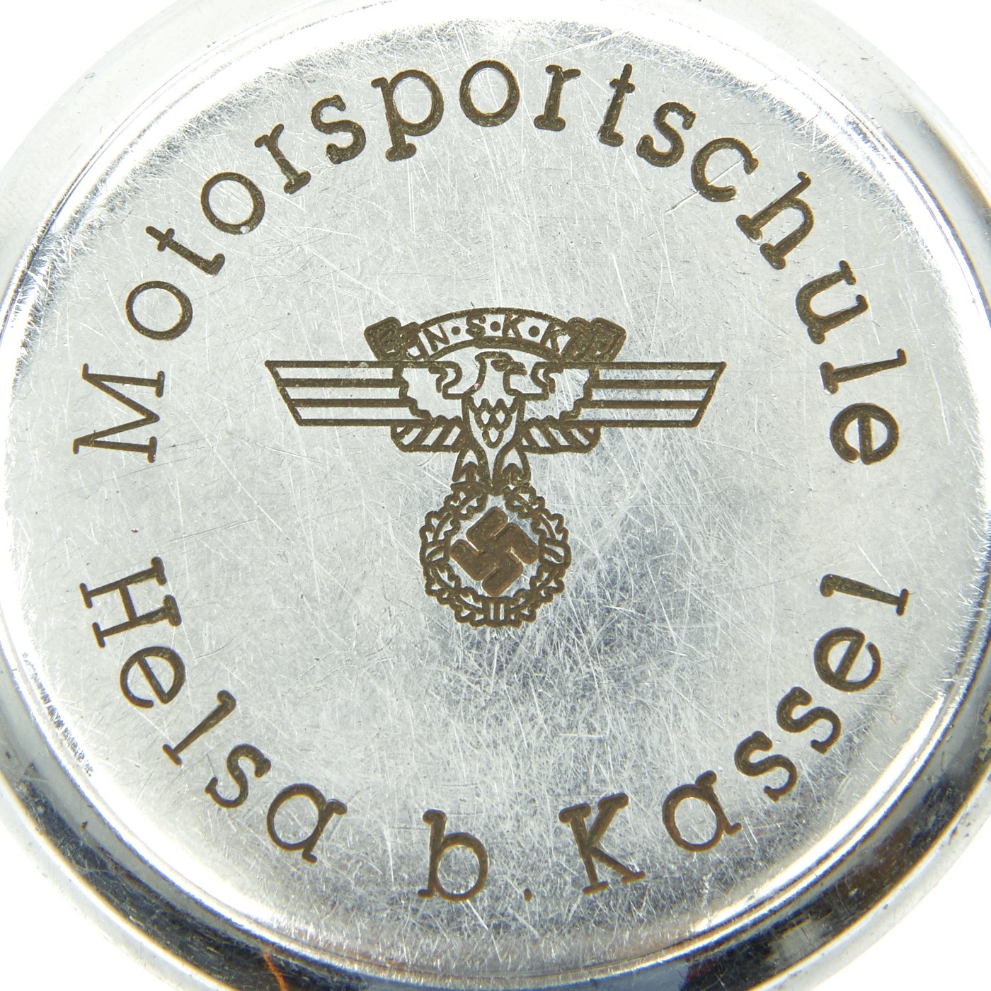 It is in working order and on the rear there is a still very clear stamping of N.S.S.K. over a NSDAP Political Spread eagle (Reichsadler). Surrounding this it is engraved: