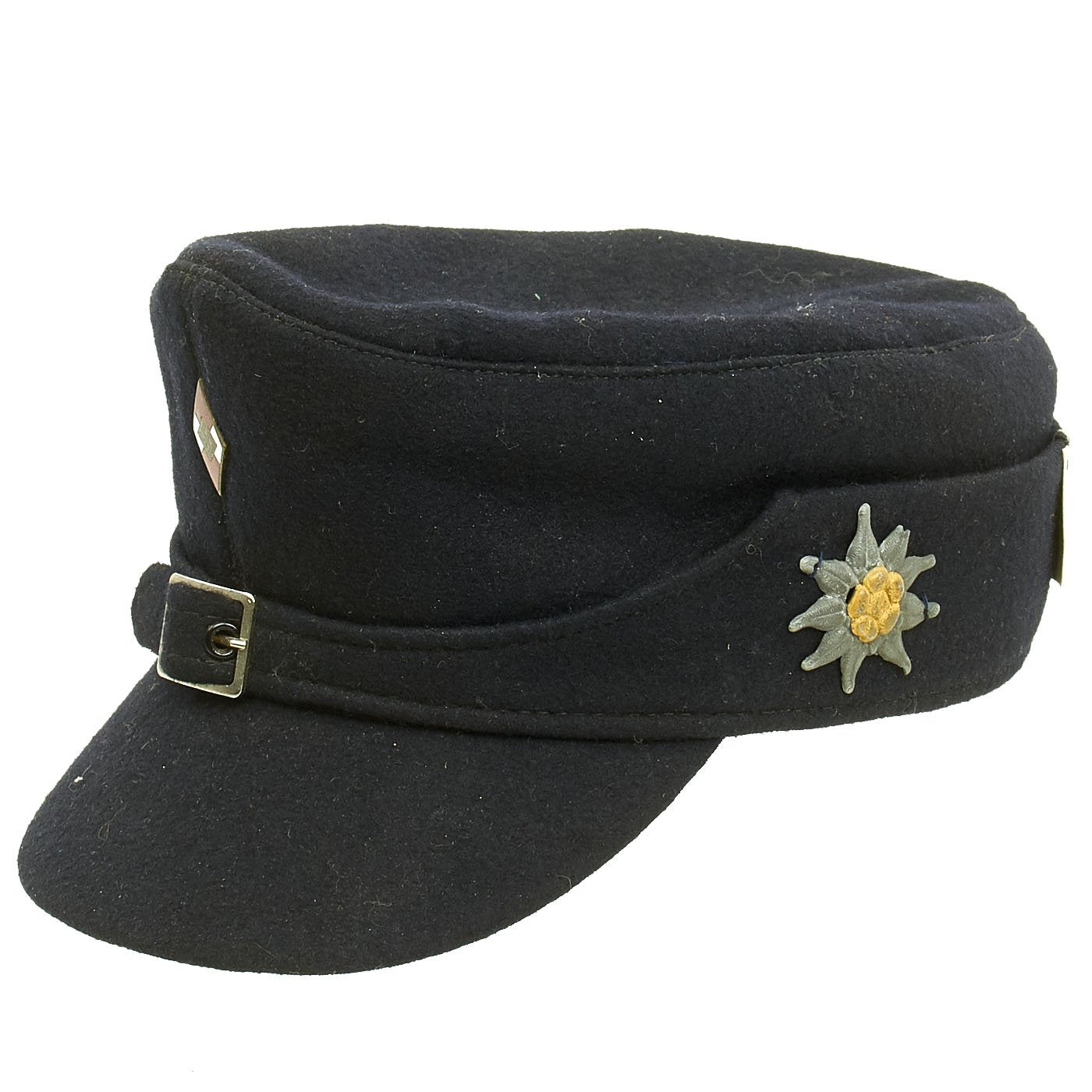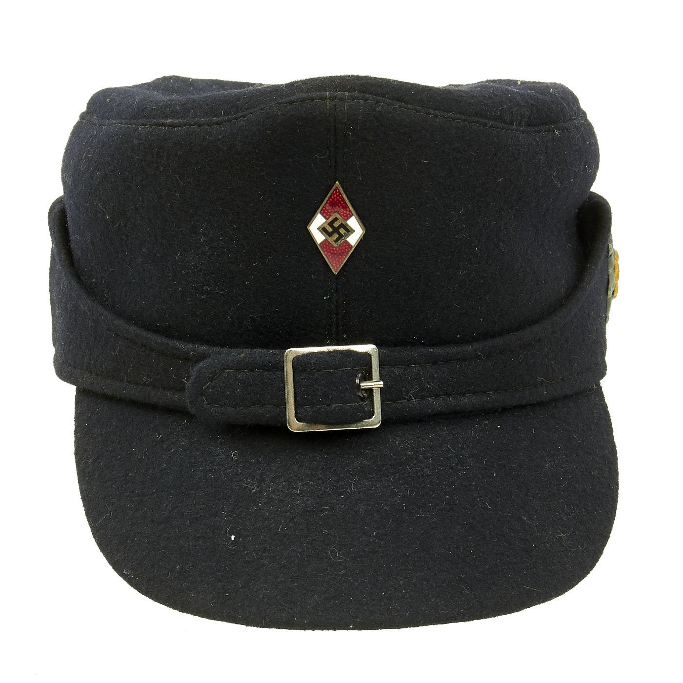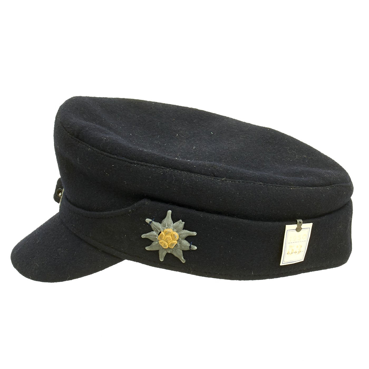 Original Item: Only One Available. This is an excellent unissued German Pre-WWII HJ (jugend) Bergmütze (Field Cap), marked with Size 53 and fitted with a lovely German Gebirgsjäger (Mountain Trooper) Edelweiß badge. It even still has the original card stock inventory label, indicating manufacture in 1930 and the size of 53 cm.