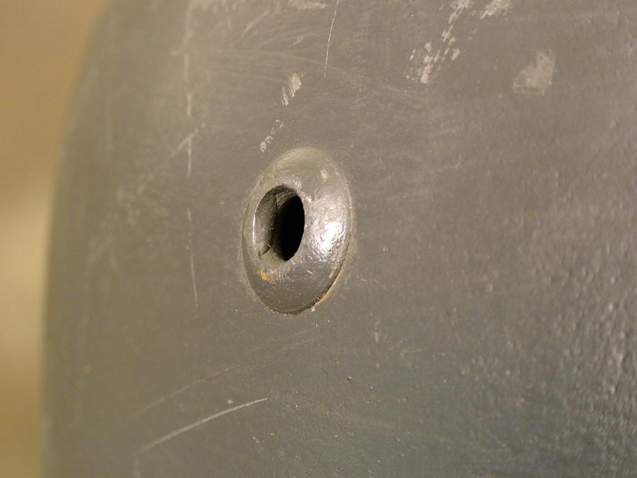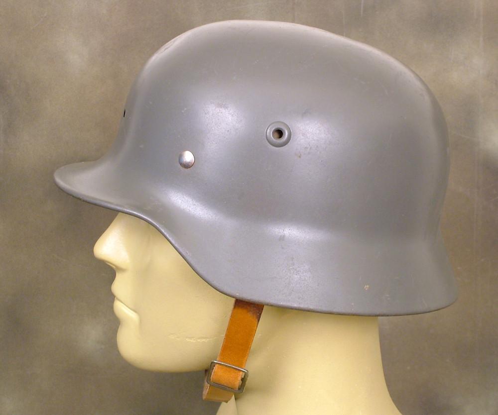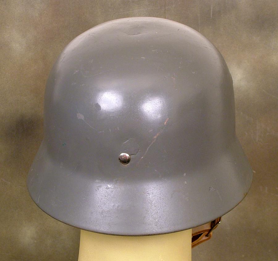 These, released in the early 1990s, are Original helmets that were ?condemned? immediately after the war. The process of demilitarization was to punch a small hole in the crown with a pickaxe. Once the Norwegian government realized that they actually needed the helmets for their own Border Guard, each helmet was carefully repaired and repainted, often right over the original German decals, and put into storage in order to be reissued.