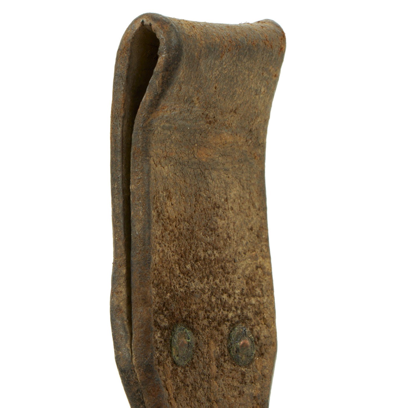 Anthony Carter's Reference EB37 appearing on Page 93-95 is the model we offer here, and it is definitely one of the less common varieties encountered. It features a heavy "parallel side" cast steel hilt with split muzzle ring & small "beak" on the pommel, fitted with a 12" unfullered blade. The crossguard is marked with a proof mark, and overall length is 17 1/4 inches. It comes complete with a very nice steel scabbard, which shows some age and denting, and is fitted in a very nice seitengewehrtragetasche (leather frog).