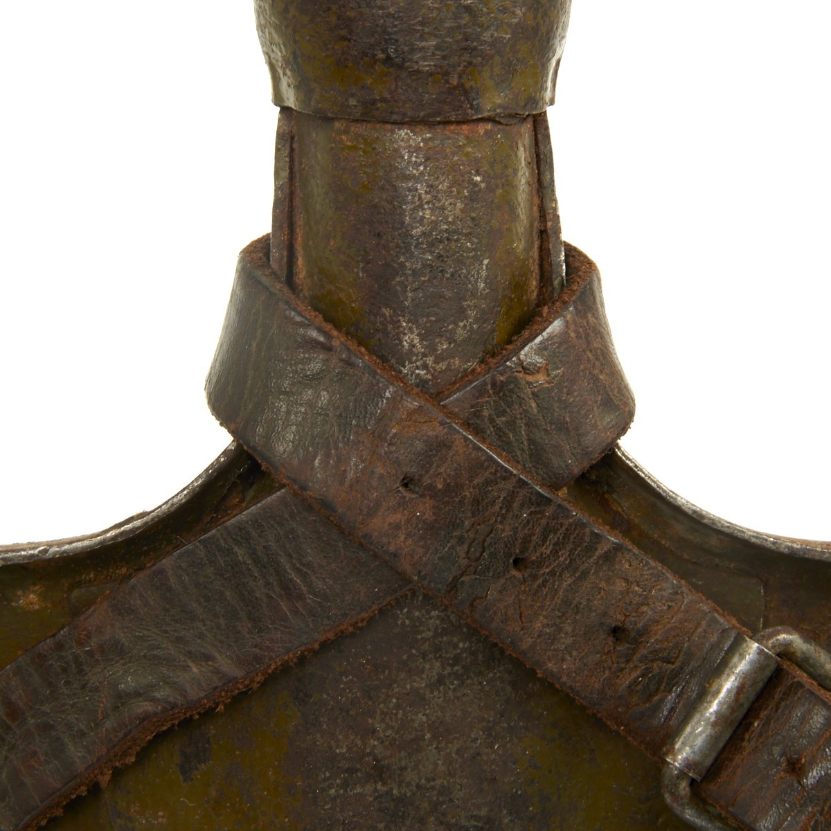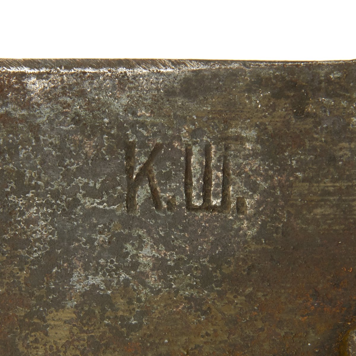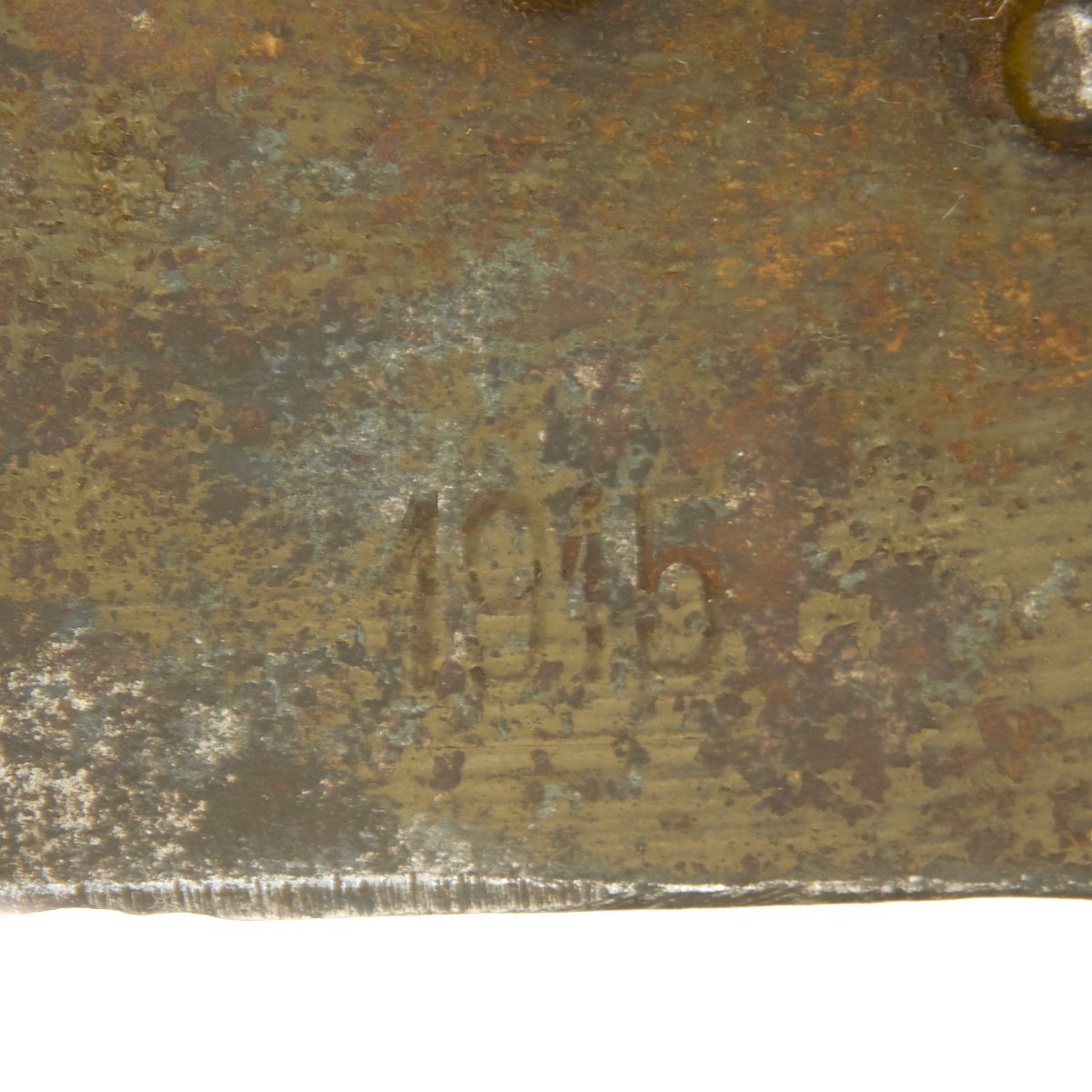 Original Item: Only One Available. This is a very nice 1915 dated World War One trench shovel which is also marked K.W. along with a another circle marking that is too worn to be legible. This shovel was reissued in WWII and painted in Deutsches Afrikakorps, DAK green, traces of which still remain.