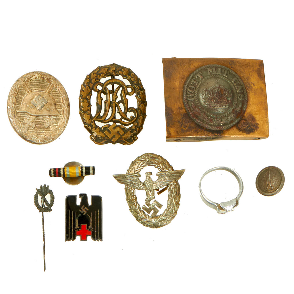 Original Items: Only One Lot of 9 Available. This is a wonderful lot of items which were more than likely brought home by American soldiers at the end WWI and WWII. They are in lovely condition and are perfect for the young collector who is looking to add a variety of medals and insignia to bolster their collections!