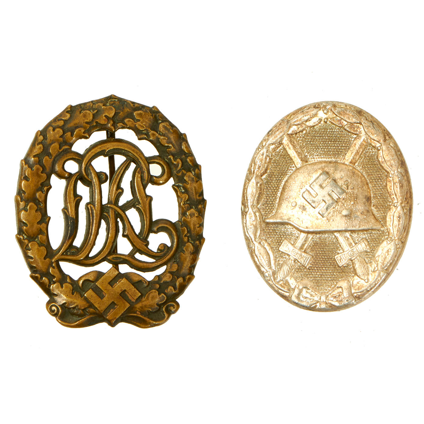 - Bronze DRL Sports Badge: The badge retains almost all original color but unfortunately the pin catch is in rough condition but is complete.
