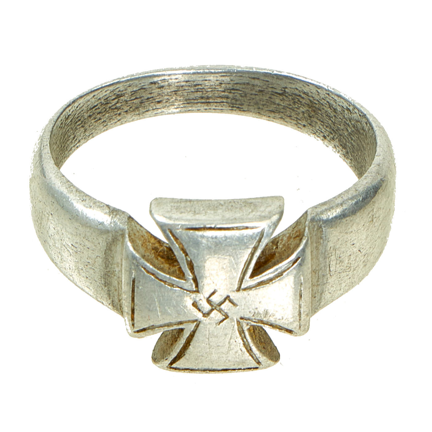 - WW2 Iron Cross Engraved Aluminum Ring: We believe this ring to possibly be a post war made item, but it features the shape of an Iron Cross with a swas in the center.