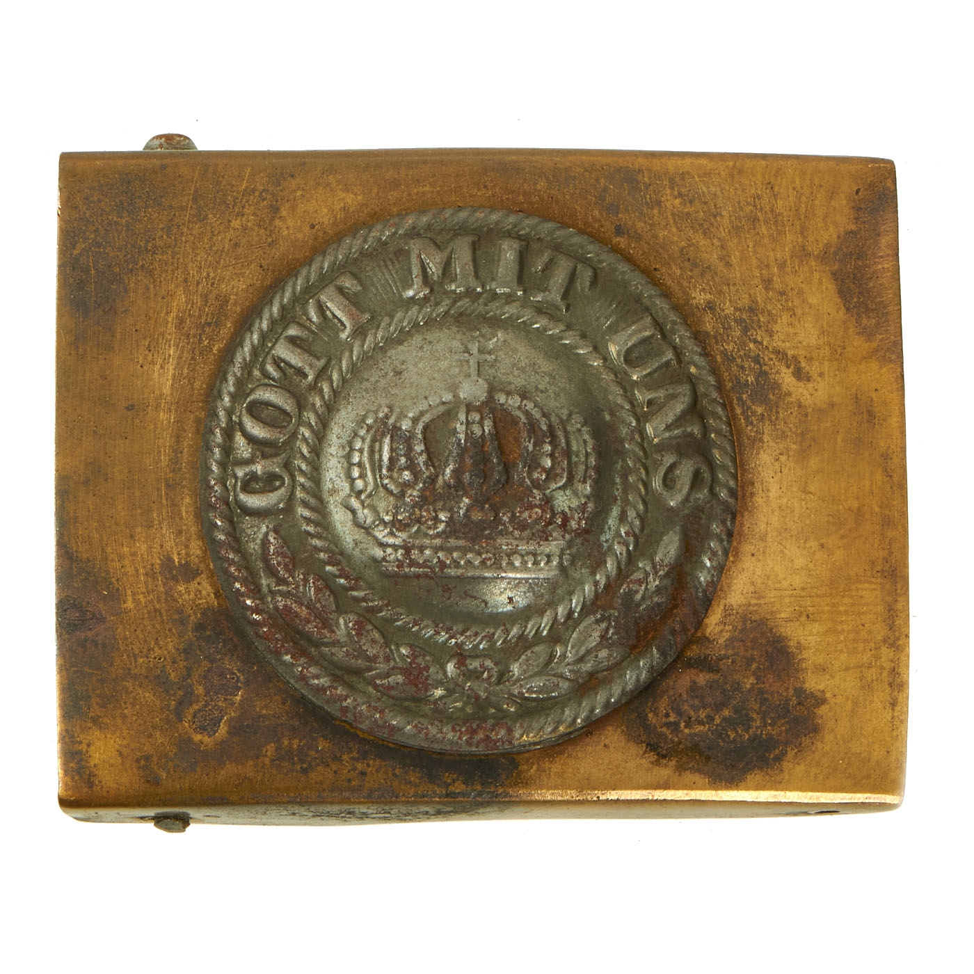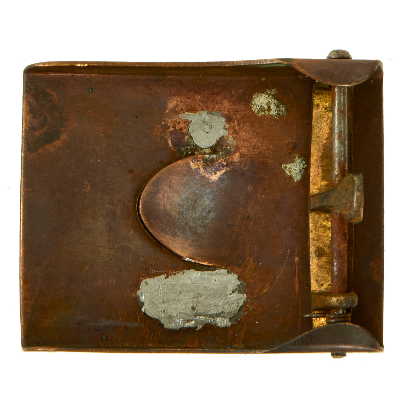 - WWI Prussian Belt Buckle: The buckle is in great condition and is of a strange configuration. Instead of the usually attaching mechanism, this one has a spring hinge type and friction bar.